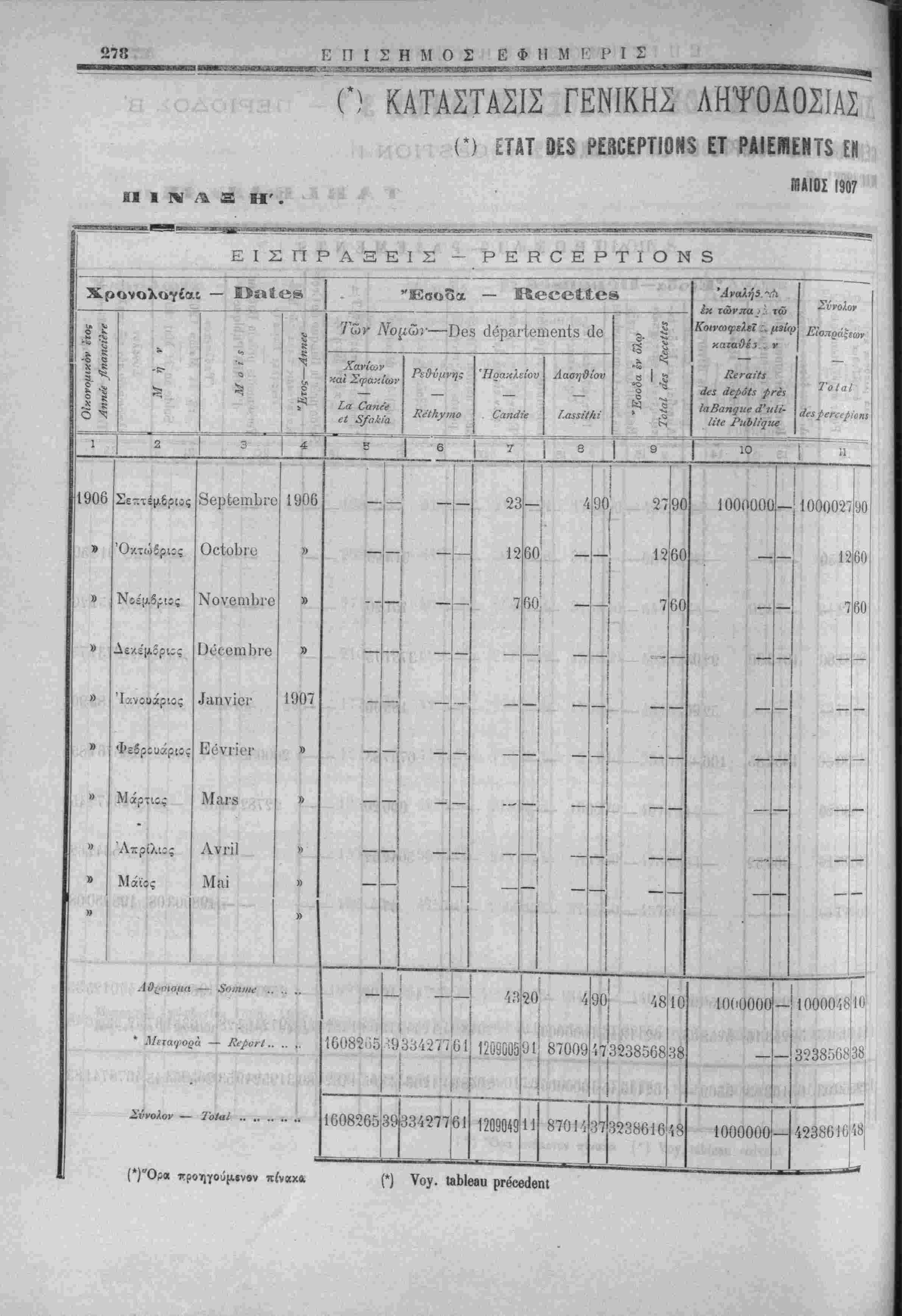 Τού Μηνός ΛΒ <χ ΐ ο Τελωνειακόν Είσπράξεχς {ΚβοβΙΙββ Εϊίαγωγη.α τέλη, φΓοιΐδ ά'ιΐηροιΊβΐίοη^ Είς είδος Εκ ίηαη/ιαη- Δρα/. ΙΗη Δοα/. (1'ΙιηροΓΐηΙιοη; Έτα των οΐίο-ινει αατωι Λ > ίαϊαε)