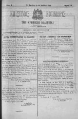 Ρί<:9<ί Γραμματεύς τής Ανωτέρας Διευθύνσεως τής Παιϊείβς Αχιλλευς Ξυλινάκης. ^«' όμοίου Διατάγματος ύπ' αριθ. 362 καί -χρονολογίαν 12 Ι=Αίο; 1907 διωρίσθη χλητήρ π«Ρ« τη Ανωτέρα Διεοθύνσει 'ίς ΙΙαιδείας ό Άδδούλ Άλής Καλημεράκης. Έν Χανίοις τη 13 Ιουλίου 1907. Ό Σύμβουλος Μ. ΧΑΜΗΤΒΕΗΖΑΔΕΣ 1 ΛΜΩΤΕΡΑ ΔΙΕΥΘΥΝΣΙΣ ΕΣΩΤΕΡΙΚΟΝ Διά διαταγής ημών ΰπ* αριθ. 2ϊ46/ΐ187 *· «· εγένετο άποδί- κτή ή άπό τής υπηρεσίας, παραίτησις τού παρά τω Ταχυδρομικω Γραφείψ Πύργου άγροτικοΰ διανομέως Ν. Μ. Τερζάκη. Δι' ομοίας διαταγής ύπ'αριθ. 183*2 έ. Ι. άπβλύθησαν τής υπηρεσίας οί εξής προσχ,εκολημμέν;» βοηθοί των διαφόρων μηχα- νοδηγών των όδοστρωτήρων, ήτοι α'.) ό Μανοΰσος ΙΙατιήλαρης κβί Νι/ηφόροςΚατζουράκης βοηθοί τοΰ μηχβνοδηγού Χανίων 6'.) οί Στυλ. Χατζιδάκης τ) Γαγανάκης βοηθός τοΰ μηχανοδηγοΰ Ρεθύμνης καί γ'.) ό ΙΙαΰλος Λαγουδάκη:, βοηθός τοΰ μηχανο¬ δηγοΰ Ηρακλείου, »».,*»> ·