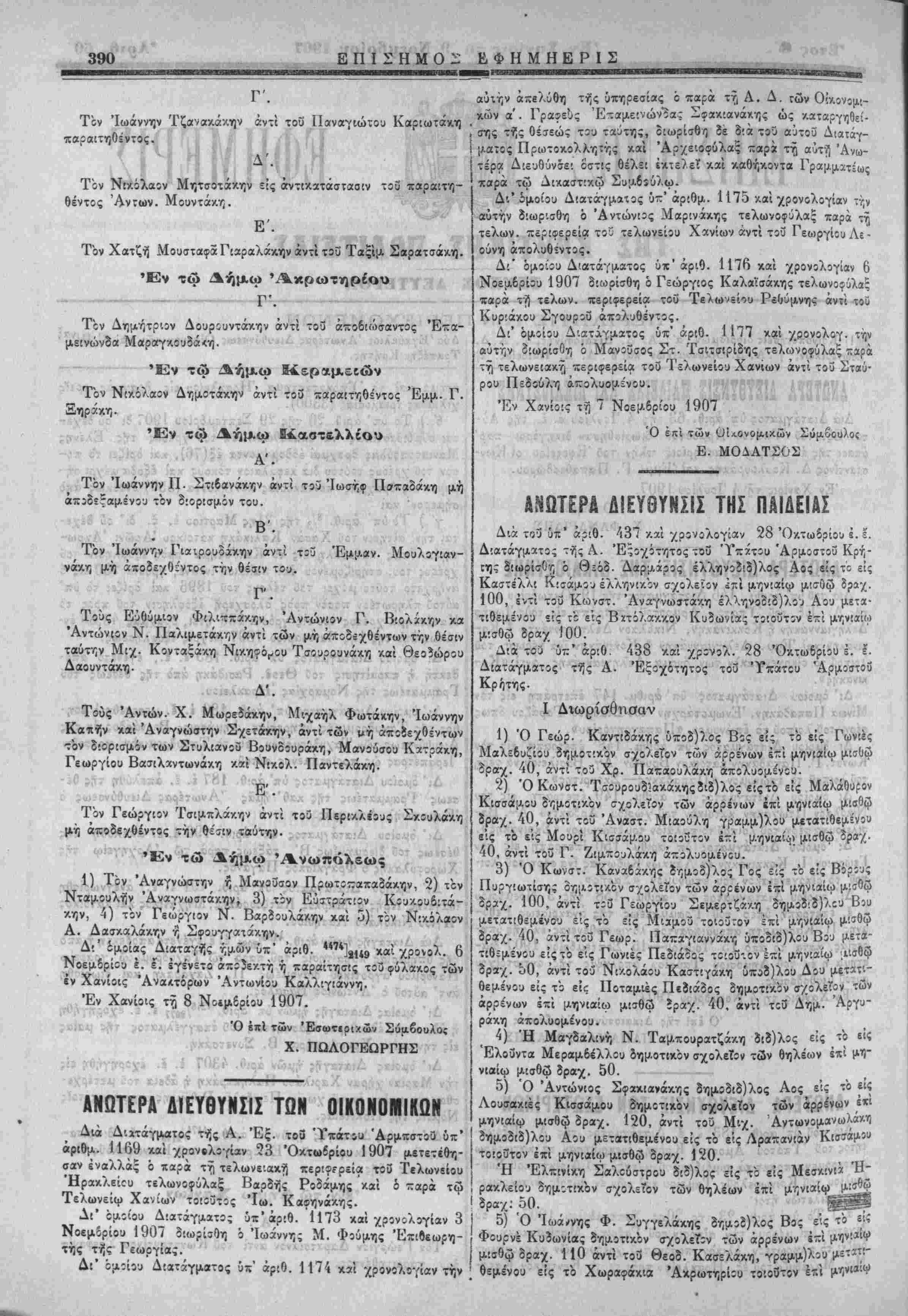 ών, α'. Α. Δ. Διχοιοαύντ,ί, 6*. Α. Δ. ( Δύο'Εγχυχλιοι Ανωτέρας Διευθύνσιως Οί*βν*|*Η*«ν <χαν 3} ΠίνΒ* Κ'όίνο"π*έΐΥ^ίί ίιορισμ, *-----'-- γ'.Α. Δ Οί·χονομ·χών χα>8'.Α. Δ