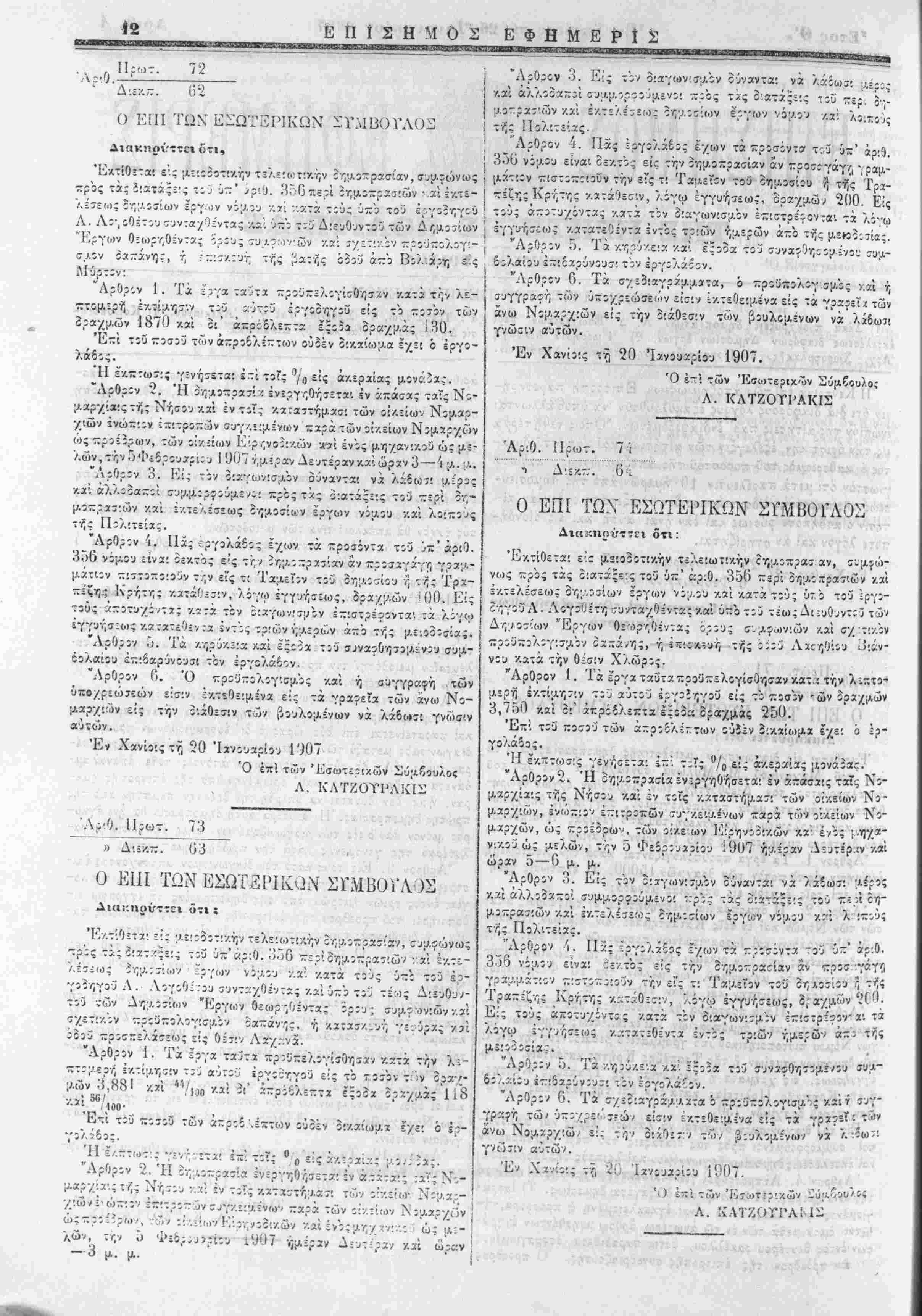 νίοις Ιΐρωτοδιχϊίου την Ιην τοϋ μηνός Ίουνίου τοΰ ϊτου, 1907