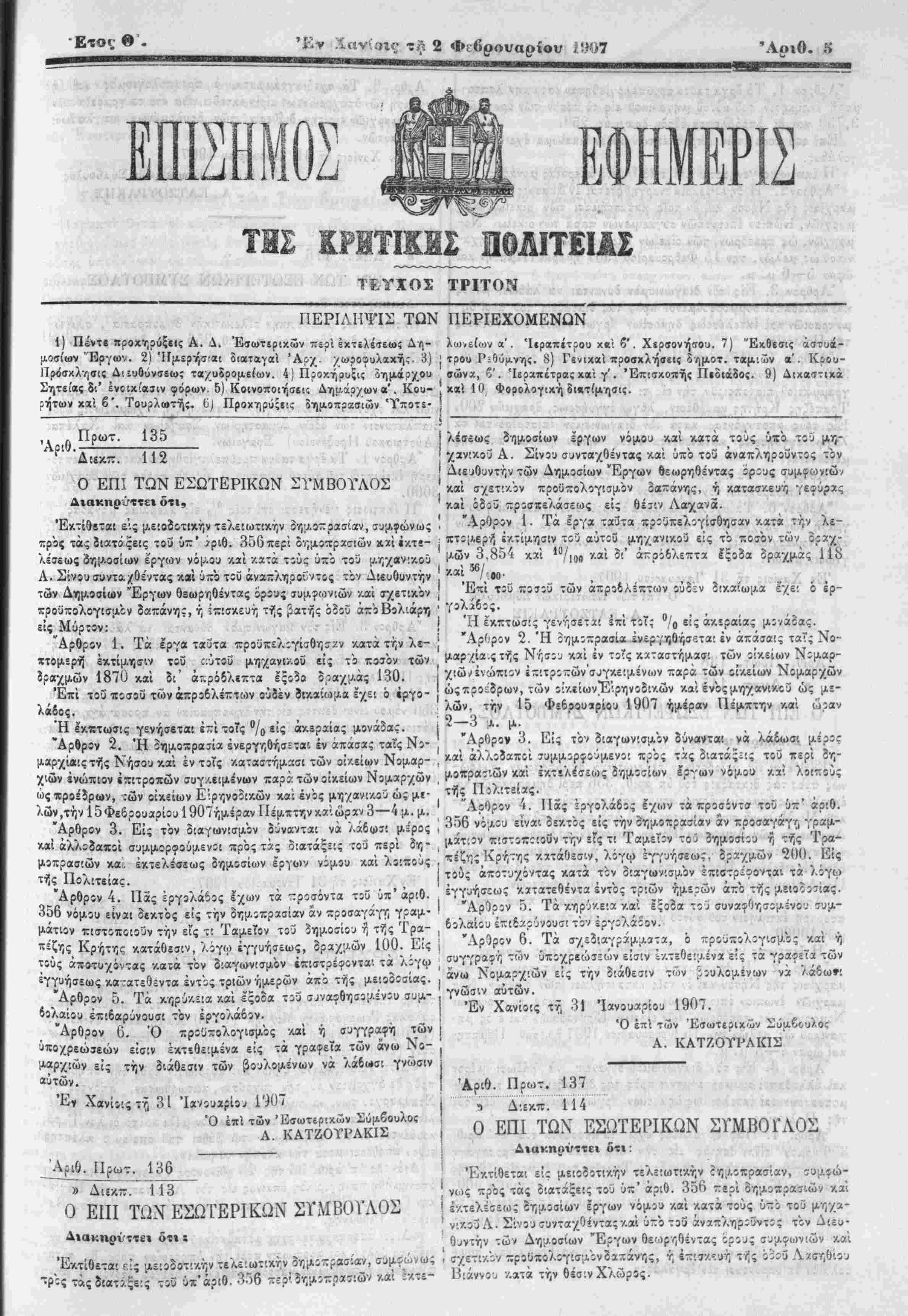 Έν Χανίοις τη 30 Ίανουαρίςυ 1907