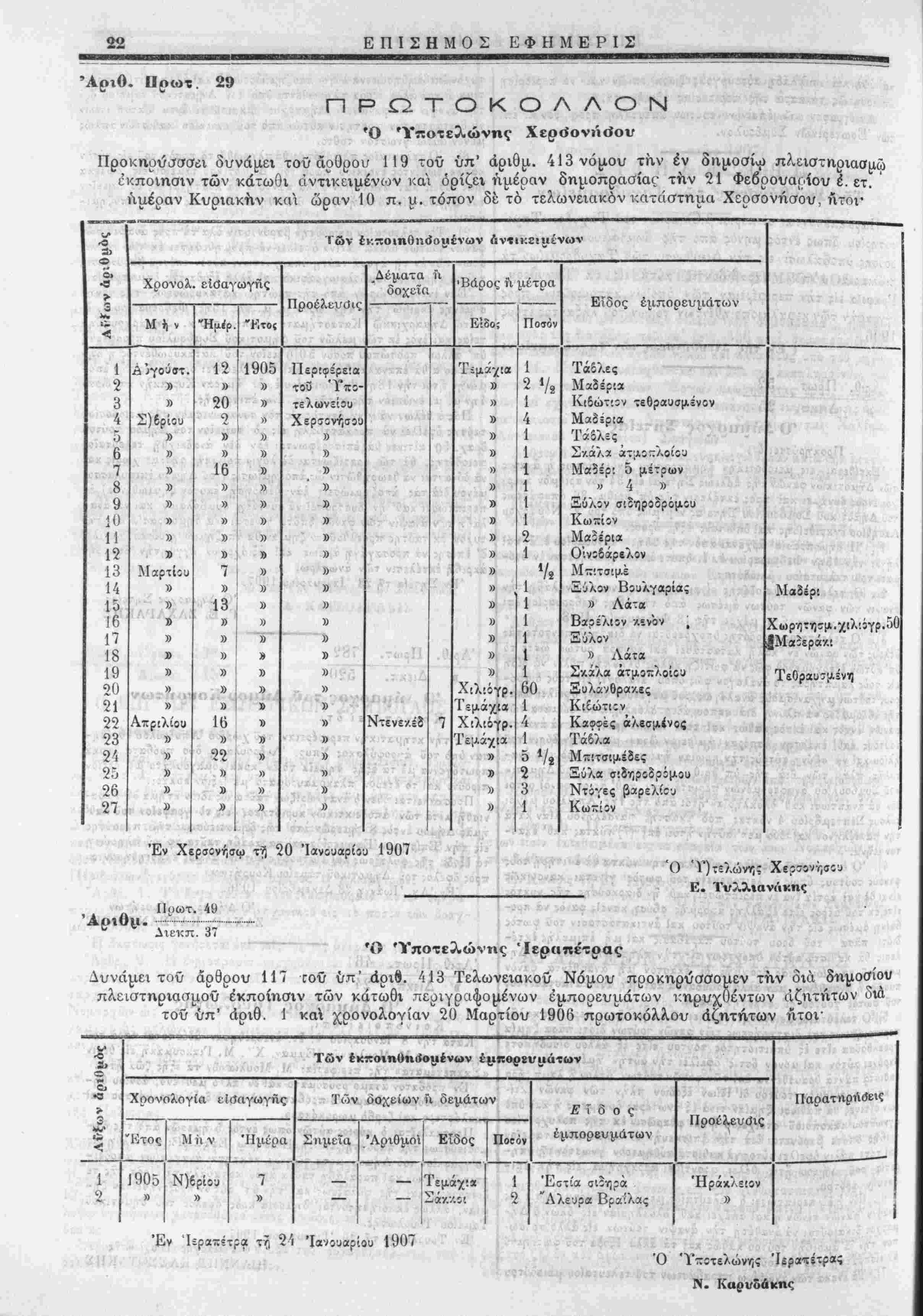 ;ντβ προχηρύξίΐς Α. Λ. Έσωτεριχών πίοί έχτίλέιεως Δή- λωνείωνα'. Ίιραπίτρου χκ; 6'. Χίρσονήσου. 7) Έκθεσις άσ-ίυέ-