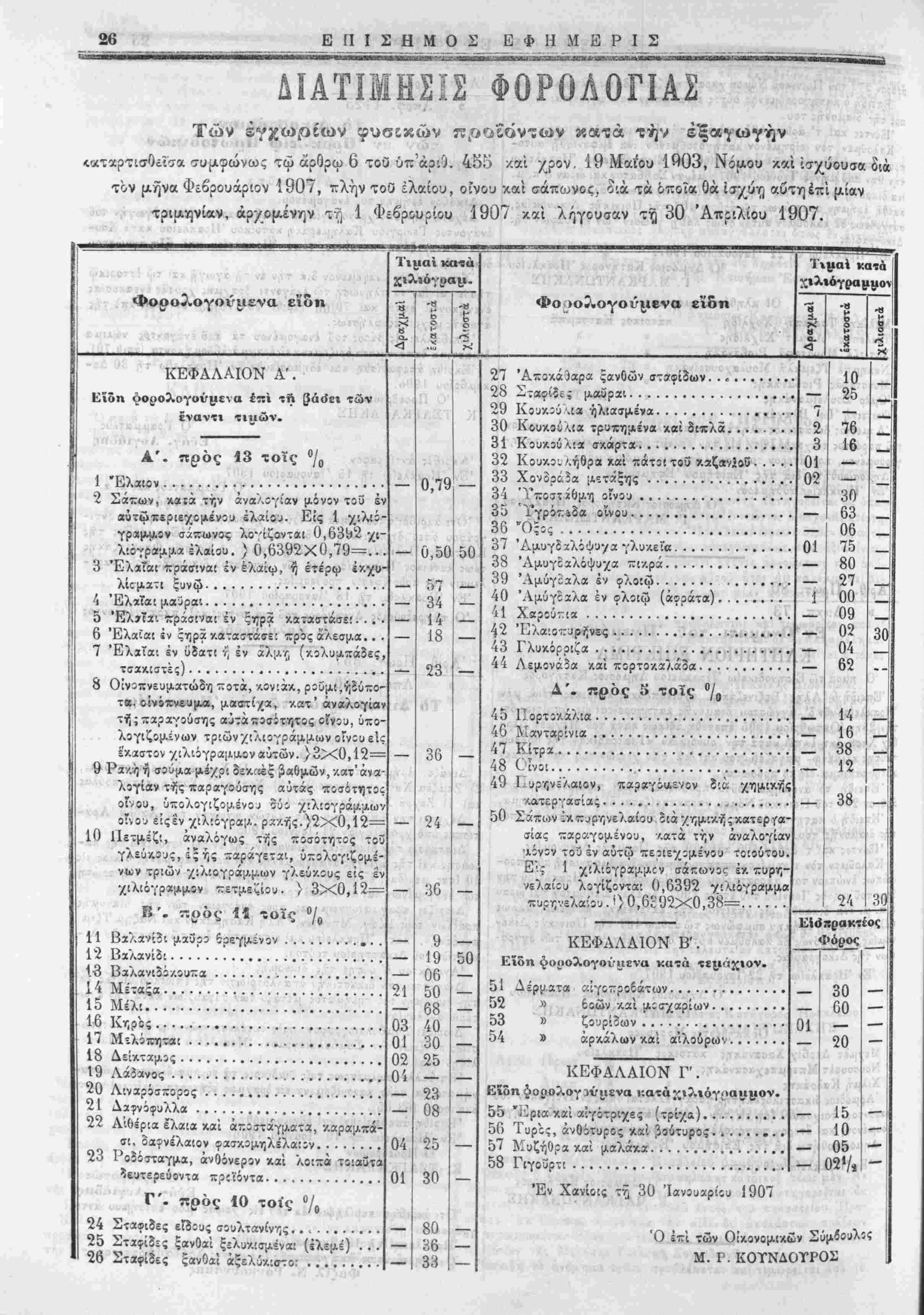 Ειδή φορολογούιιενα κατά τϊΐιάχ»ον·