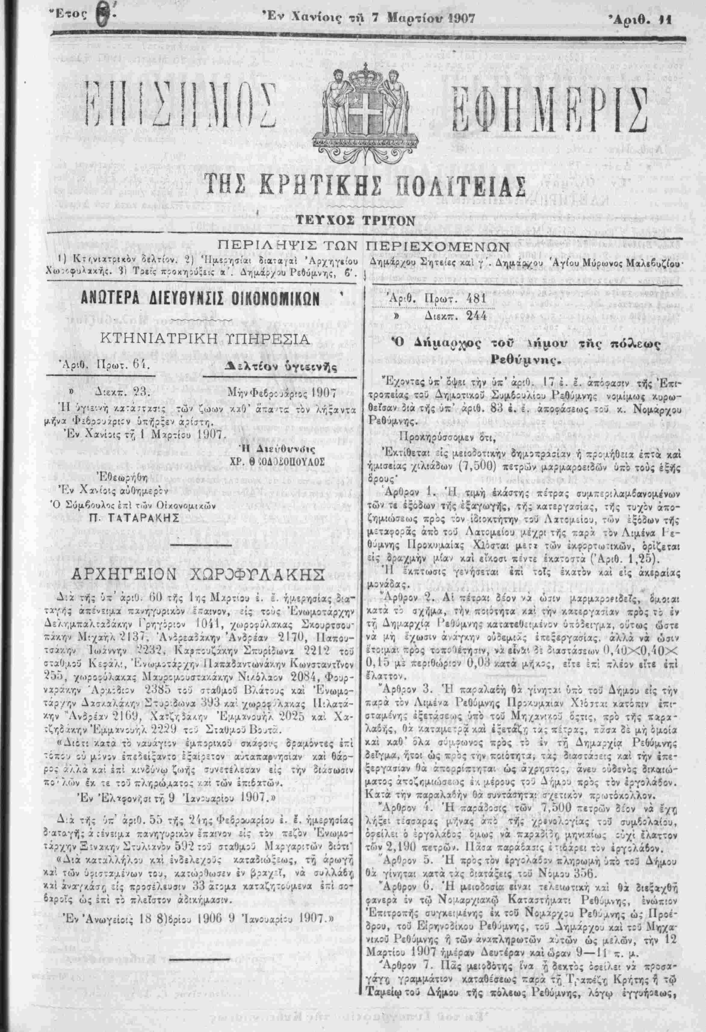 Έν Χανίοις τ7, 1 Μχρτίου 1007.