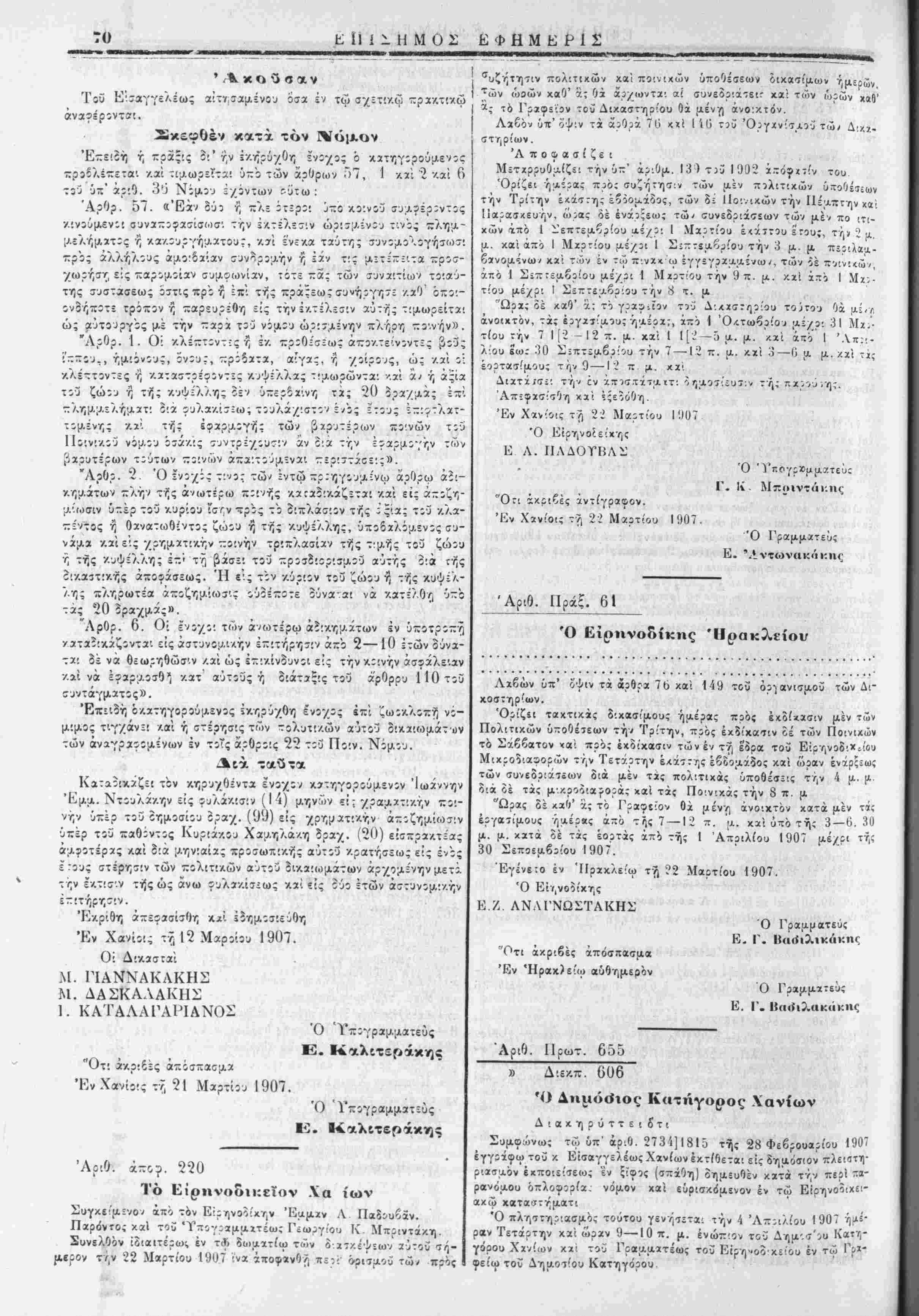 Έν ΊΙραχλείω τή 9 Μαρτίου 1907.