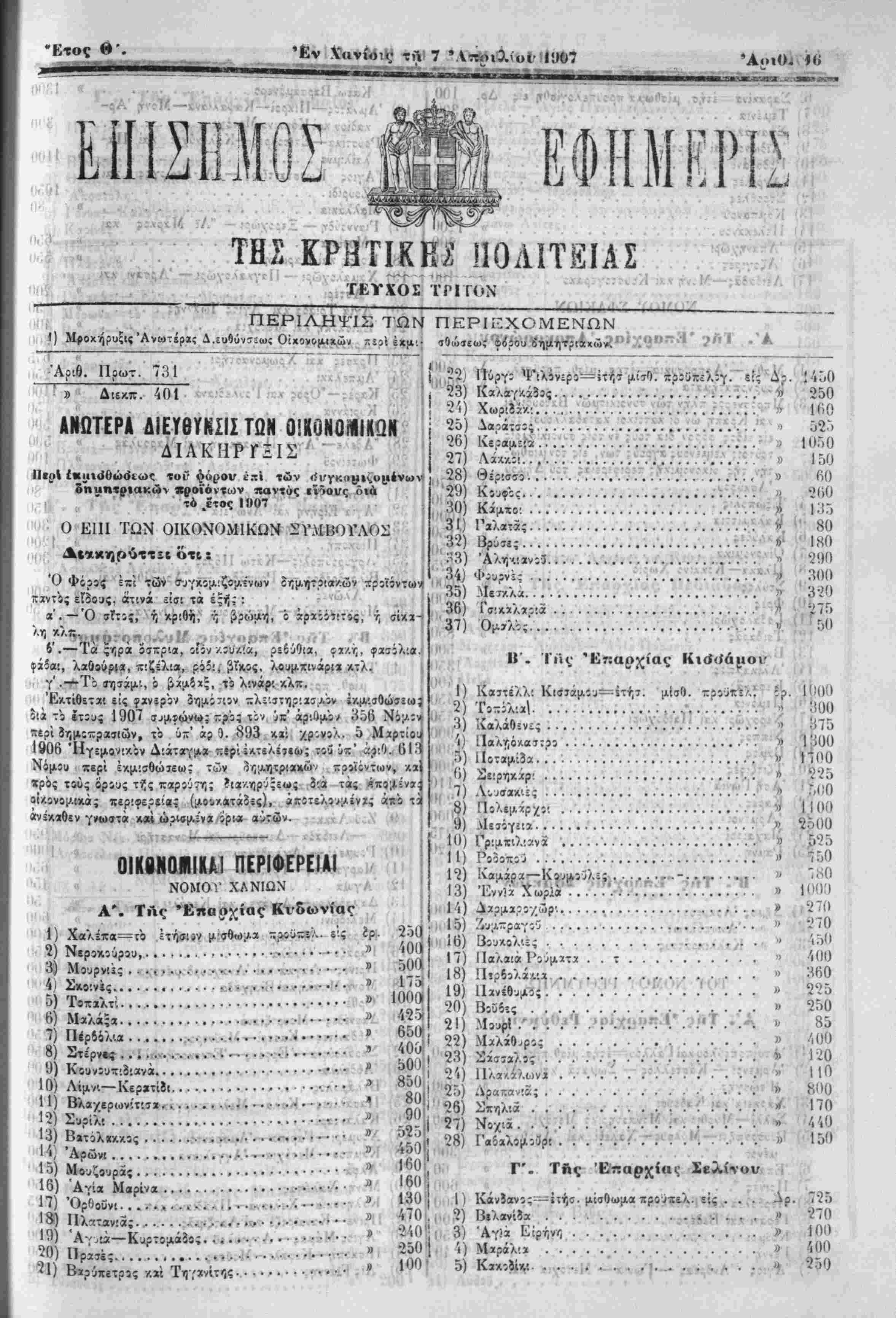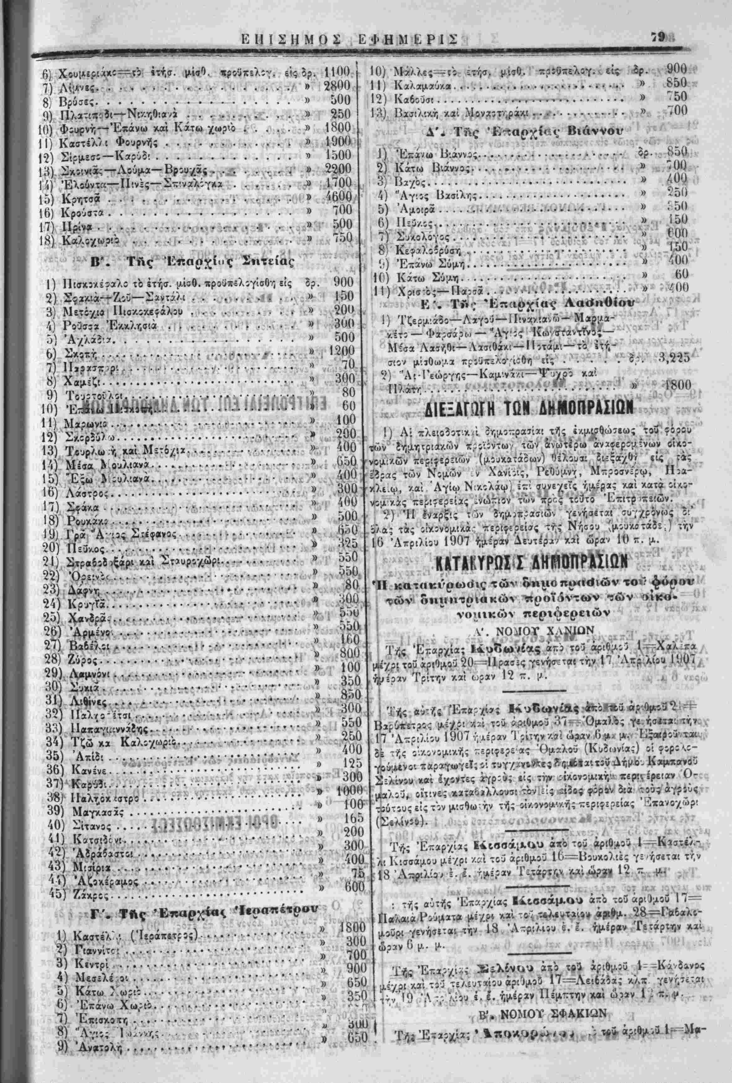 ■κρός τίύς ορους τής ■κ<χ?ύ~τι- ?ια/.ηρύ;ξως 2?ά τάς οικονομικάς περίφε,ίίίβ; (μουκβτ«8«ς), άπίτ^'/μίνϊς όηα τί Λ5κ«0εν γνωστά κ« ώριβ^'να ίρ!« α):ών. αι/ ν.Λ ·,' ϋ1 χ ί ΟΙΚβΝΟΙΙΚλ! «ΕΗΦ^ΜΙ^Μ π! Ι * , ΝΟΜΟι' ΧΑΝΙΩΝ ί·γΑ Λ'Ι ^ Κ ΤΛς 501. 2) Νεροκιύρου,... ,...... 3) Μουρνιϊς . . · ο.·^<·»<.·:^ Ίί 2<Κ0'.νΐς.· ...... »Λ · · » β€»γ,Τ.Τ<1 ίίΤΤ,Τ.Τλ' '" '^ν - ι'· § ", 5) Τοπ*λτί............................0-Λ 100» 6) Μαλάς-α. 7) Πέρδβλι* ο) Στϊ'ρνίς- , 10) Λιμ·/·.— Κ 11) Βλαχε •2) Συρίλι 13). - '', Άρώνι........ι»»·**·*^·//·1—·»·«* Ί'··*εί.-ί Λ! 15) Μουζουράς...................«.....τΐ? Λ 16) Αγία Μαρίνα...............·α·τ*ί'κ.·Α ·ν $' Π)Ί· Ι») 36) Γσ·«λ««3 .;....·..·..·....;.·..·.:...-..ϊ-^; ί','475 «τ^ π,,,ιν-' ■ ..... 'ίί.χί *.ία ίϊΐΓ,η >«.:
