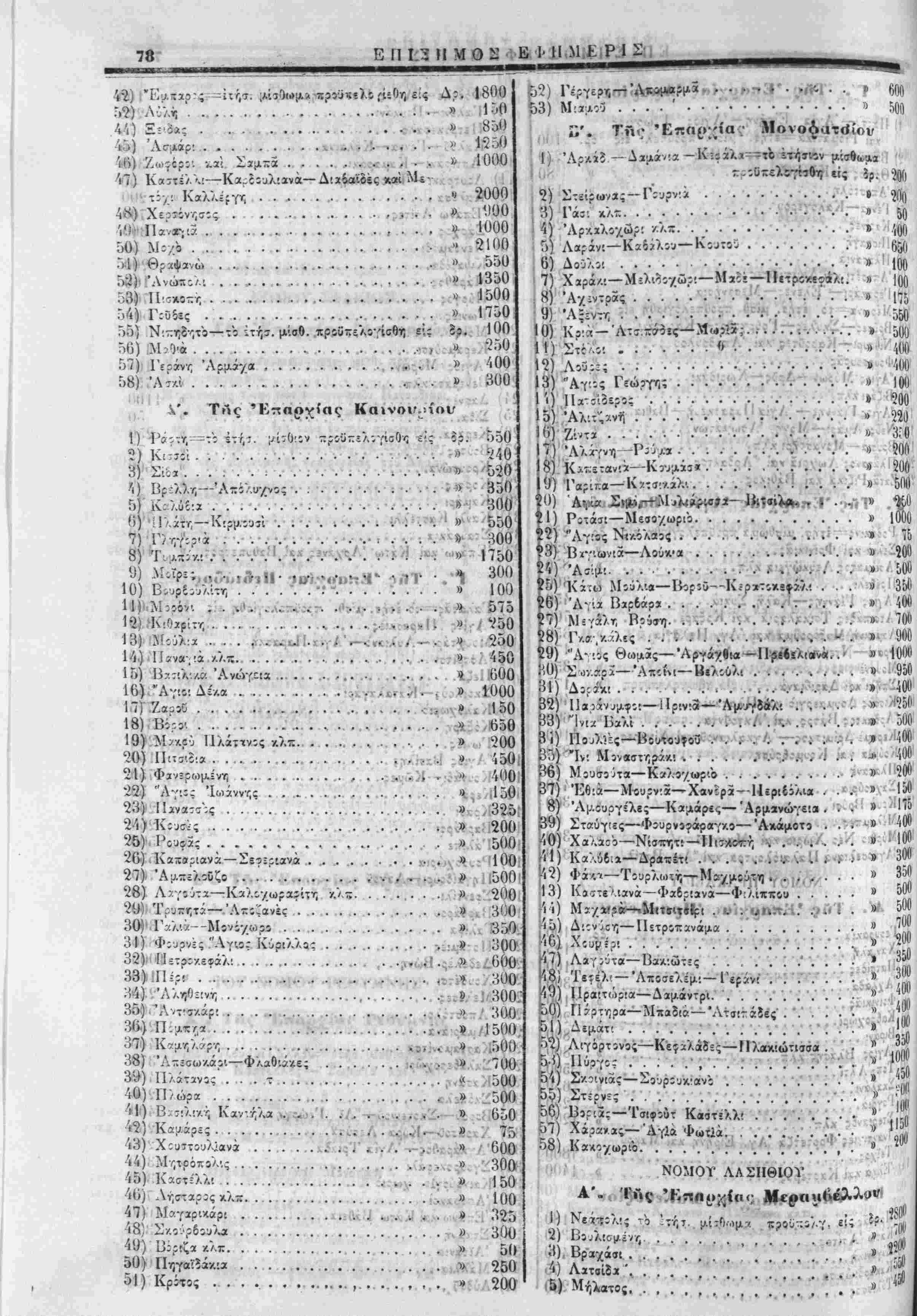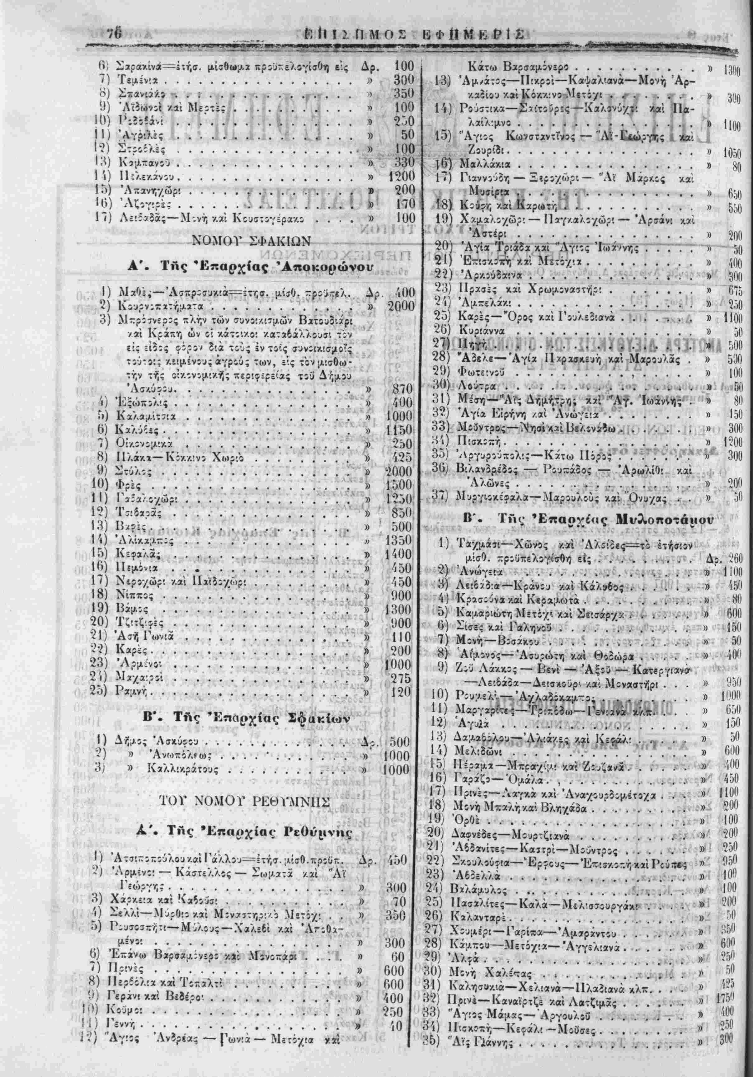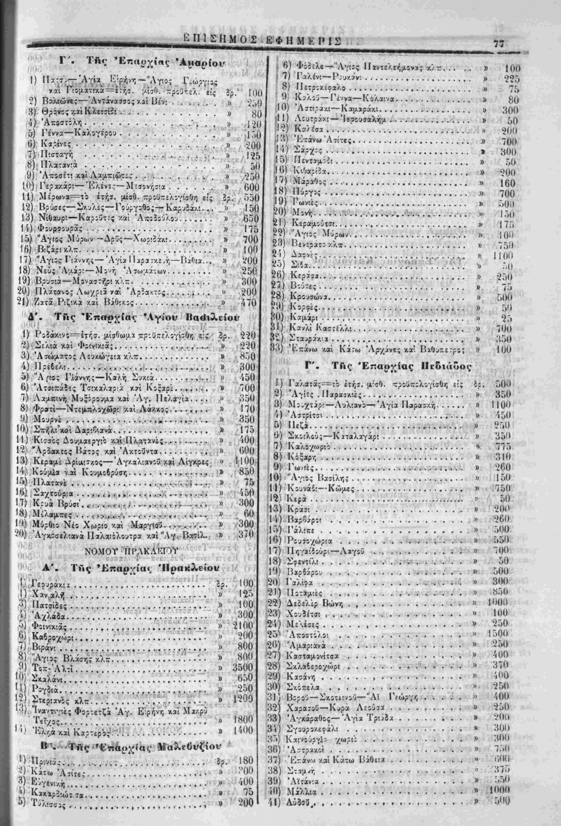 <» 81 Π) '«/. 170 ■^ ·44Ο -ί.ί ί* 150 ;ν»Λ} (Κ' Γ'. ΤΑς 'Κπαρχίας ϊ*λίίν<ΜΛίΓ·{' 'ί' (ι, ι · ';··:! Τ Τ (,,ιΐ) Κάνίανο;-— ΐτήσ. μίσθωμα;κρο^(λ·|<|$χ. ;. ,·. Δρ. 725 |ιι.3) Βελανίδα......·.··· ·ί-ί63Ηη<ι· " ν'70 (ι, 3) Άγ!ά Είρήνο................*.( 100 ,.,·4) Μ 5) Κ