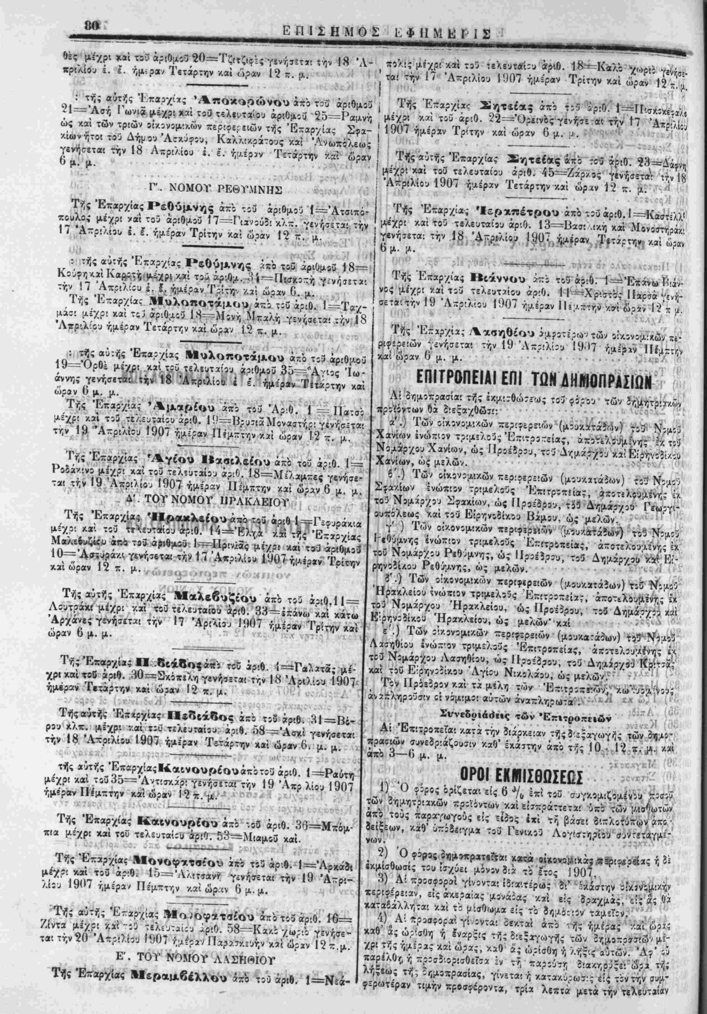 ο:λ 75 ϊτ:υί 1907 σ^μϊών<*; ~ρός τ';ν '^-κ' άριθμό/ 856 Ν ά 83 5 ο:λ 75 ϊτ:υί 1907 σ^μϊών<*; ~ρός τ';ν '^-κ' άριθμό/ 856 Νίμ:ν) ~ερί δημ:πρασιών, τό ύ-' ά? 3. 893 κιί χρονίλ. 5 Μαρ-ίοιέ 1906 Ήγΐμον.κόν Διάταγμζ πίρίίλτελί?«(ι); τοΰ ύπ' αγ.'). 6Ι·1 Νόμου περί έκμισθώΐεως τ<Γ>ν ίΛ,μ.ητ{«ακών πρ^ςντων, *ϊ|