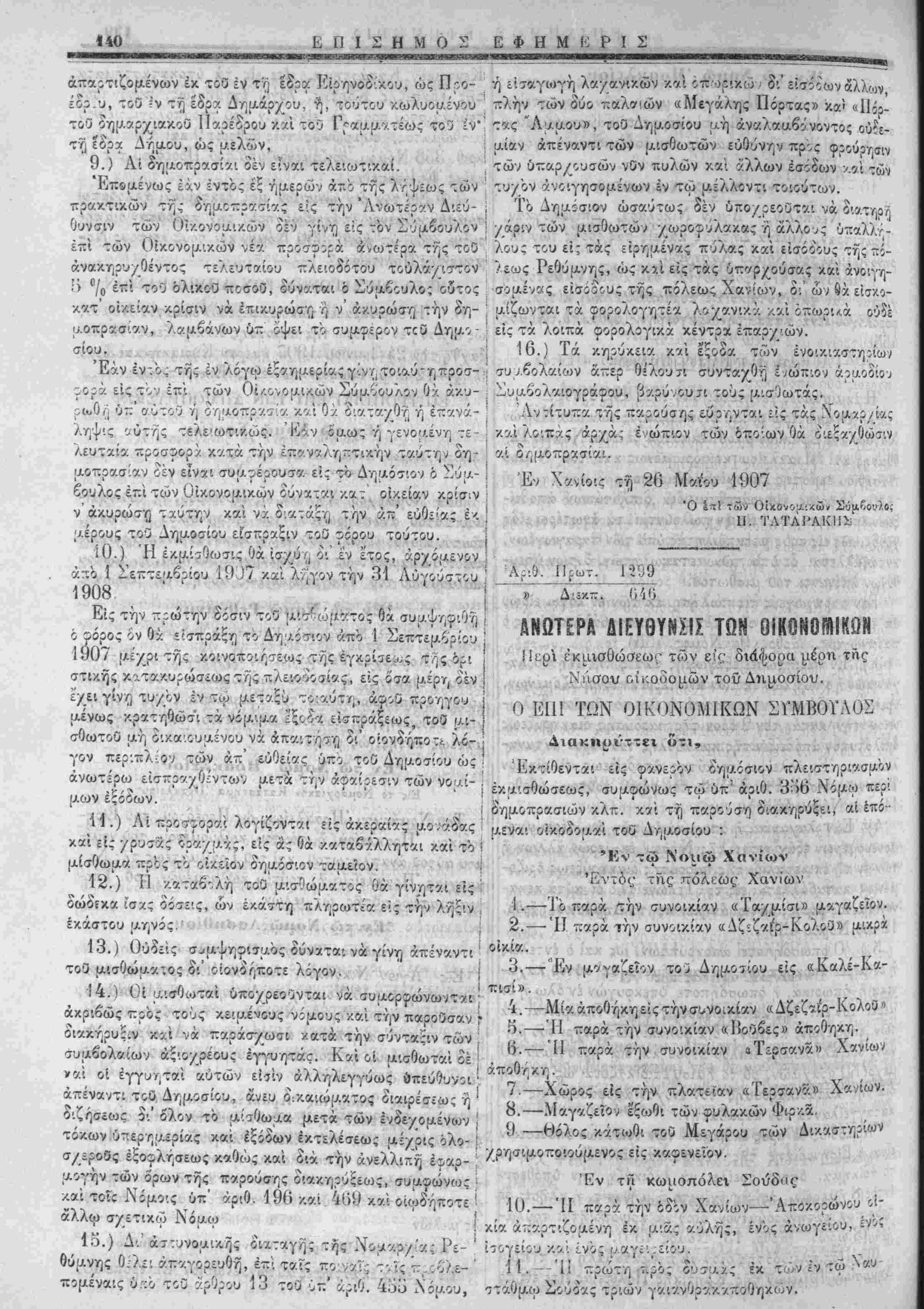 άπΌ πρώτης Σεπτεμβρίου 1907 καί λήγοντα την 31