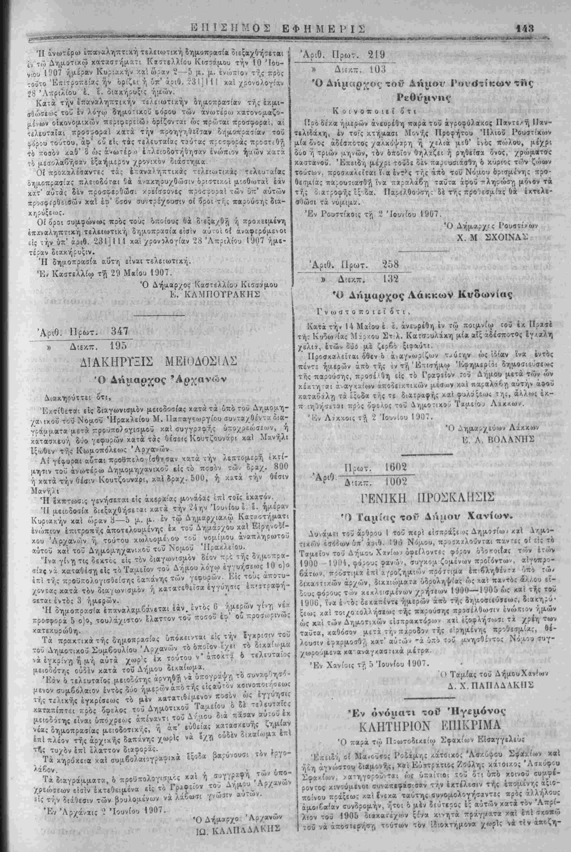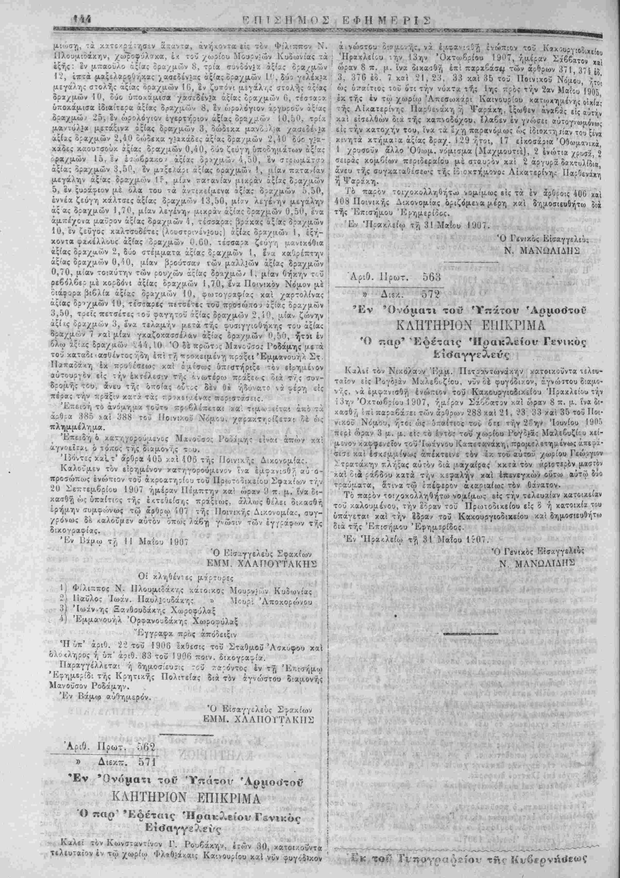 Έν Ηρακλείω τή 31 Μαΐου 1907.