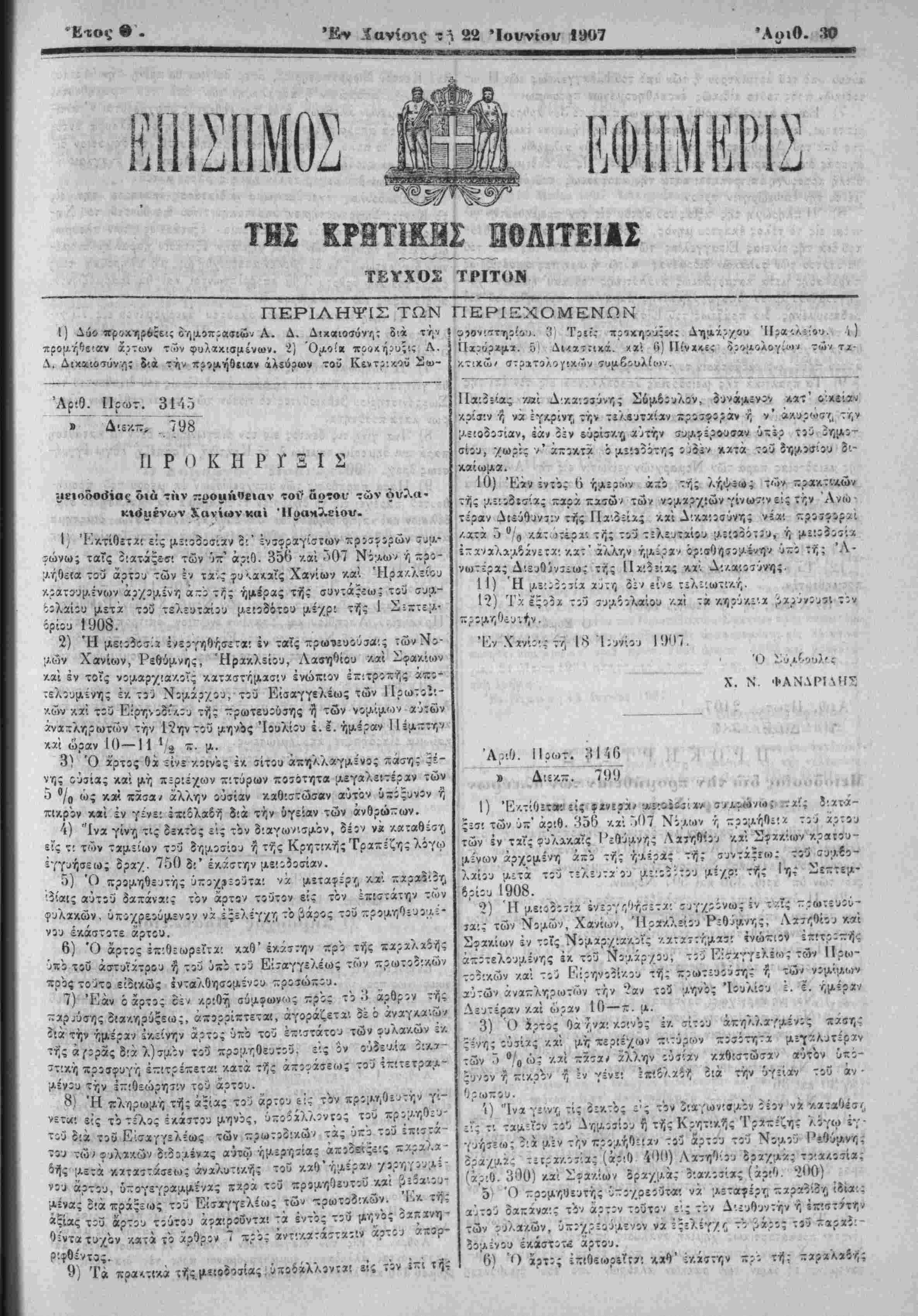 Έν Χανίοις τη 21 Ίουνίου 1907