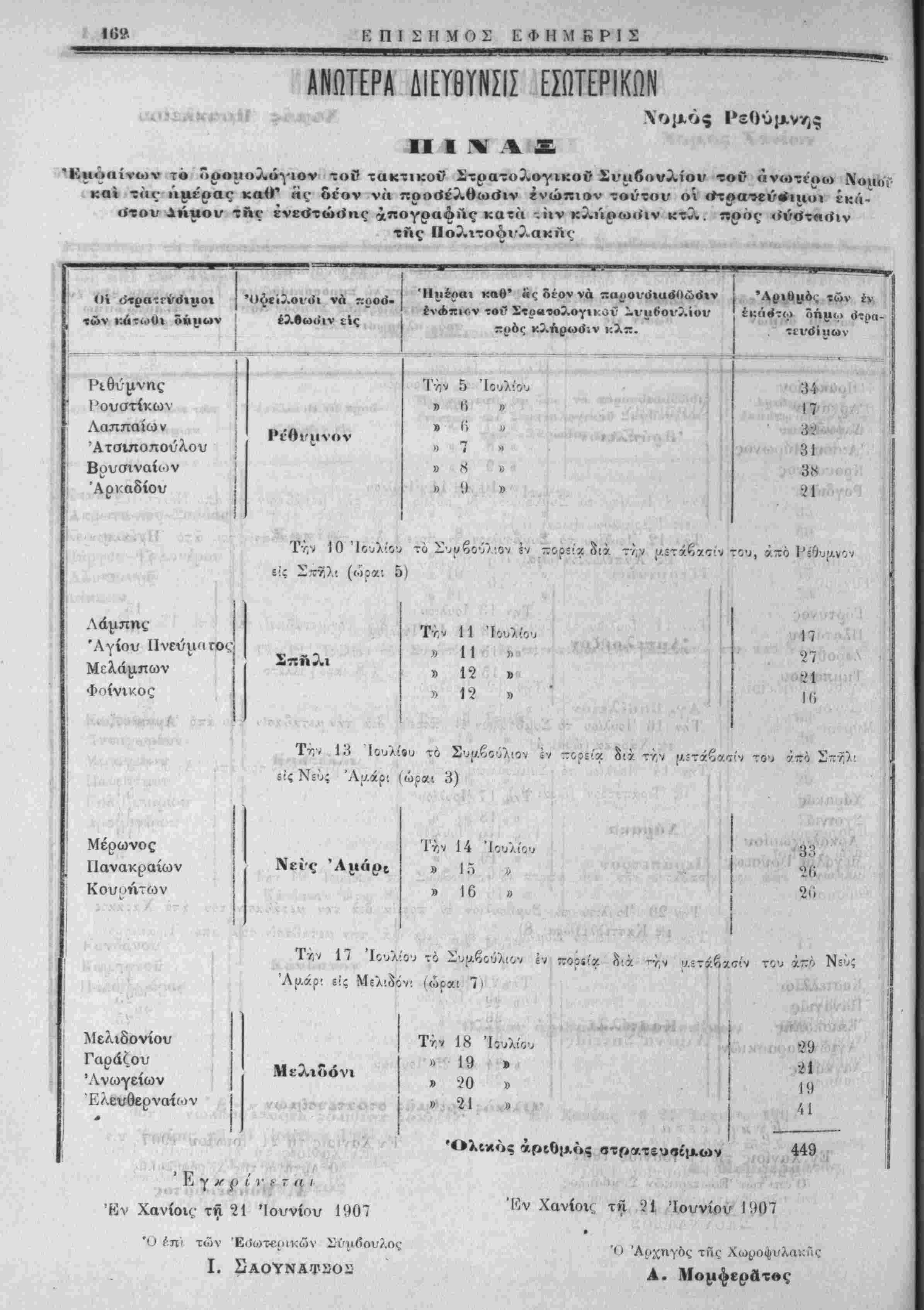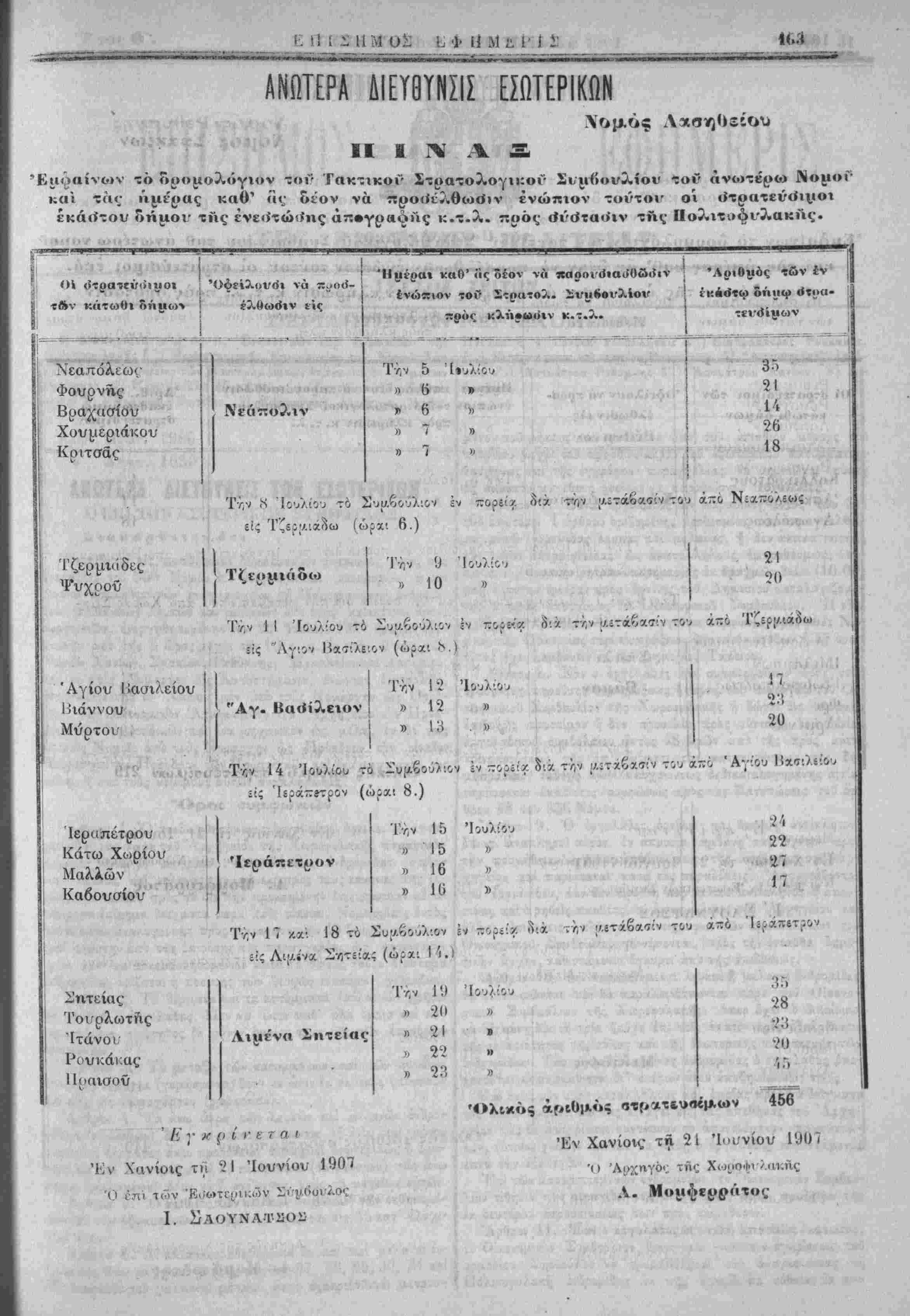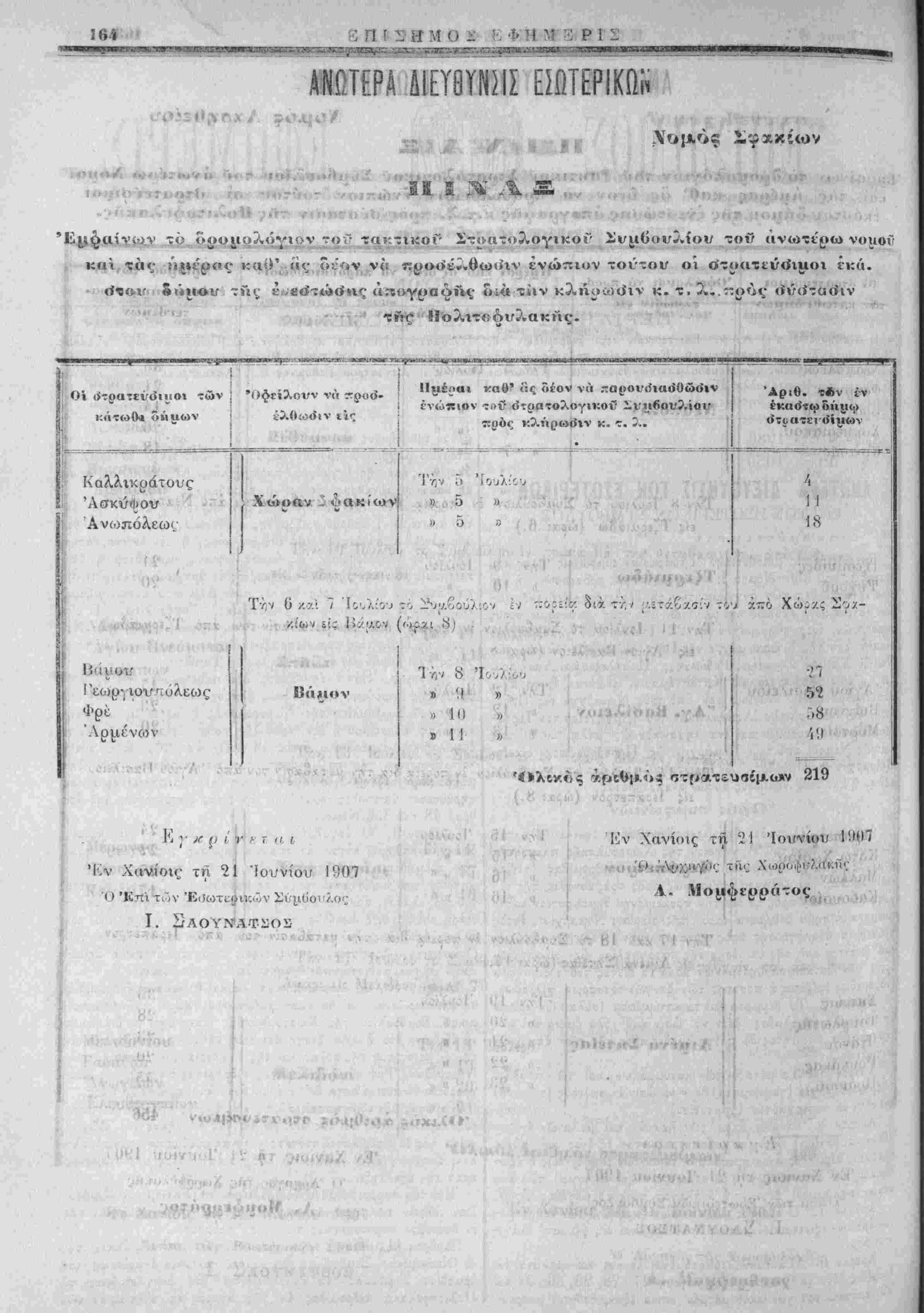 -ι. Σητείας Τονρλωτίας Ίτάνοι Ρουκάκας Πραισοΰ Λιμένα Σητείας 'ΐν,ν 1ί) Ιουλίου » -2Π » «21 β 35 28 2:} ΪΟ ' Ε γ χ (ι ί ι· ί τ α ι Έν Χανίοις τή 21 Ίουνίου 1901 Ό ϊ'τχι ιι.ιν Έιιθ>τι;^ιι;ών Σ''^ι<5 Ι. ϋ Όλικός άριθμός στρατευοίμων 456 Έν Χανίοΐϊ τ$ 21 Ίουνίου 1907 γό·, τή<: ΧωοοιΙιν/ αν.ης , ί
