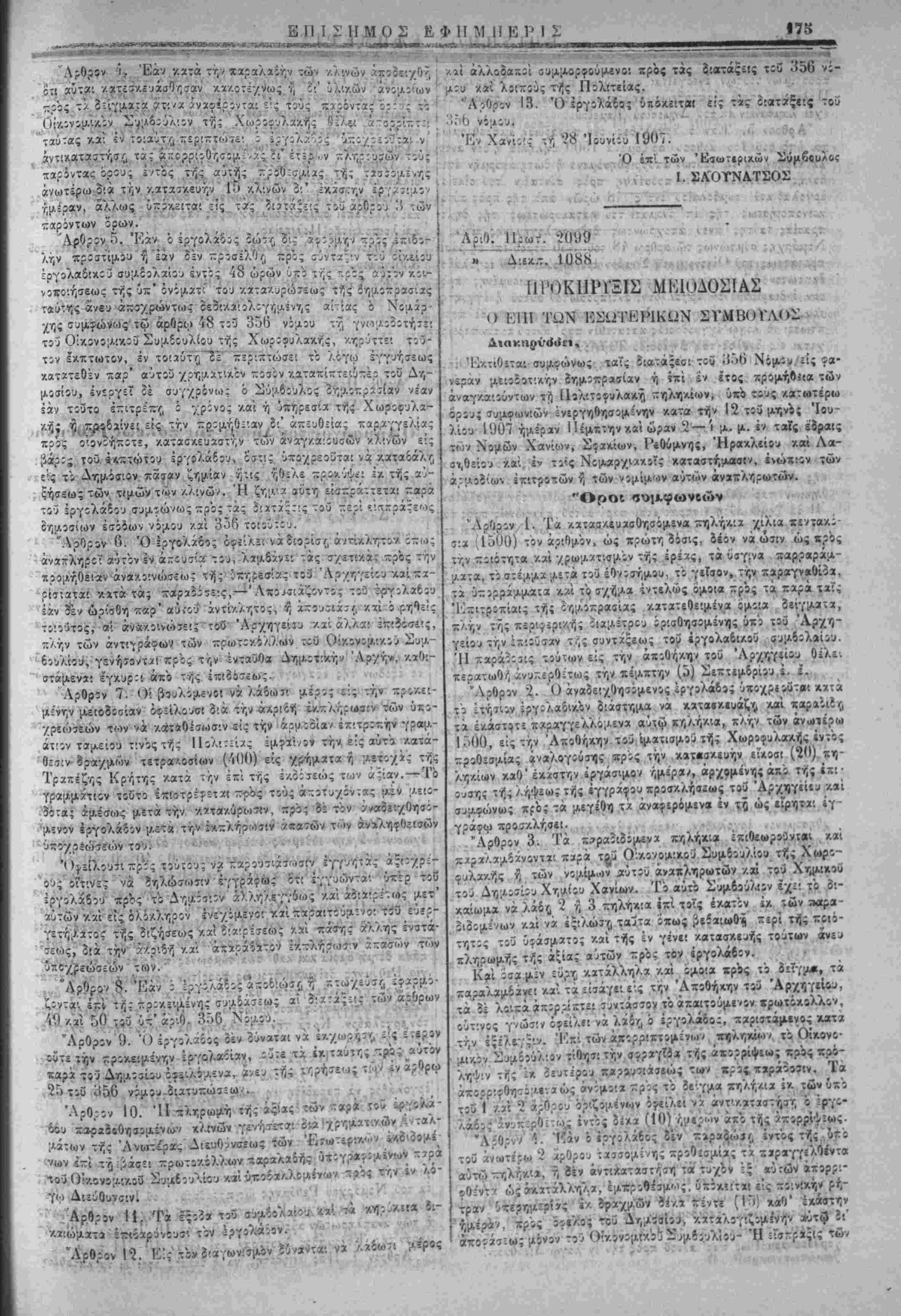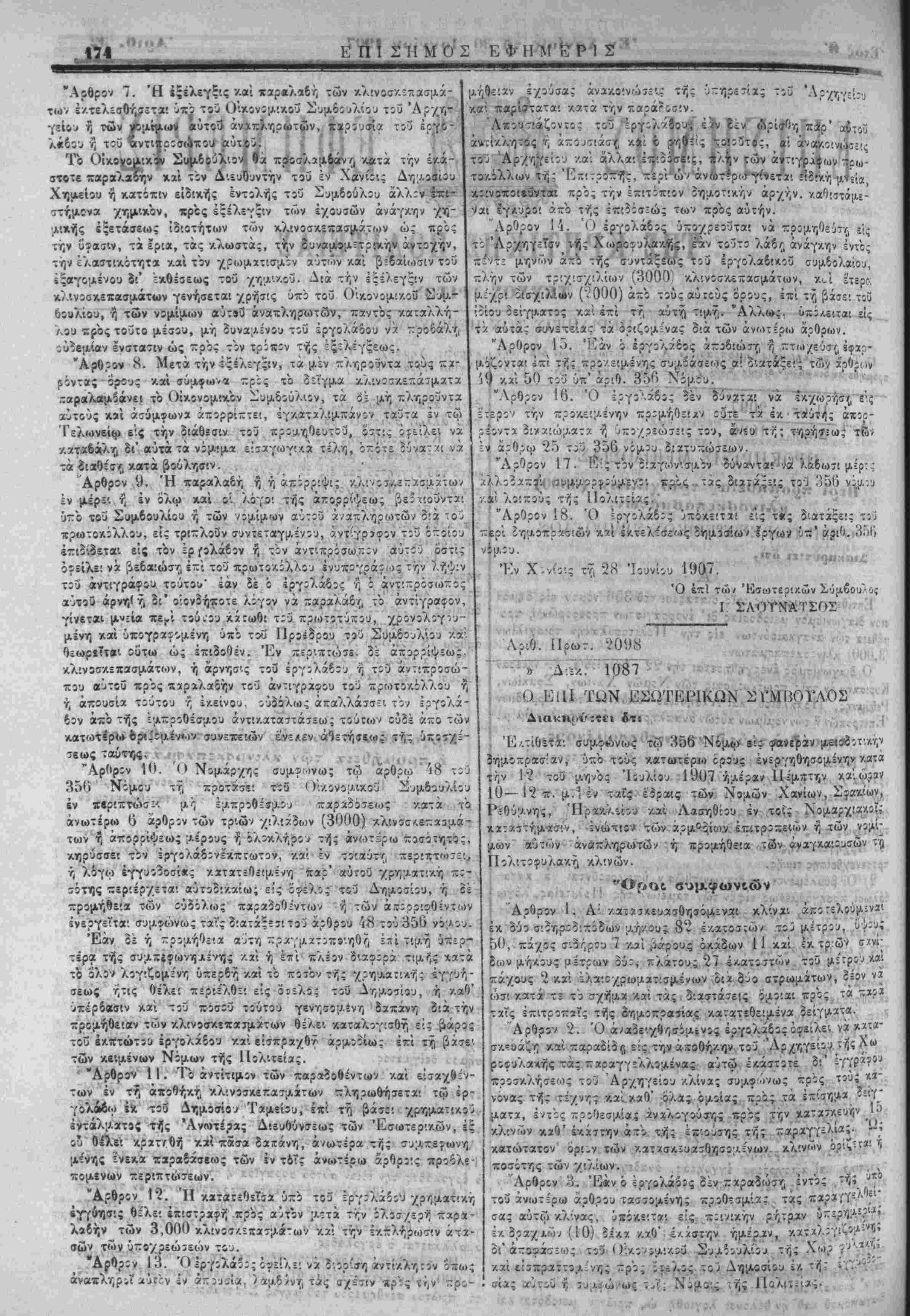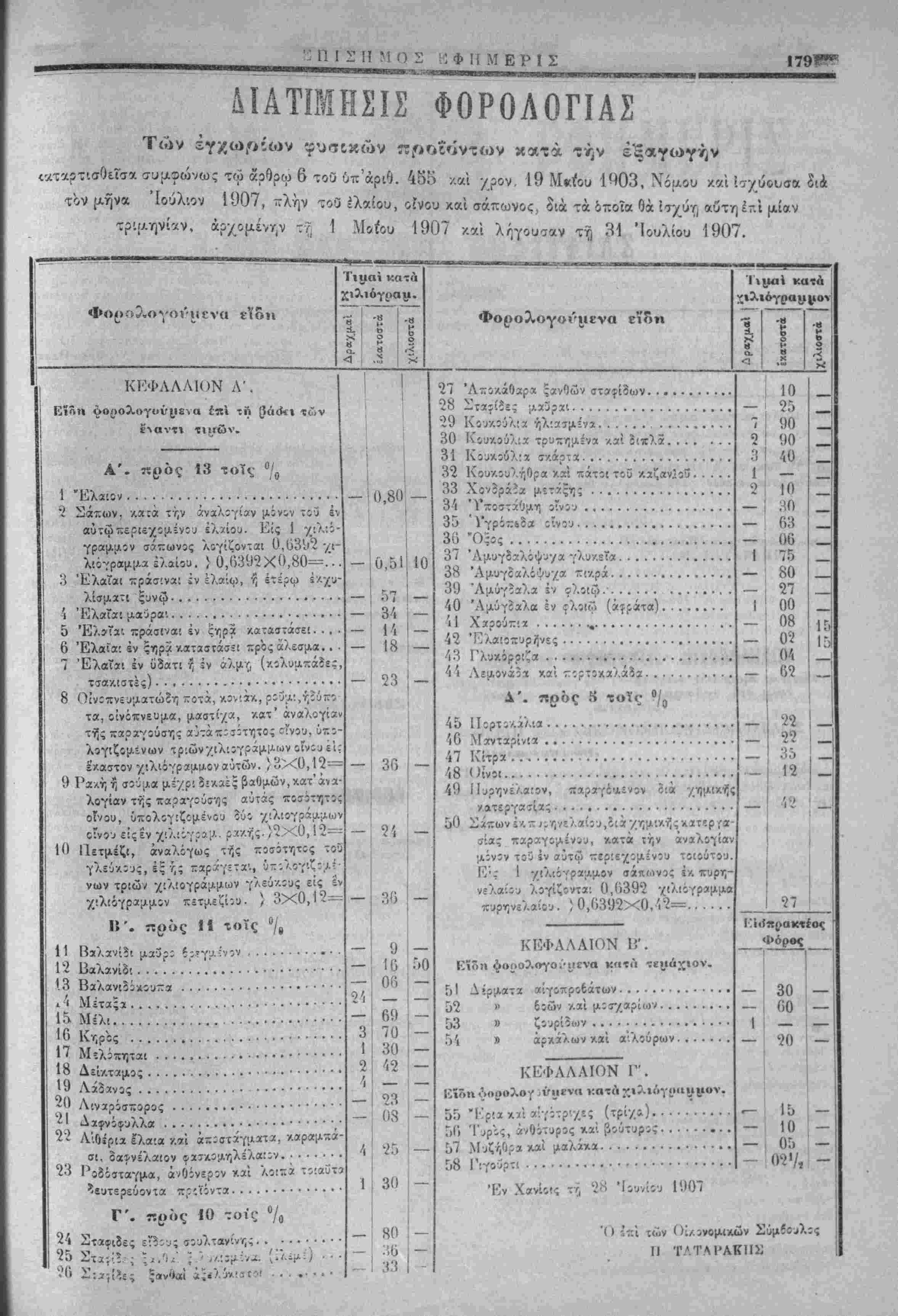 τον μήνα Ιούλιον 1907, -λήν τοθ ελαίου, οίνου καί σάπωνος, διά τα δποΐα θά Ισχύϊ) αύτη επί μίαν