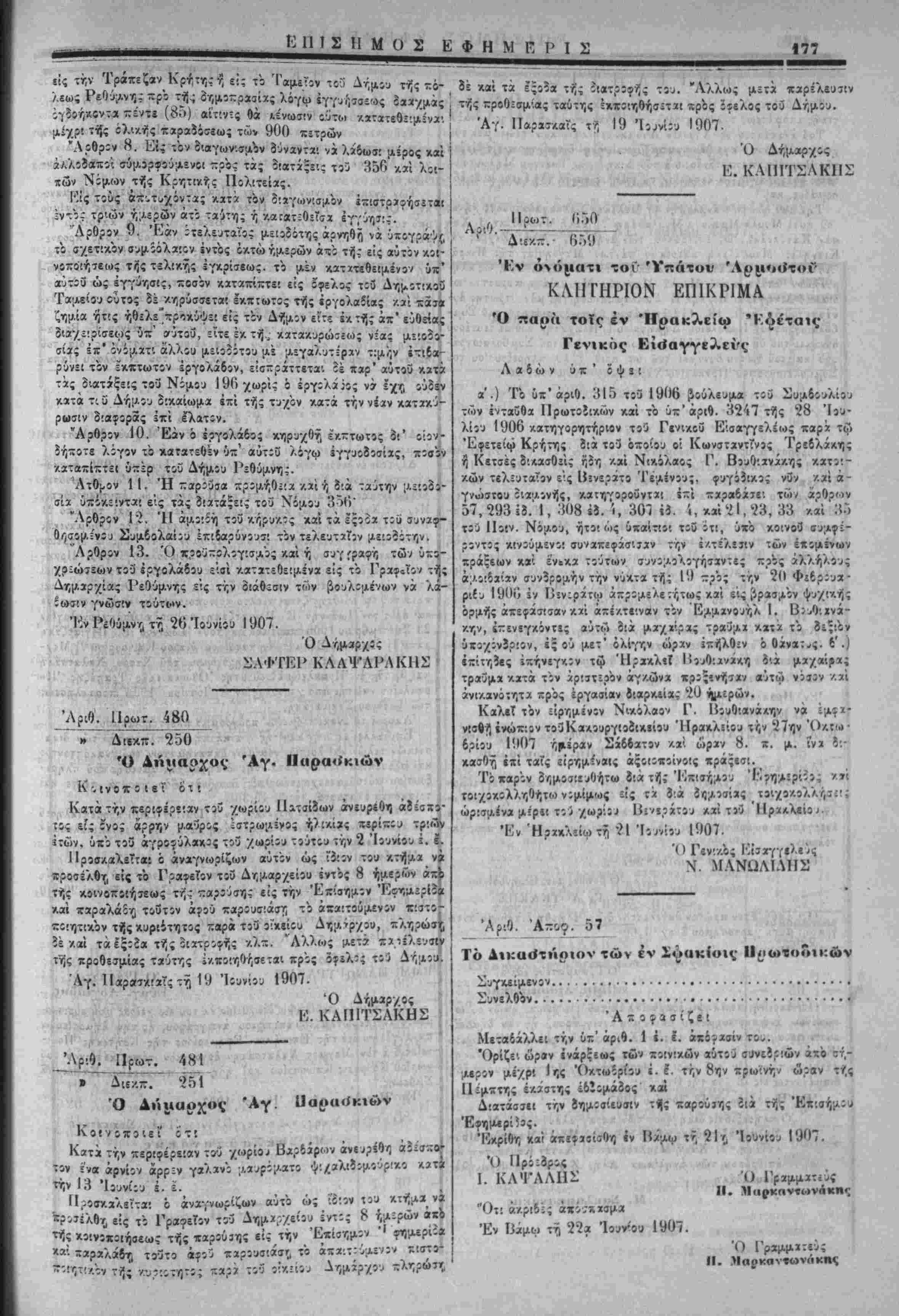 Έν Χανίοις τί) »ι Ιούνιον 1907