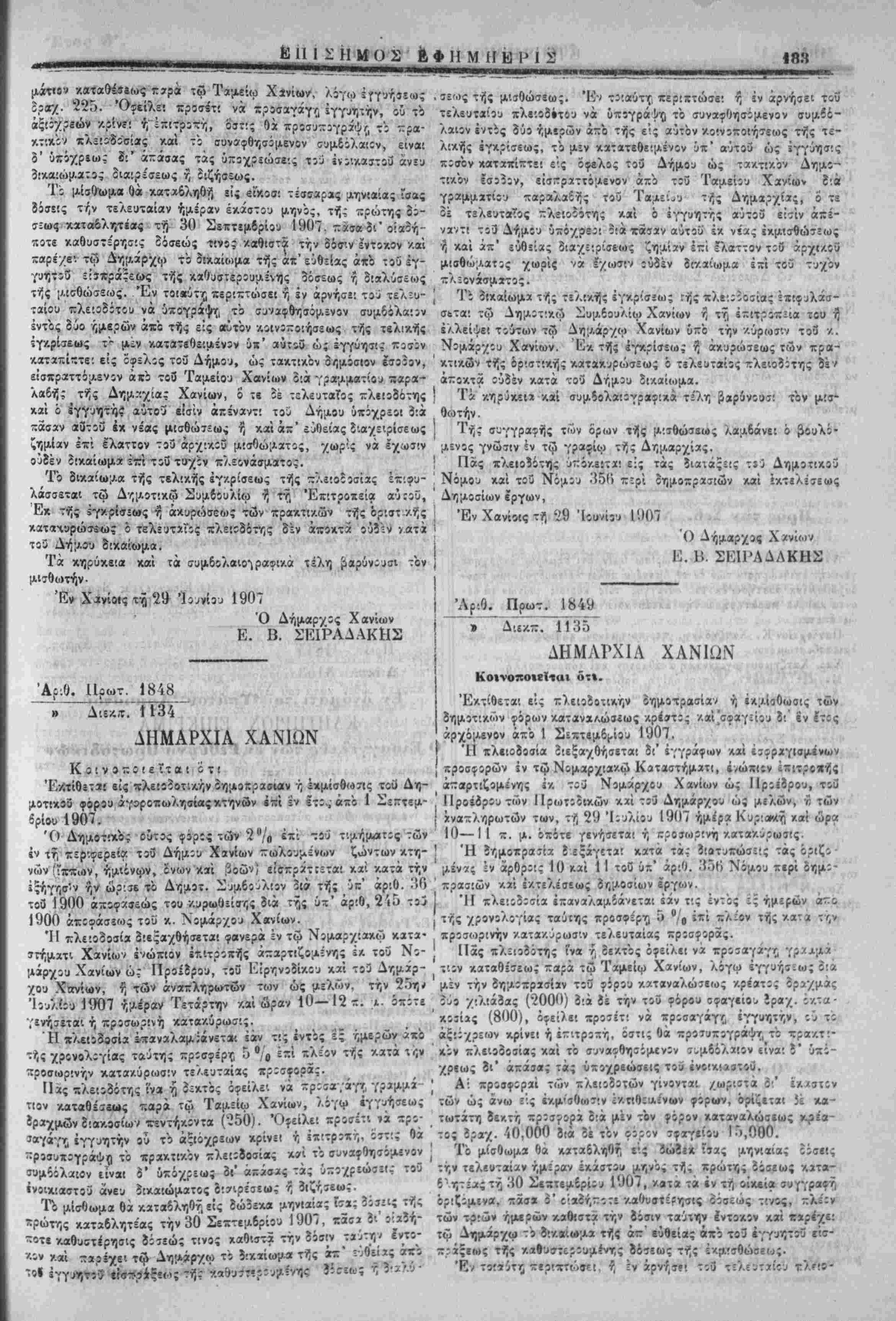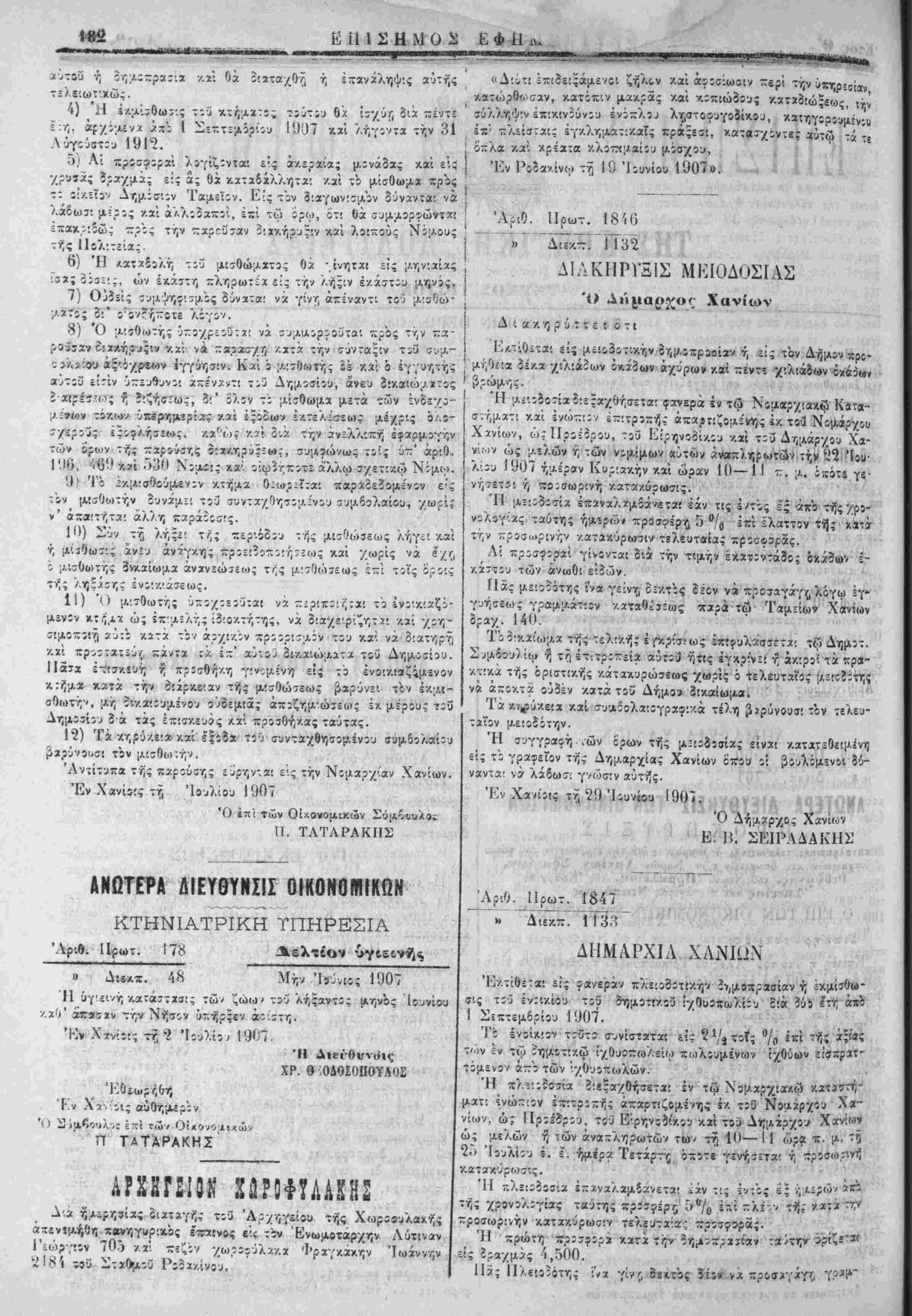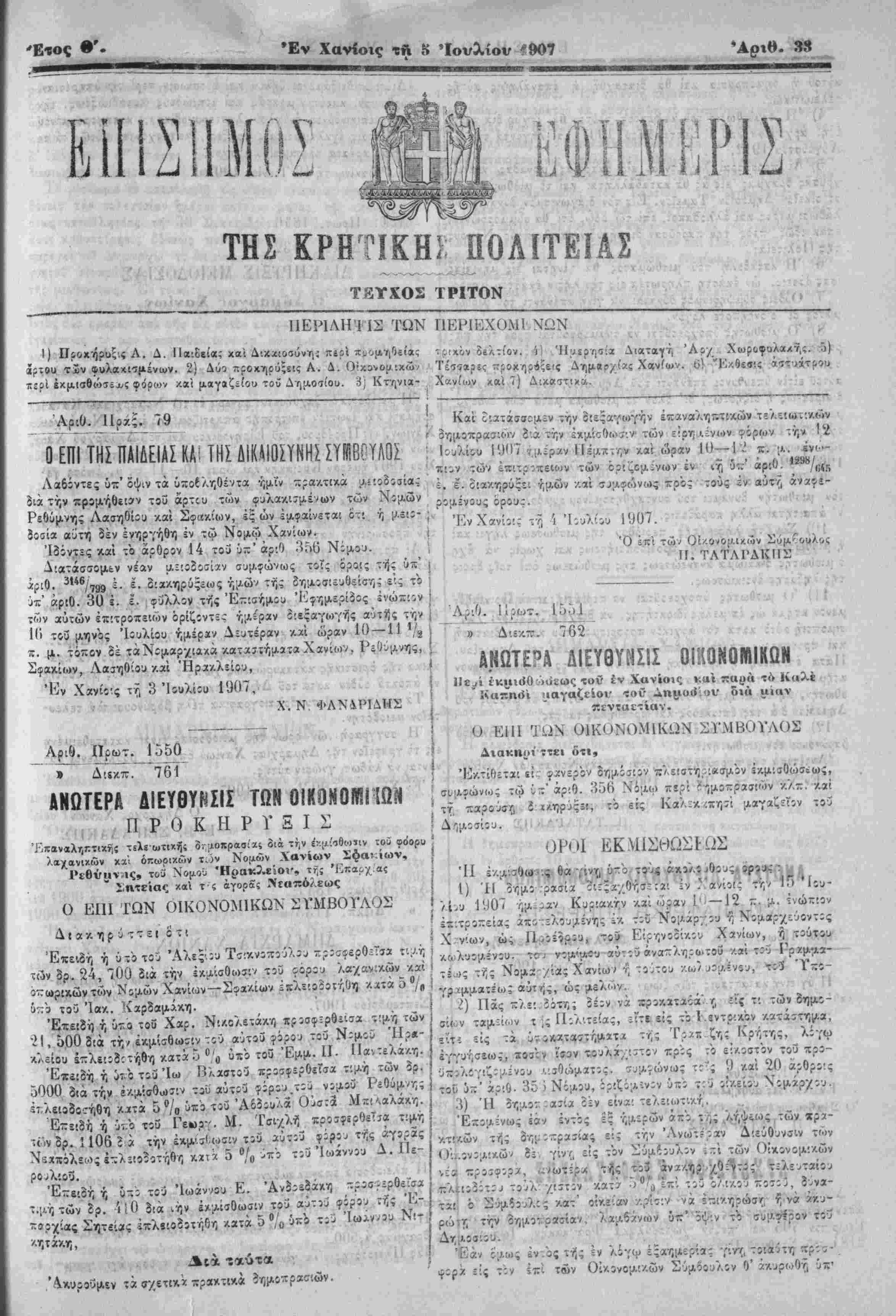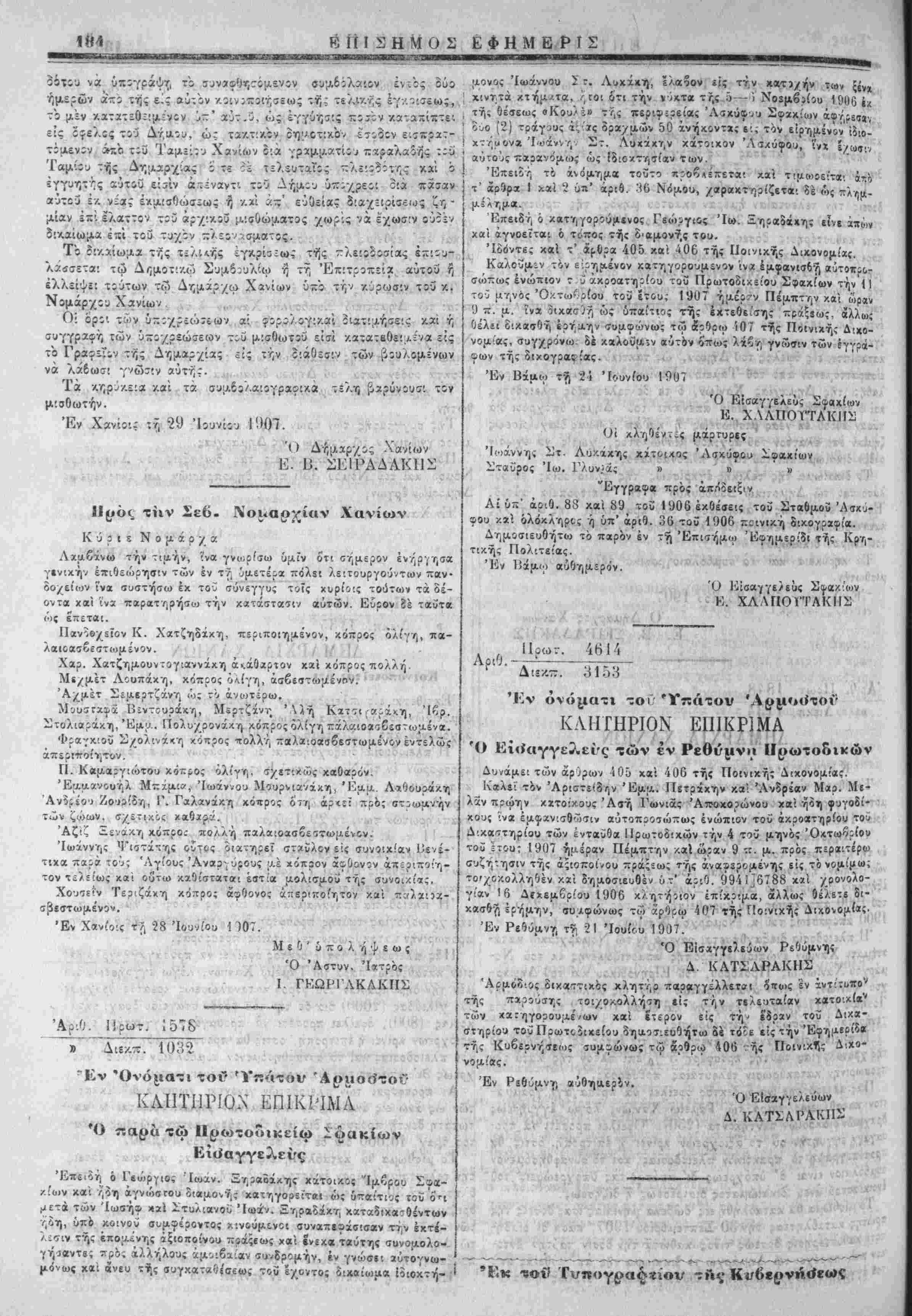 Έν Χ«νίο·ς τ/, 28 Ιουλίου Π07. - ^ " <■»'" -' -* ' ^ ^ Μ" 6 Ο * μ * Π 1 τί ι!; ί Μ ί' ,. _ Μ ε Ο ' ό πό λ ή ψ ε ω ς'"^ __.. Ό Αστυν. Ίατρος ,,'" '"" Ι ΓΚΩΡΙ'ΛΚΛΚΙΙΣΪ τ, 15Τδ 0ί7« Α *Εν "Ονόματι τοϋ Ύπ* ΚΑΙΙΤΙ1ΡΙΟΝ ΕΠΙΚΗΜΑ "■ ^ ,,, 1 *Ο ίχα^ίι τώ ΙΙιυωτοοικείω Σφακίων. , ιΧ Είιίαγγελει/ς ίο^.ΧΑ ,..* Κι^ 5 Γ ϊΐ , υπό κοινοϋ συμφέροντος χ·νί»υμίνοι συ^αιπίθάσ'σαν την έχτί- ιχονος Ιωάννου ί -. ΛοχίχΥ], Ι/αβον ιις τί ν χ«τ5/ήν τ(βν ςίνχ χινττά χτήμΛΐα, ί,τοι ότι την ν ;χτα τής 5 — > Νοίμβιίου 1906 ιλ