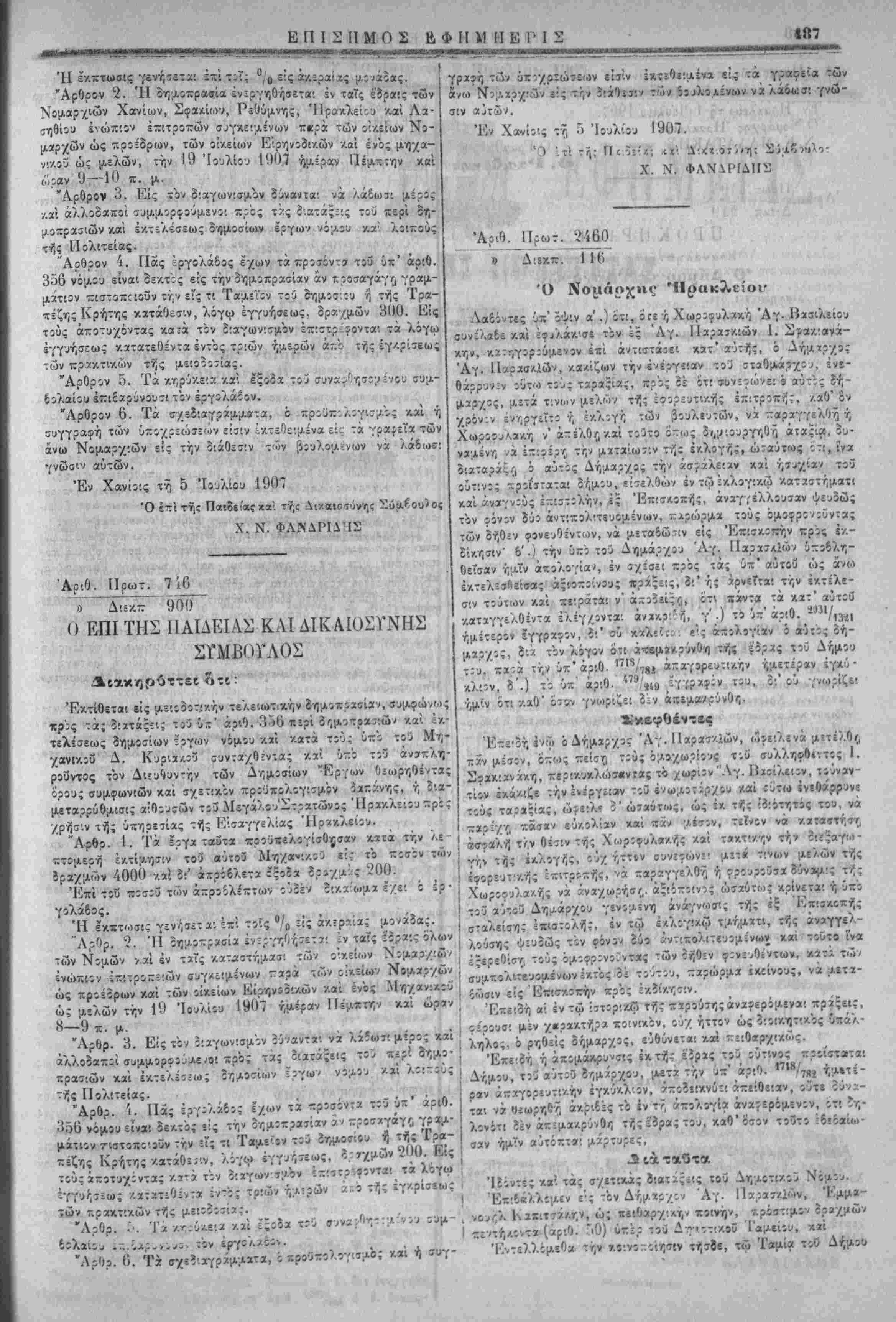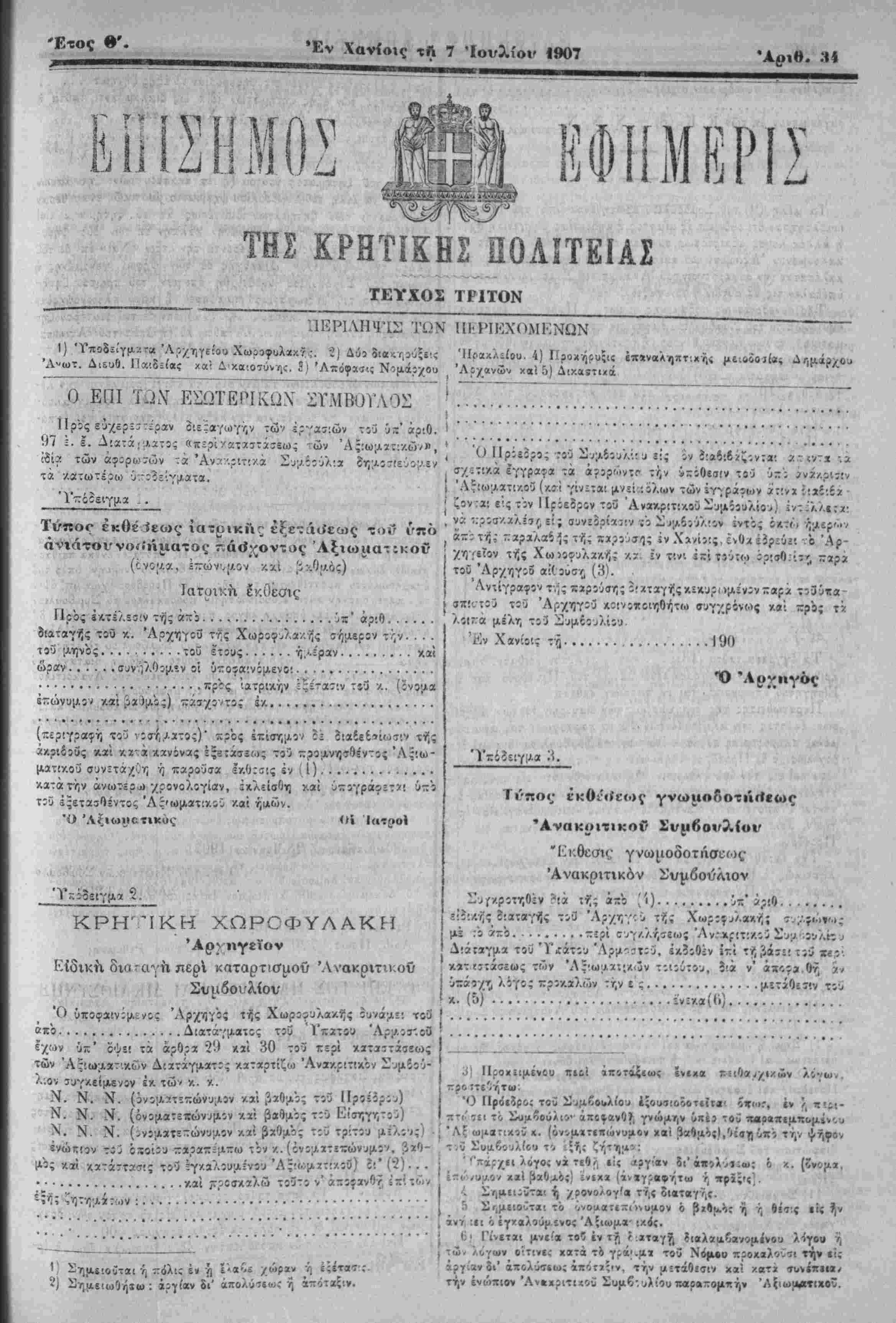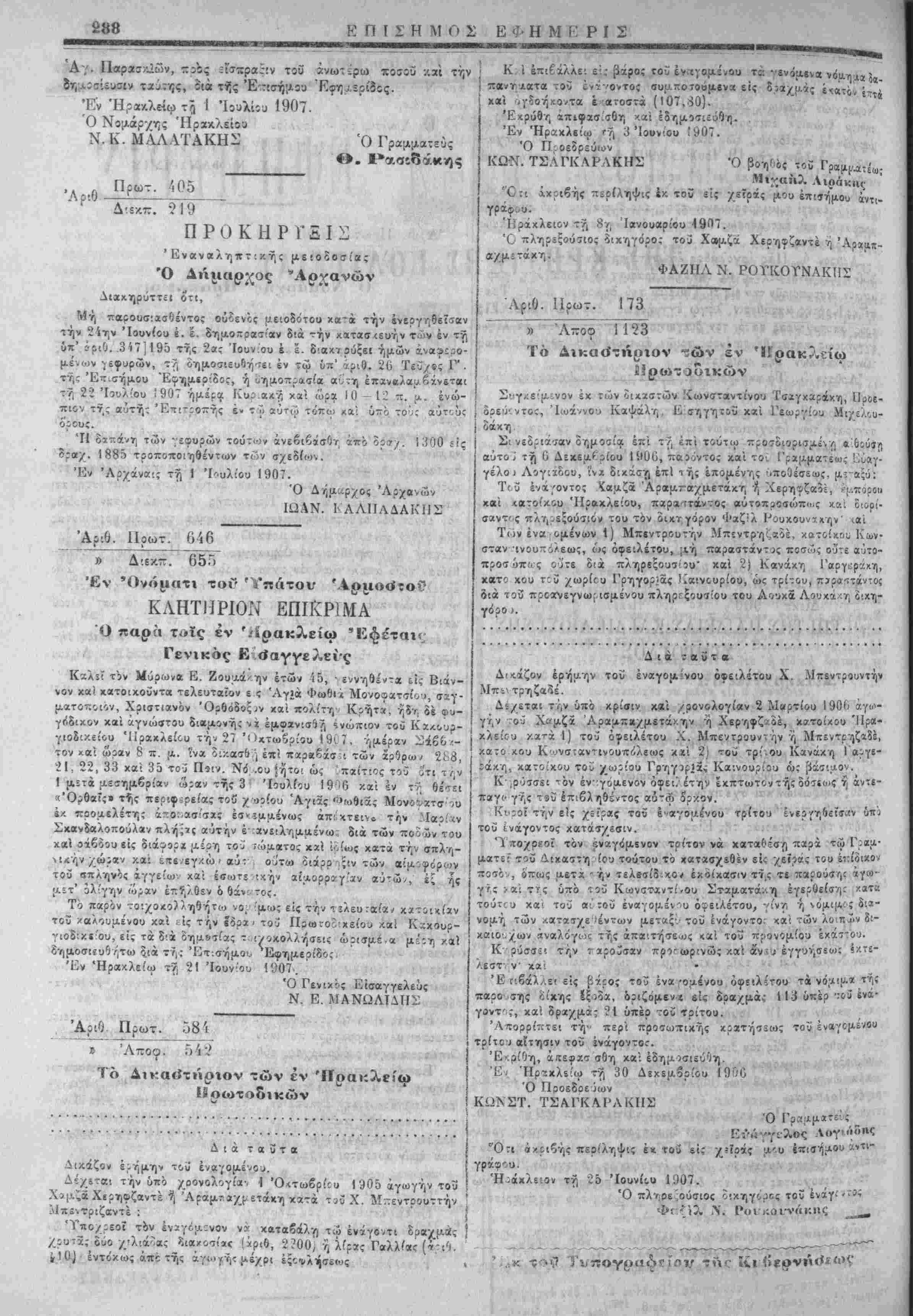Έν Ηρακλείω τή 1 Ιουλίου 1907.