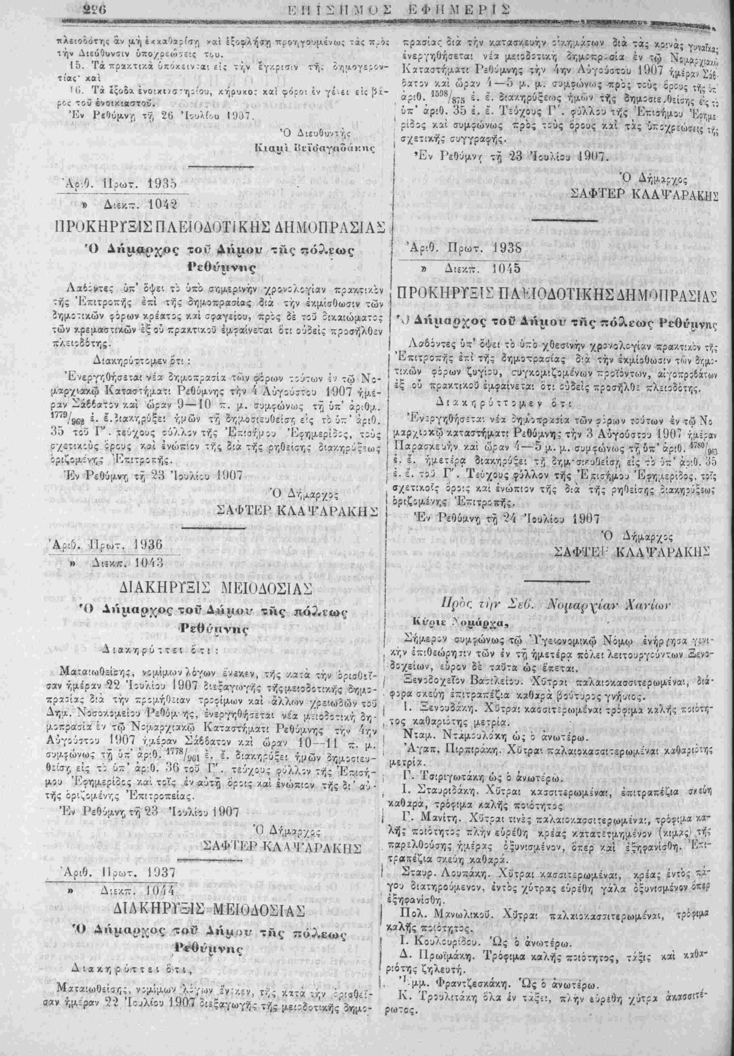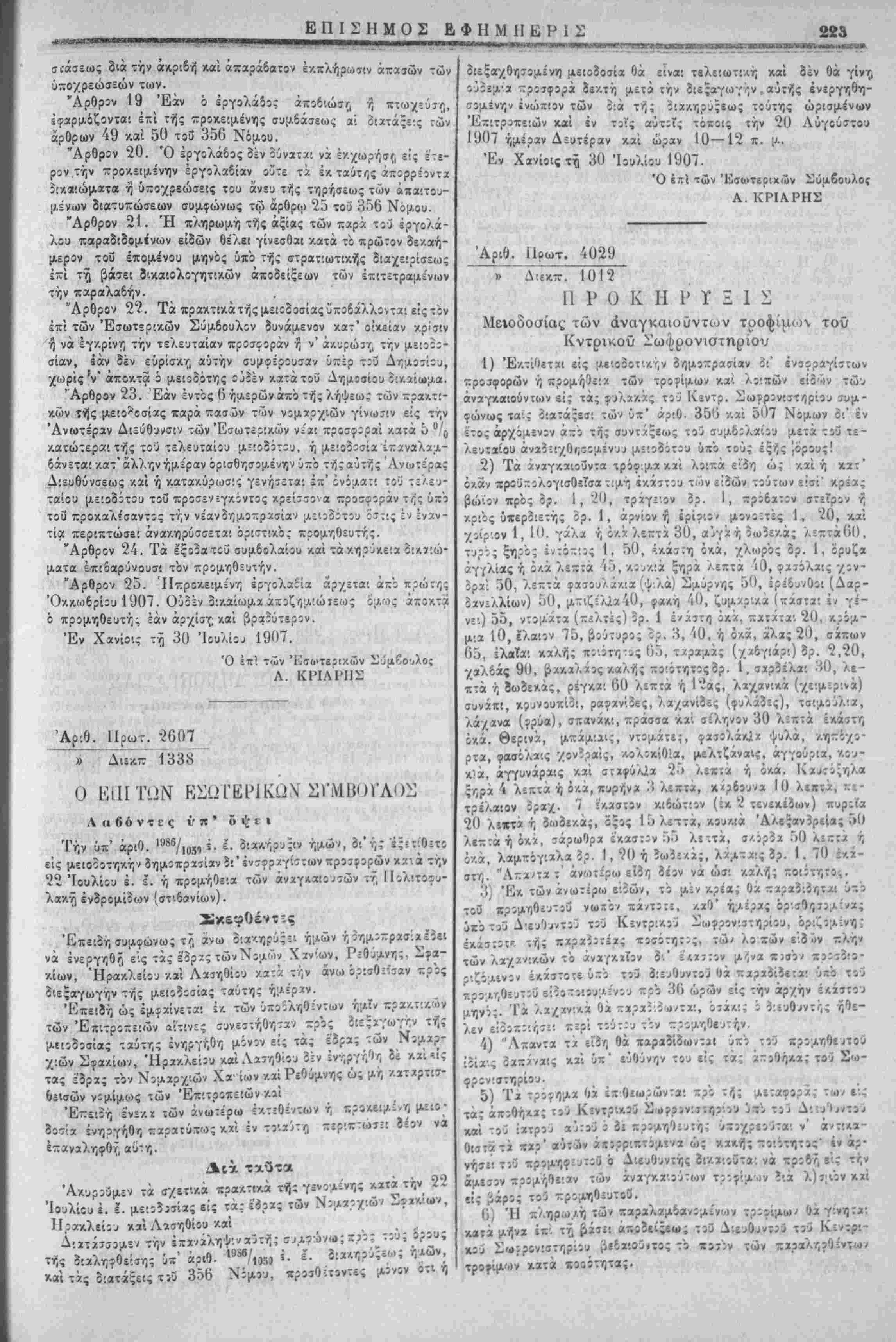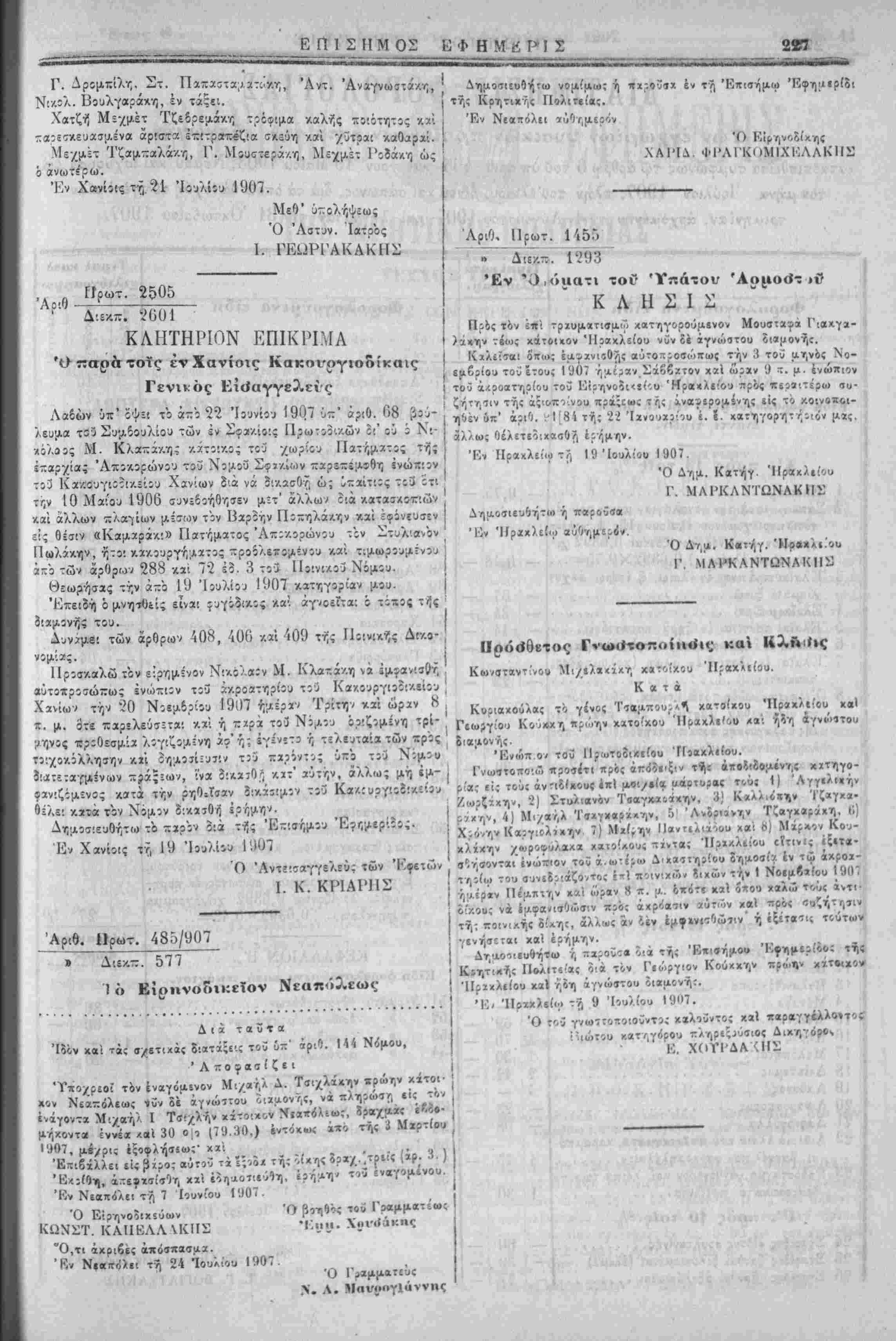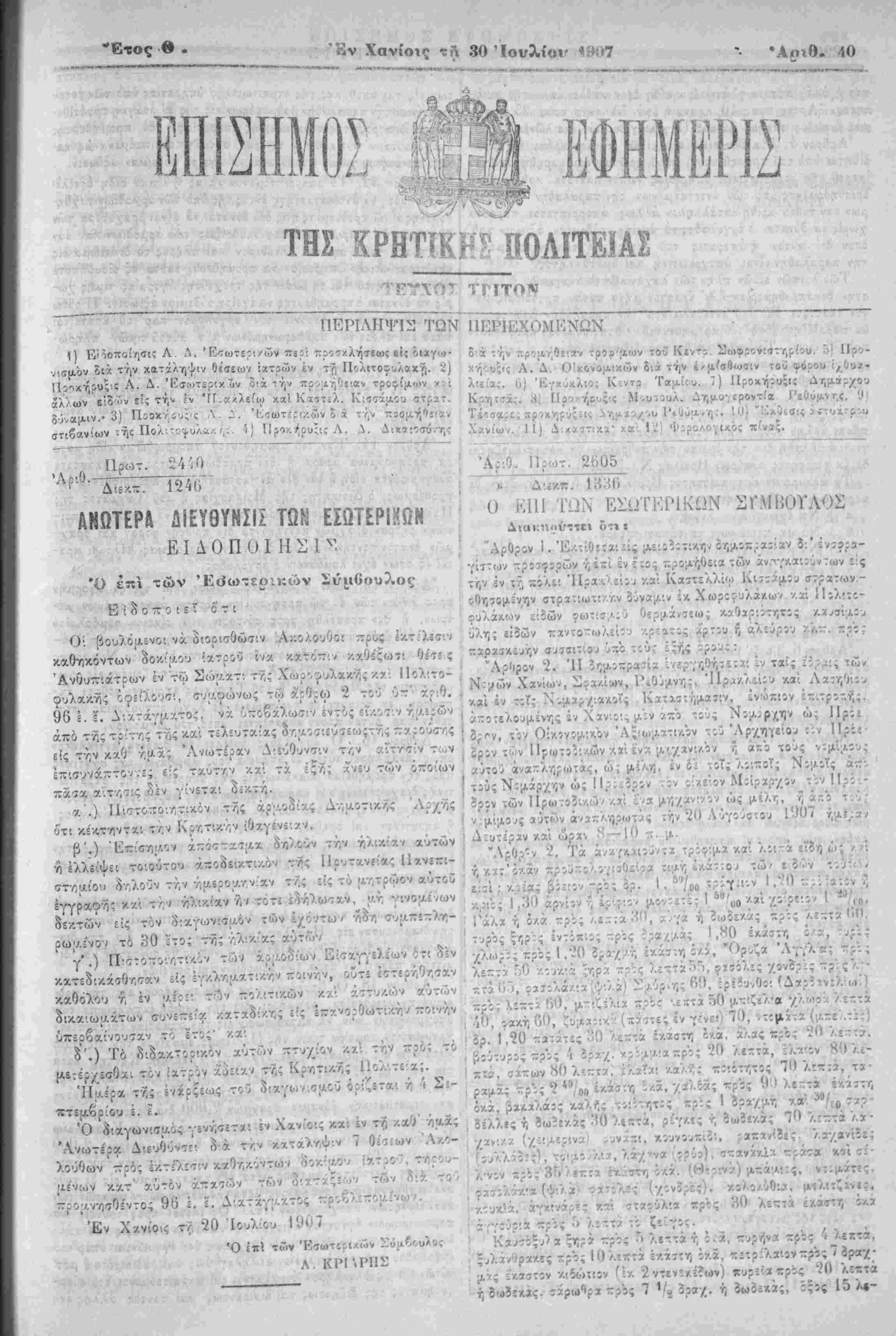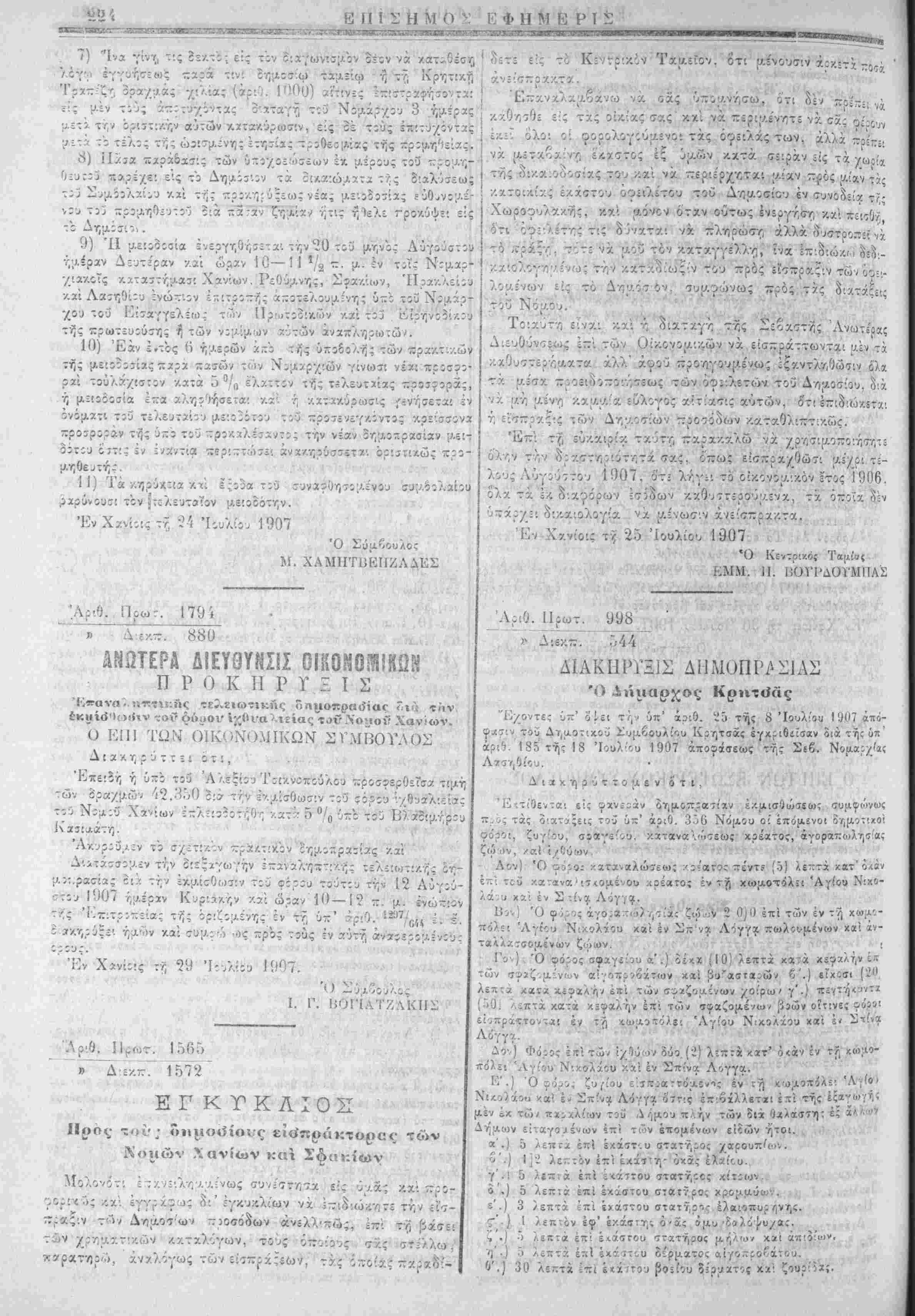 Εν Χανίοις τί, 19 Ιουλίου Ι'.ί07