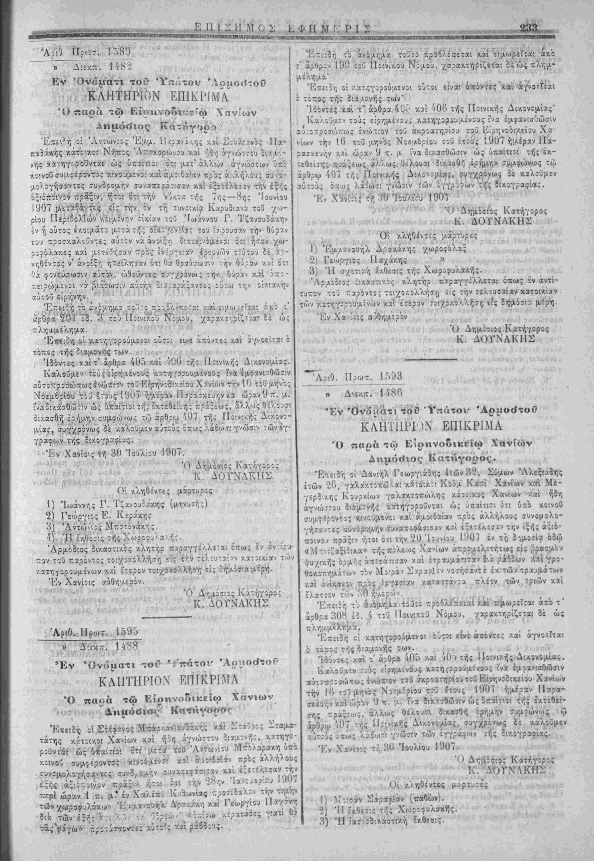 γορουμίνου χ«1 ίτ.ρον τ-,ιχοχοΛλΐ)<Γ|] ι!ς δημοσία μ«ρτ, «αι ϊτ«ρον δή Ό Δημόϊΐος Κατήγορος Ήραχλείου Γ. ΜΑΙ'ΚΑΝΤβΝΑΚΗΣ Αριθ. ΙΙρωτ. Ι4Ί3 » Διε/.-. 1281 .; Έν Όνόματι τοϋ 'ΙΓπάτοΐ' ΚΛΗΤΗΡΙΟΝ ΚΠΙΚΡ1ΜΑ Ό πα£>ά τώ ΕίοηνοΓ>ικείω Ίΐοακλείοΐ'