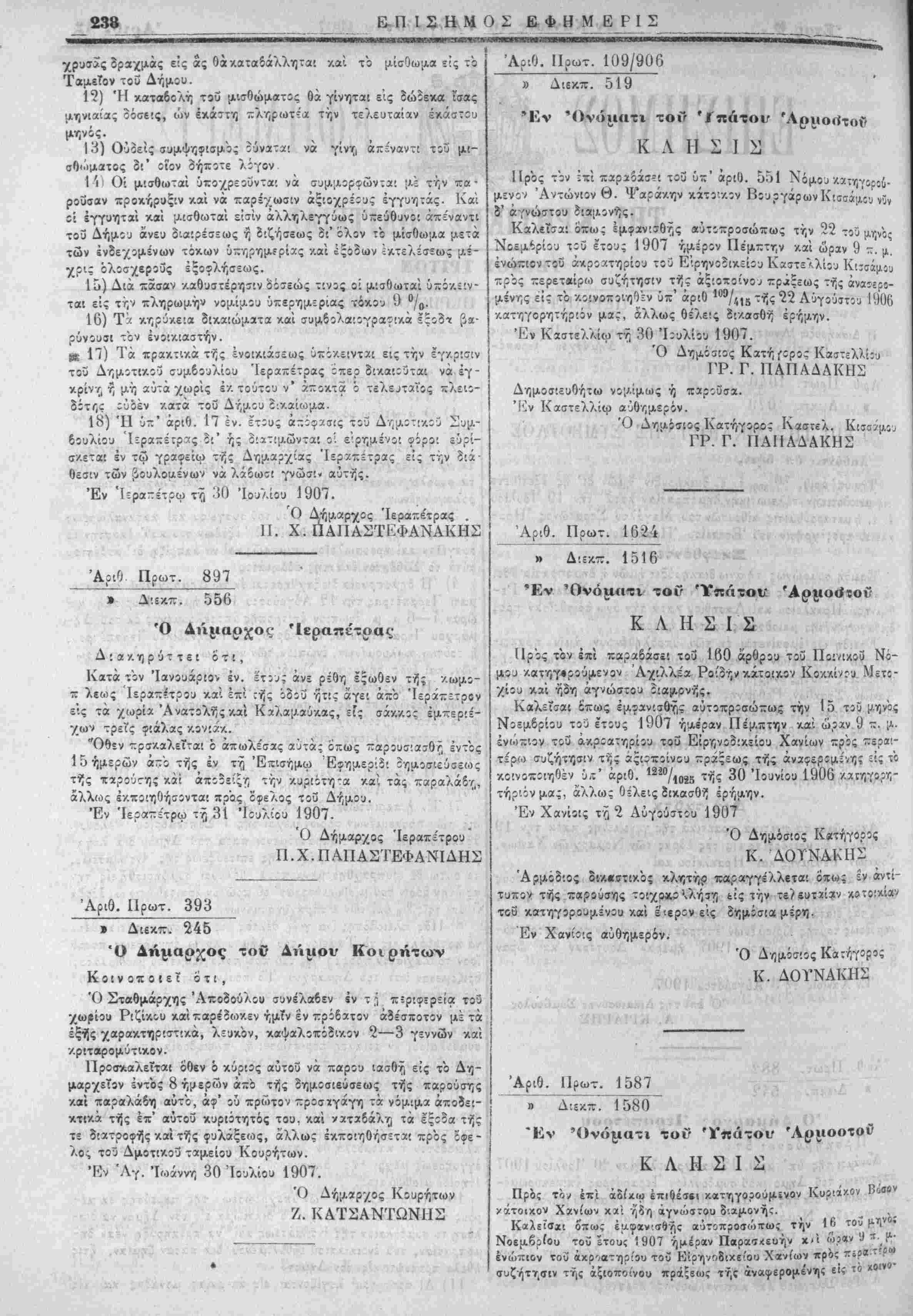 Έν Ήραχλείω τ^ 19 Ιουλίου 1907.