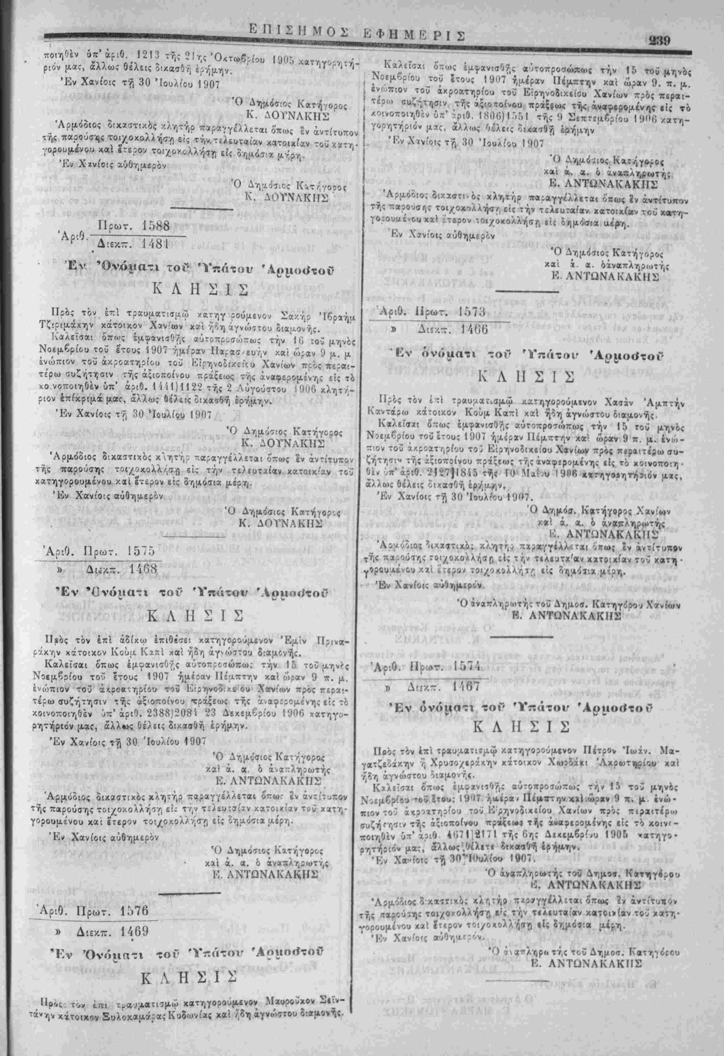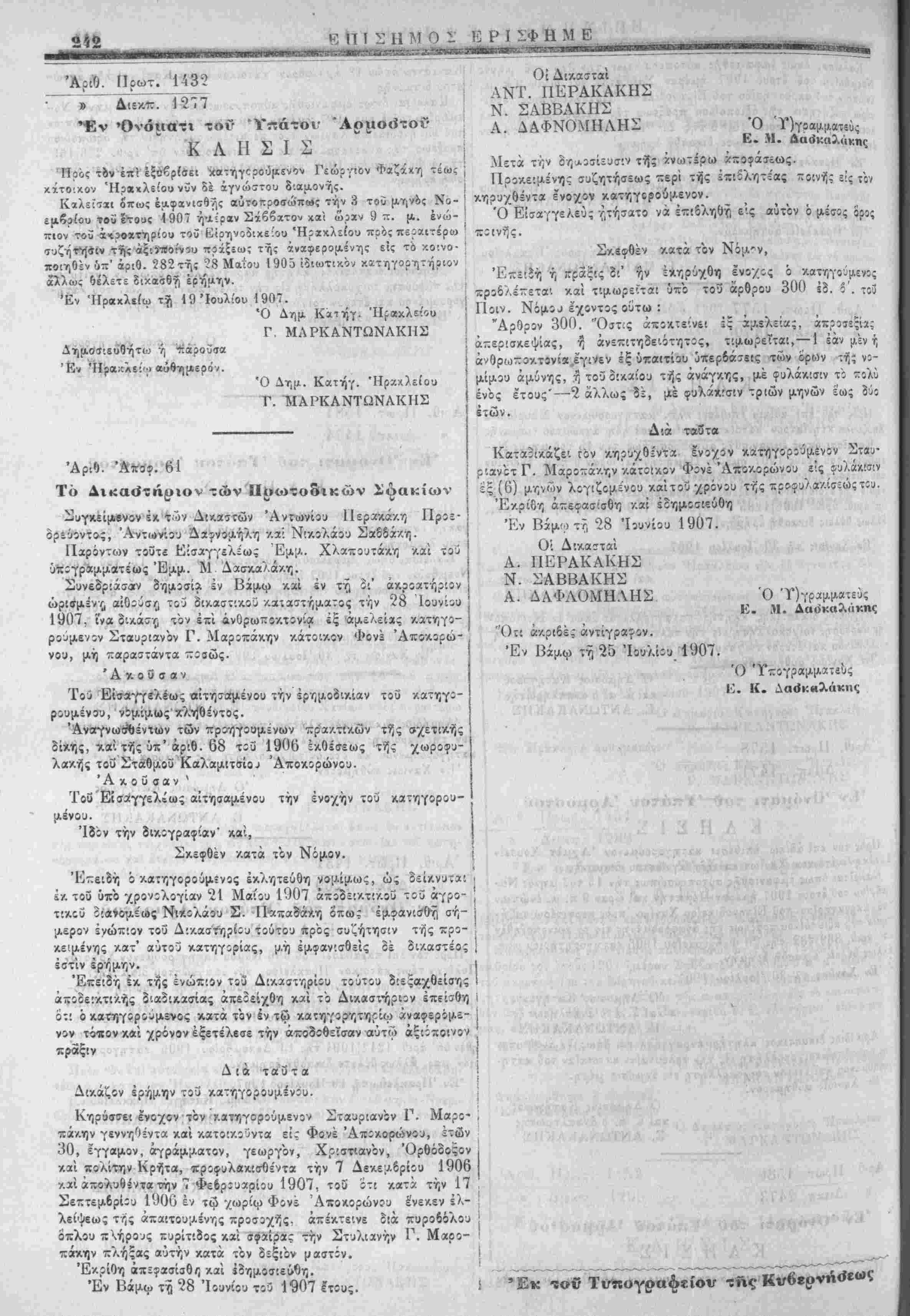 ύπίγραμματεως Έμμ. Μ Δασκα/άκη.