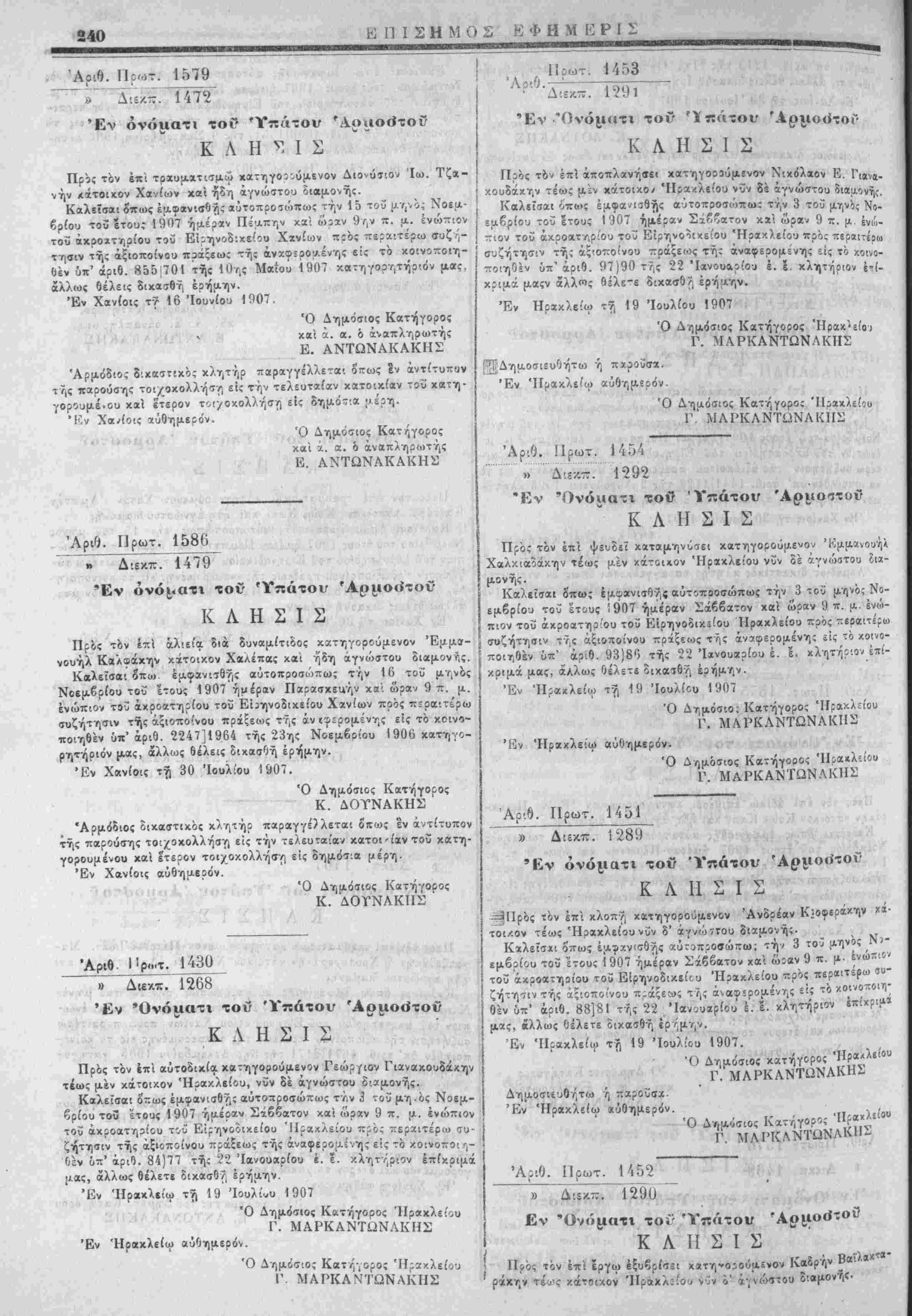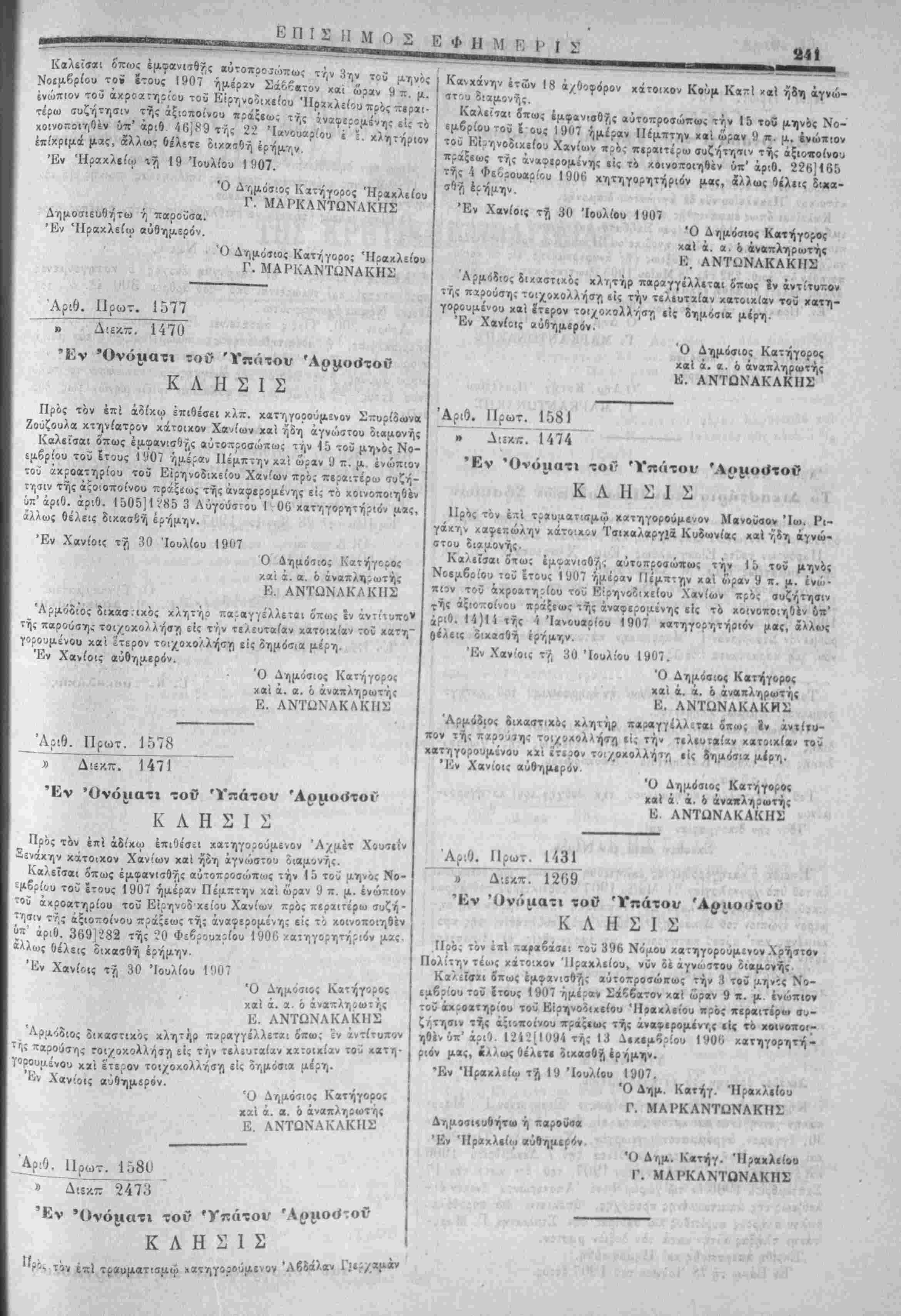 κλείου προ: χρήσιν τού Έφετείθϋ Ηρακλείου.