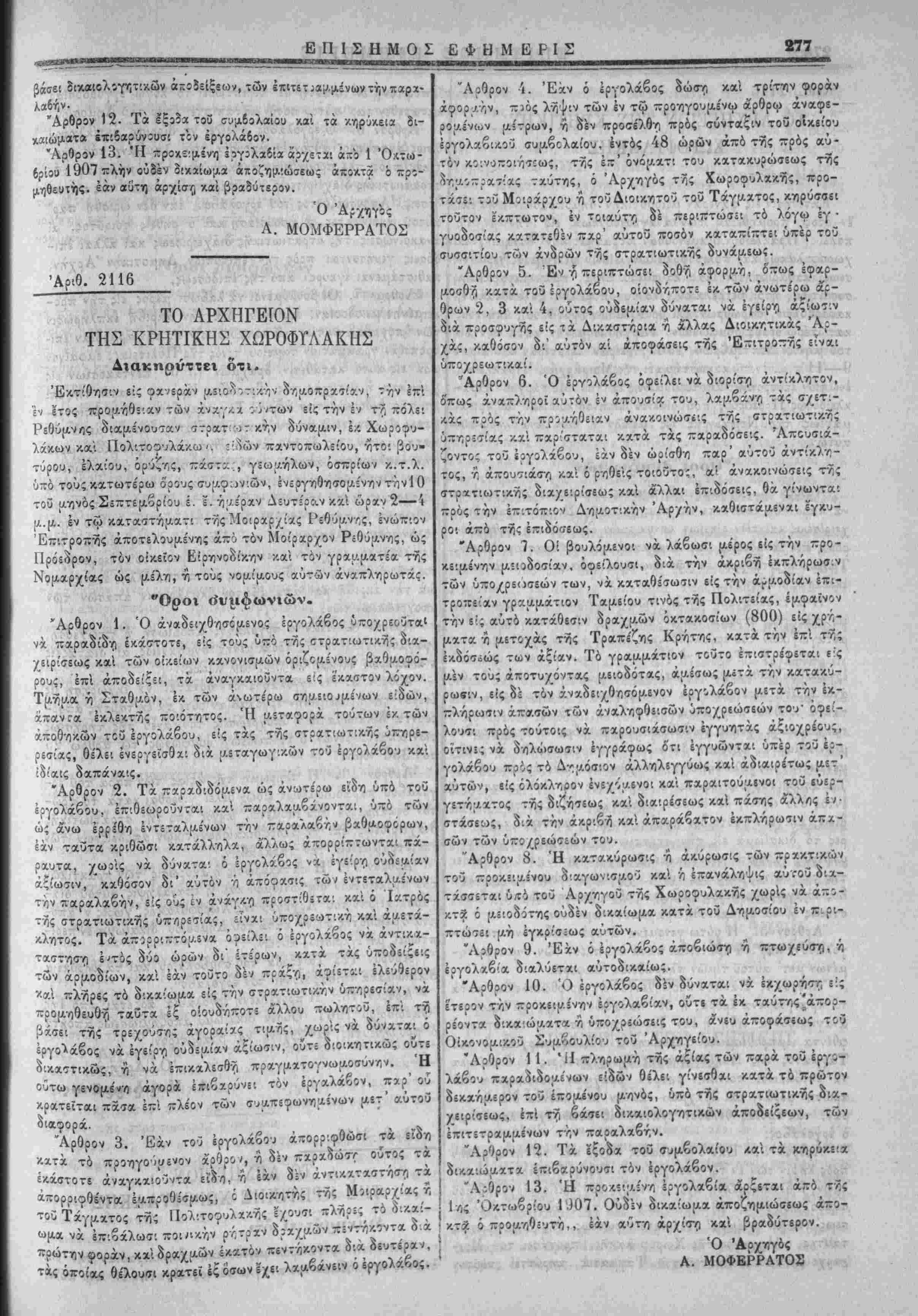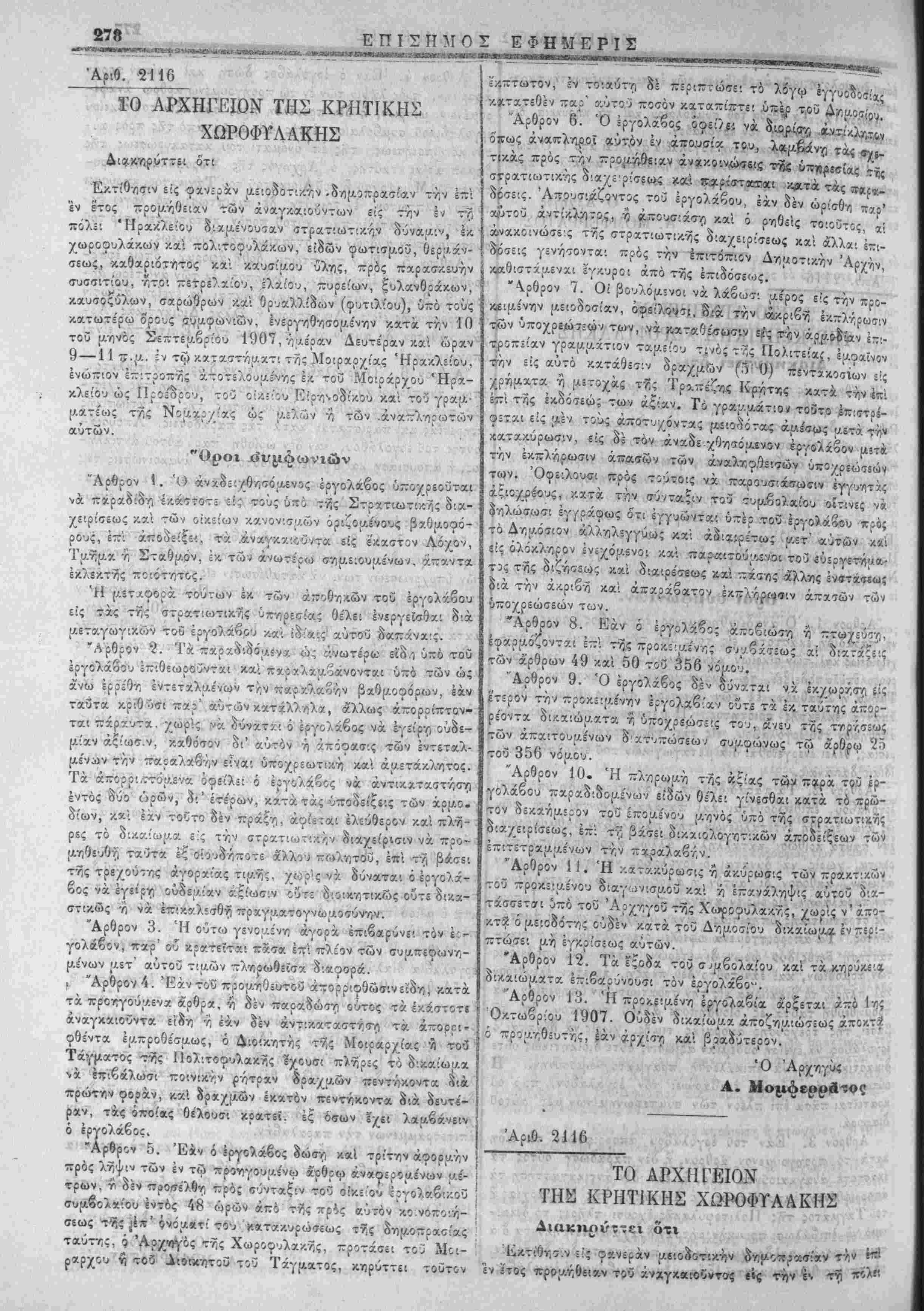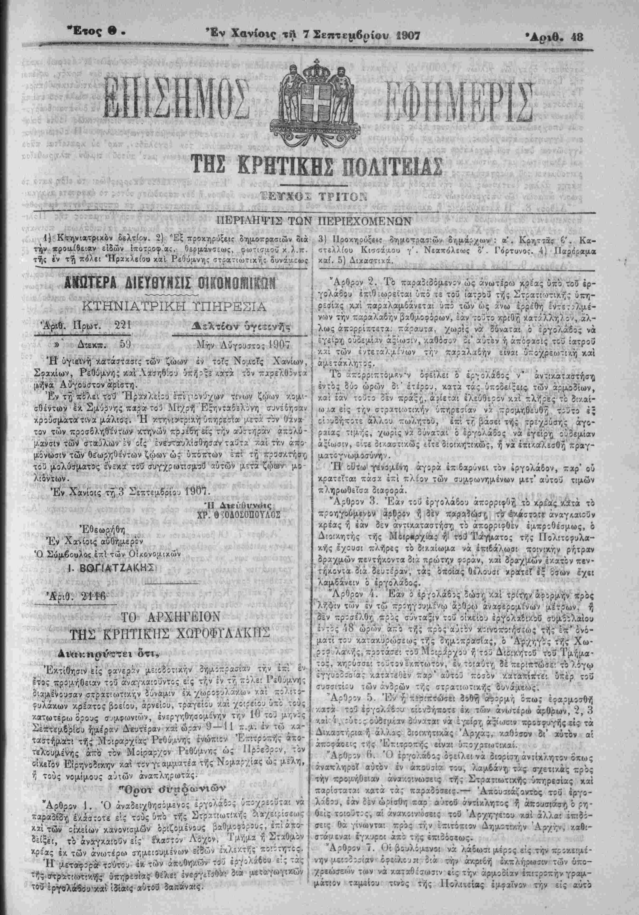 Έν Χανίοις τΛ 7 Σεπτέμβριον 1907
