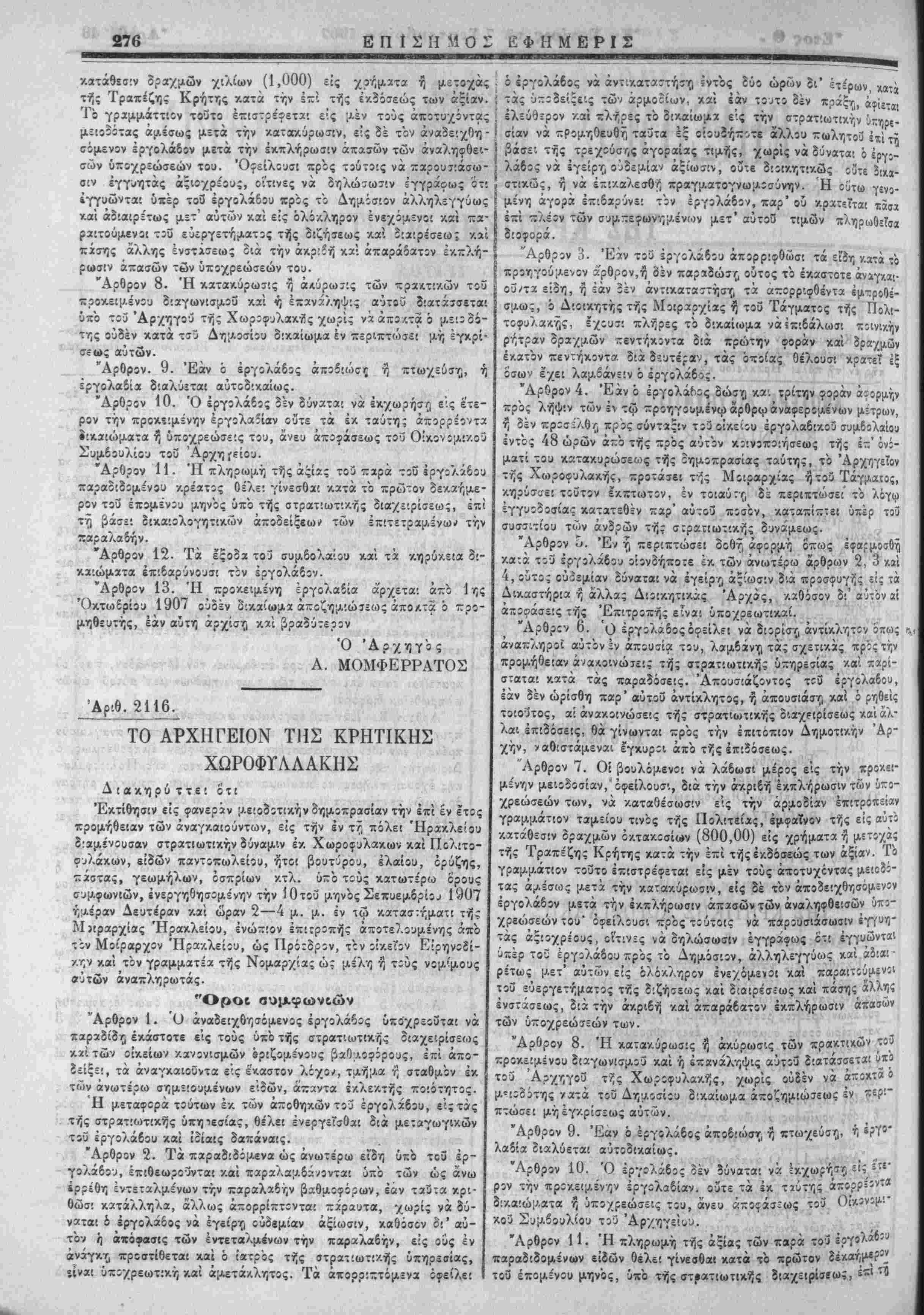 Ή μ——ορ<τ τ5Χι«υ έκ των άχ',θη/.ων τϊΰ έργίλαβοι» εις τας , ^.Λρατΐ<««ΐίς δ~ρ«ί«ς θέλει ένε-.Τβ·^ 8« Η·*«ϊ«ϊ««5ν | τοΰ έργολάβου'κΛί Ίοϊα«ς αύτοι» " "Αρθρον 2. Το παρα2:3όμεν:ν ώς ανωτέρω κρίας ΰπ'ο τΐΰ έρ- γολάδου ίκιθ.ωρεϊται Οπό τε τοΰ ϊατοϊΰ τής Στραπ',)τιχ.ής ϋπη- ρίσίας χαί παραλαμδάνεται ϋ-ό των ώς άνω έρρέθη Ιντετ;λμέ- νων -ήν παραλαδήν βαθμίφόρων', εάν ιζΖτο κ-ριθη κατάλλη) ζ ι, άλ¬ λως άπΐρρίπτετα. -άραυτβ, χωρίς νά δύναται ό έργο/.άβος νά έγϊίρη οΰοεμίίν άςίωσι^, χαθόσνν οί* α^-ϊν ή απόφασις τοΰ ίατροΰ •/.αί των ί/τεΐαλ,Αί/ων τί;ν παραλ^δήν είναι ΰ-ο^εωτ(7.η χαί «μίτάκλη-ος. * * '"' ' '. '....., Ί"1 1ο απ;ρρ'.πτόμίν-ν οφίϊλεϊ ο ϊργολάοος ν αντίχαταστήΐΓς έντος δύί ώρών δ'.' έτίρο^, κατά τάς ύ"ΐδίΐςίΐς, των αρμοδίων, /.αί ίάν' τοΰτ: ;ΐν κράξς, αρίεται ί7>ϊάθίίίν κϊί πλήΐες τ'ο δΐν.αί-