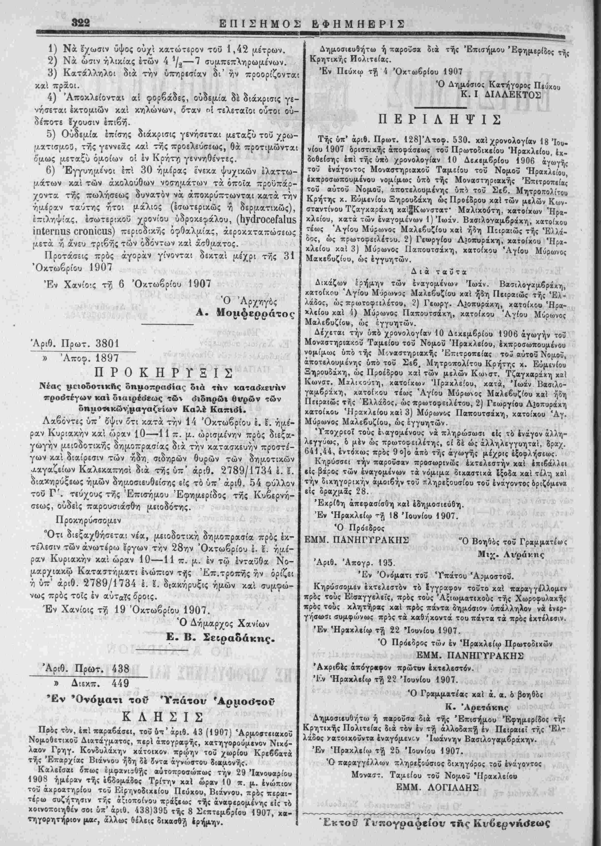 Έν Ηρακλείω τή 22 Ίουνίου 1907.