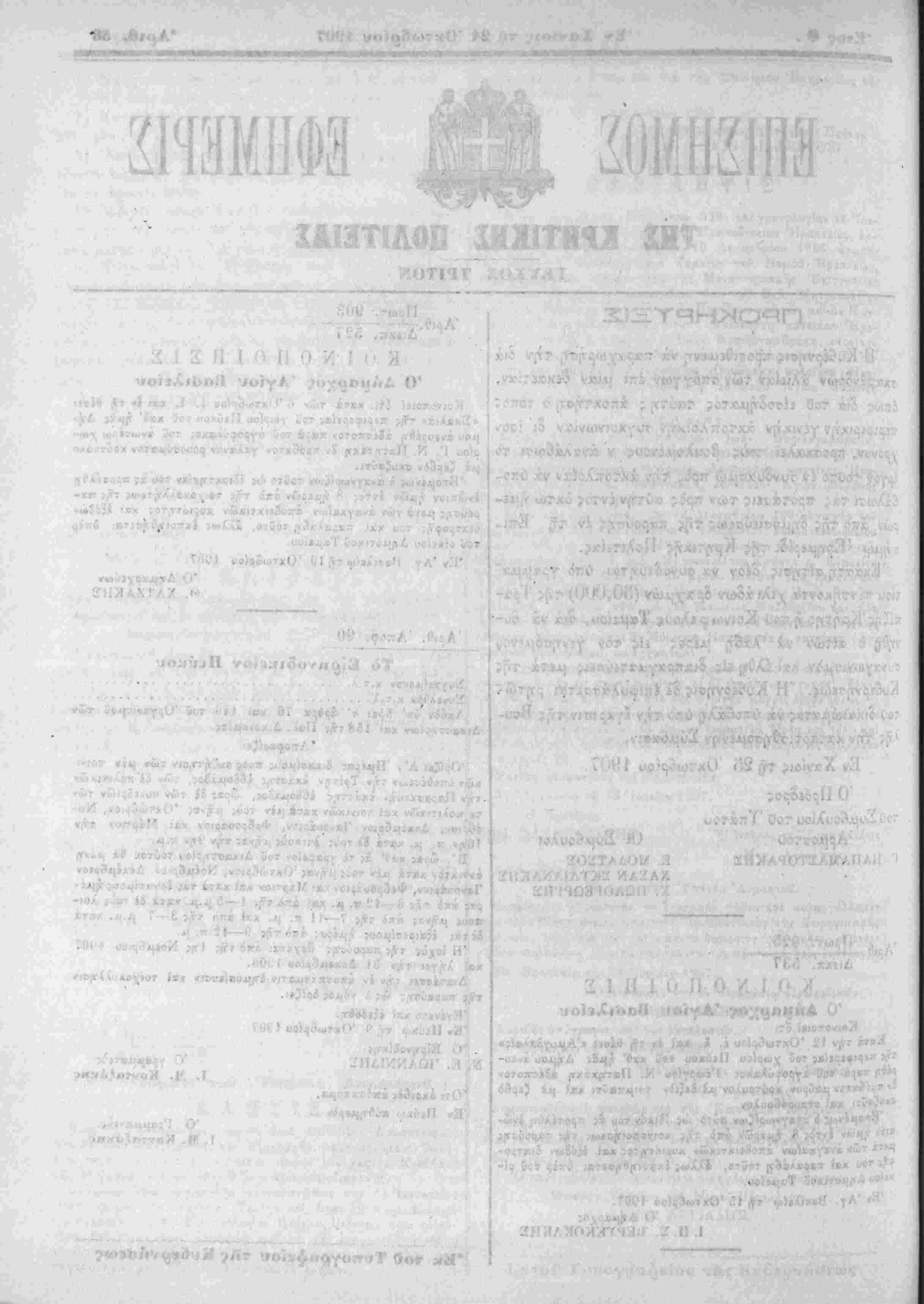 "Εν Χανίοις ττ> 24 Όκτωβρίον 1907