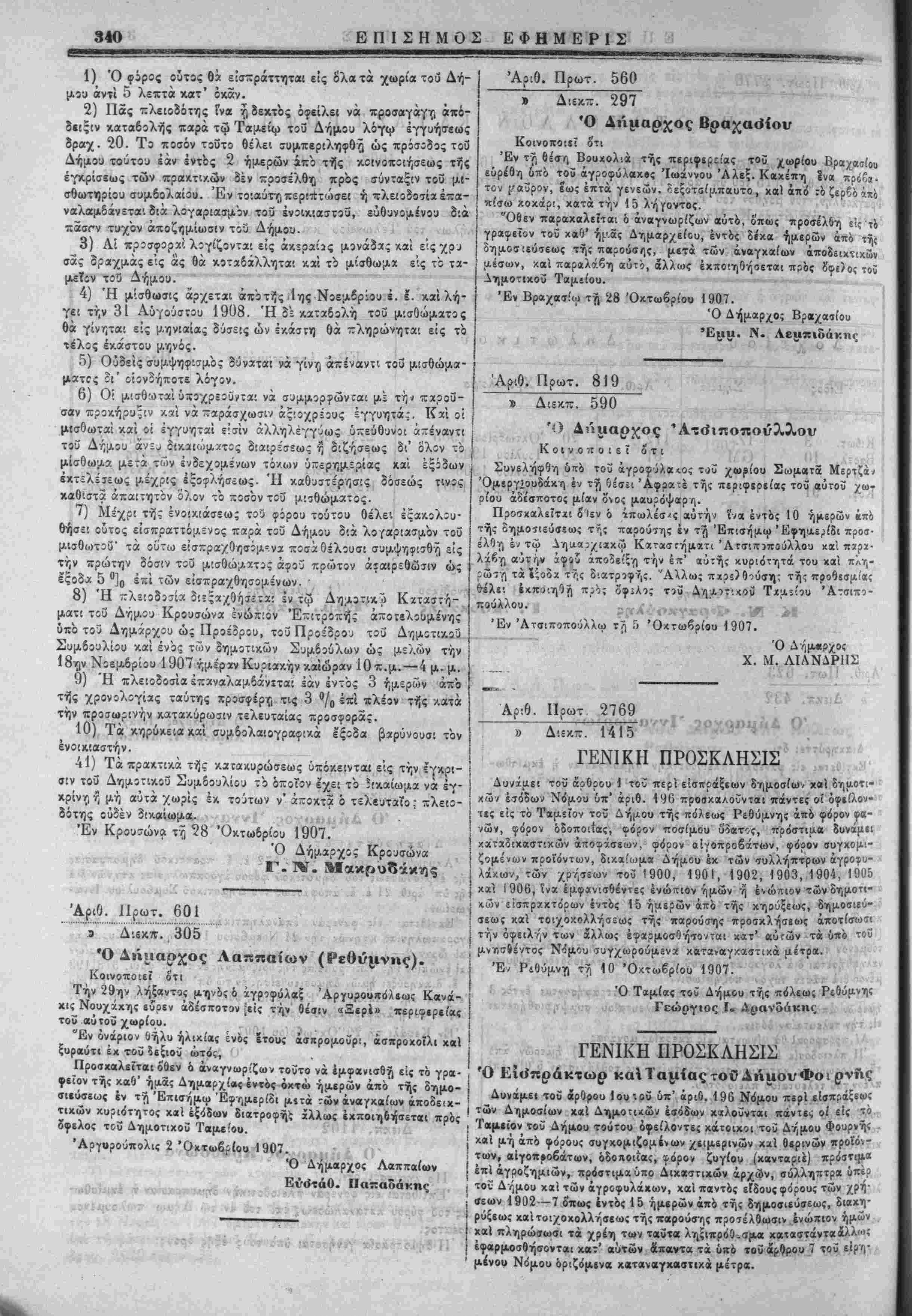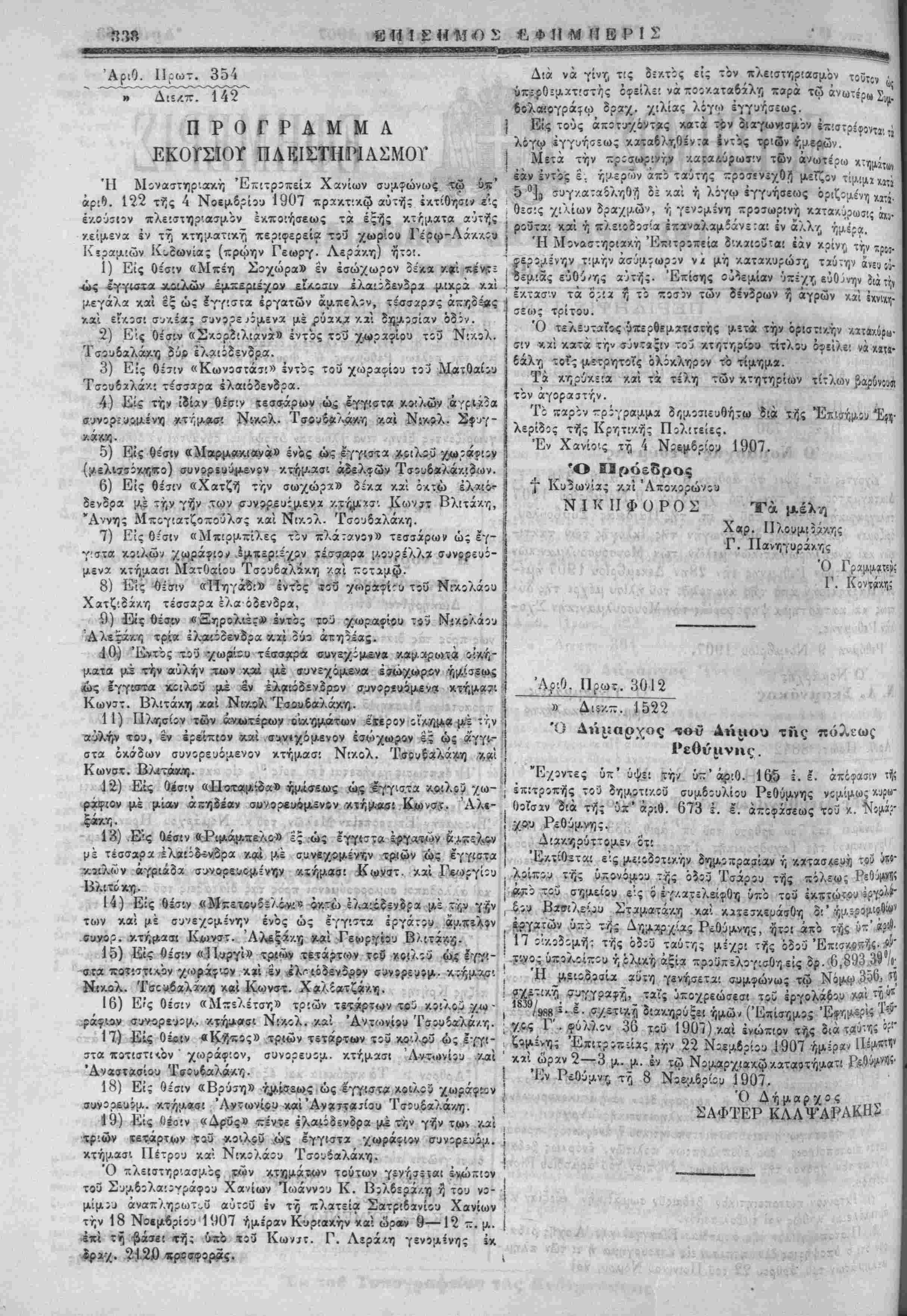 ΙΙροκήρυξις Μοναστ. επιτροπείας Χανίων. 5) Προχήβυςις Δημάρχου