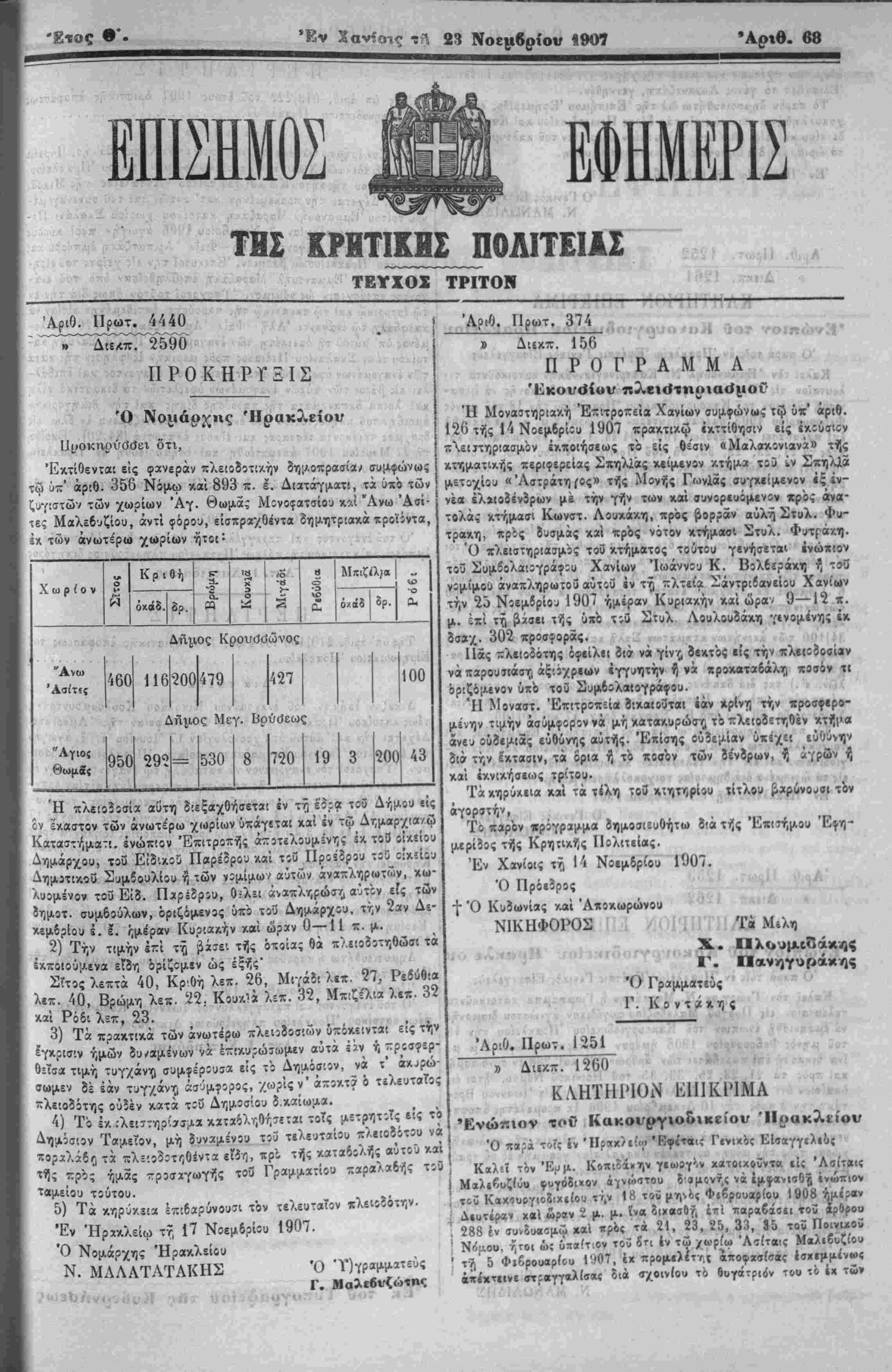 Έν Ηρακλείω τή 17 Νοεμβριού 1907.