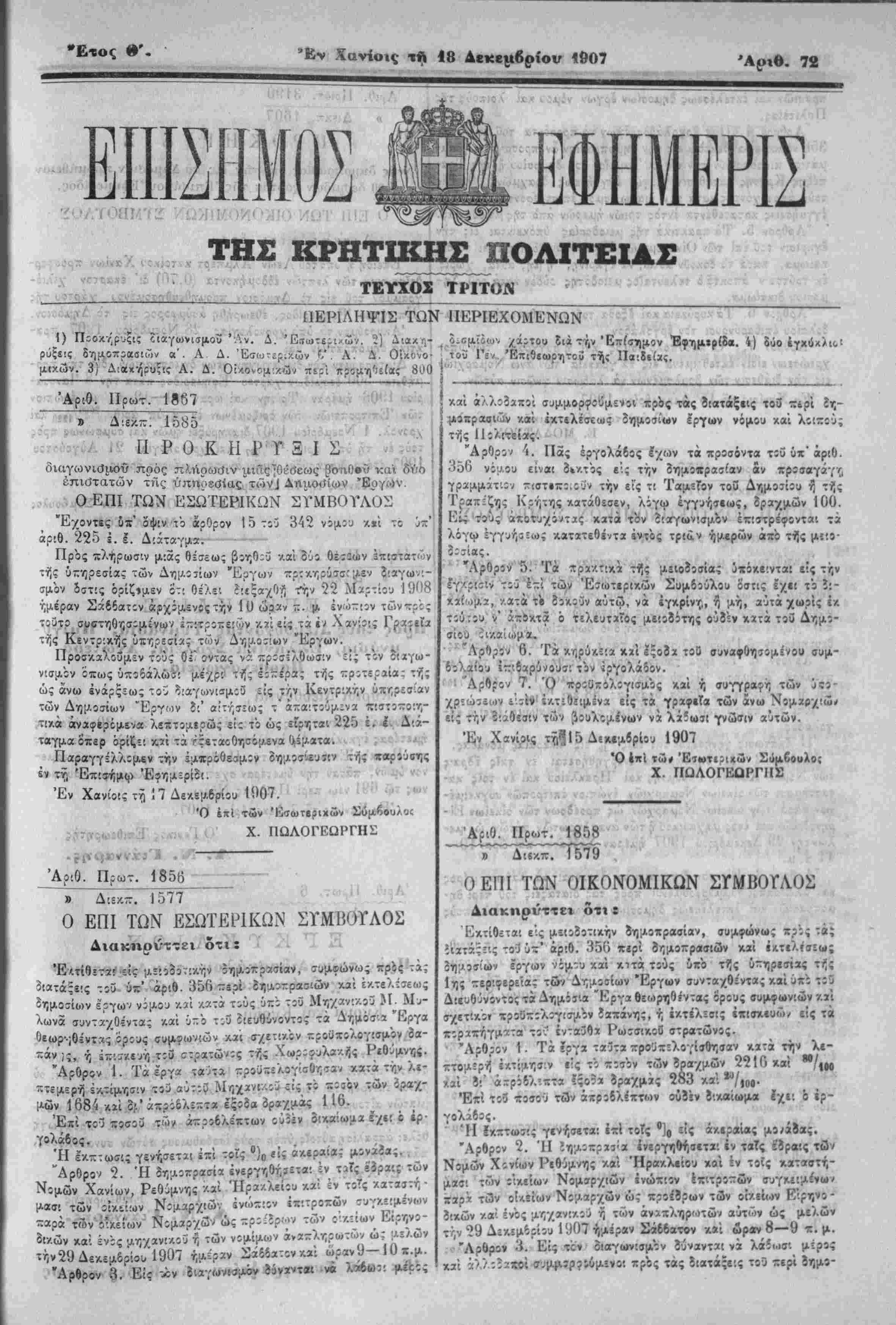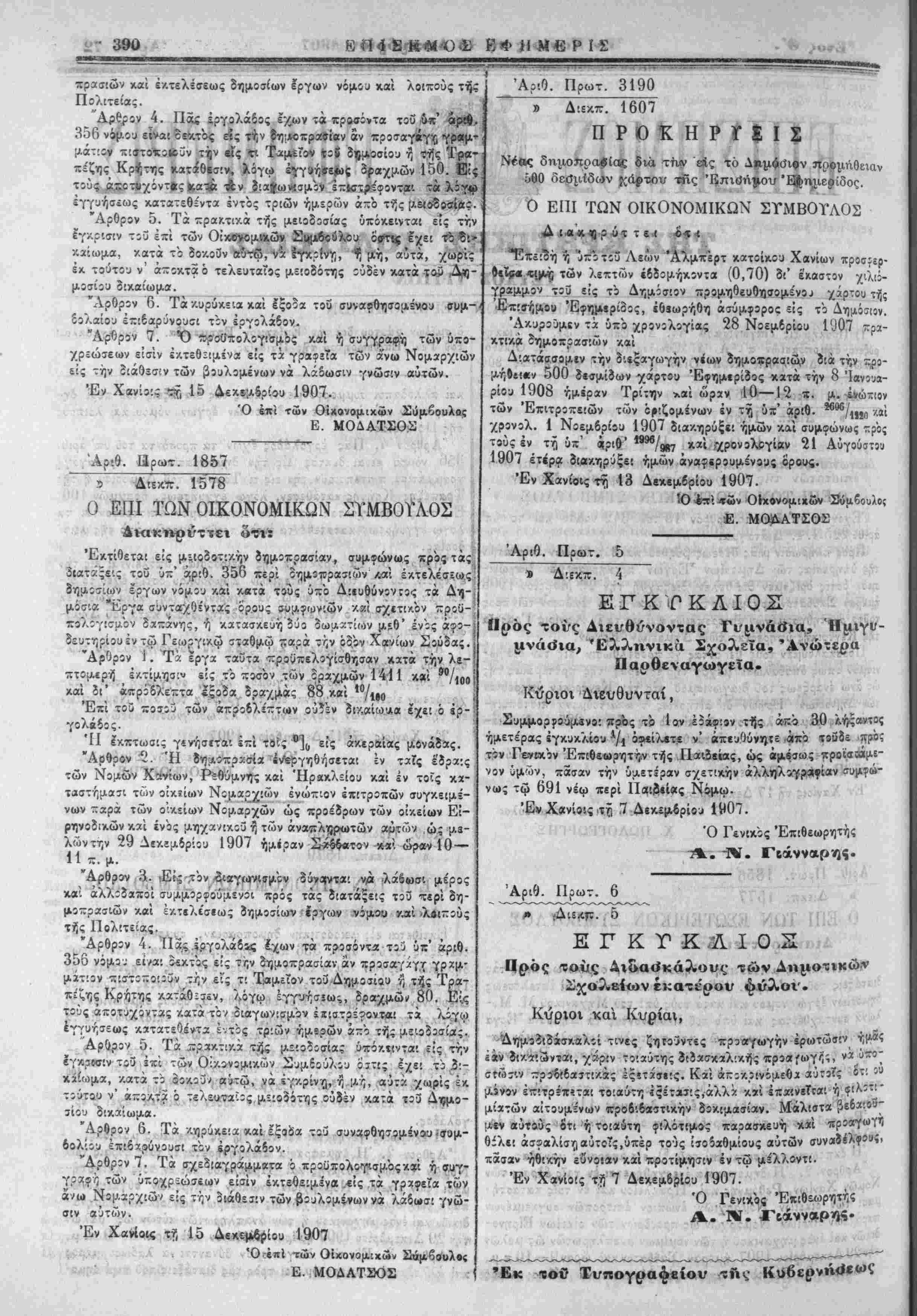 'Εν Χανίοις τ^ ,7 Δεκϊμ.6ρίο^ 1907.
