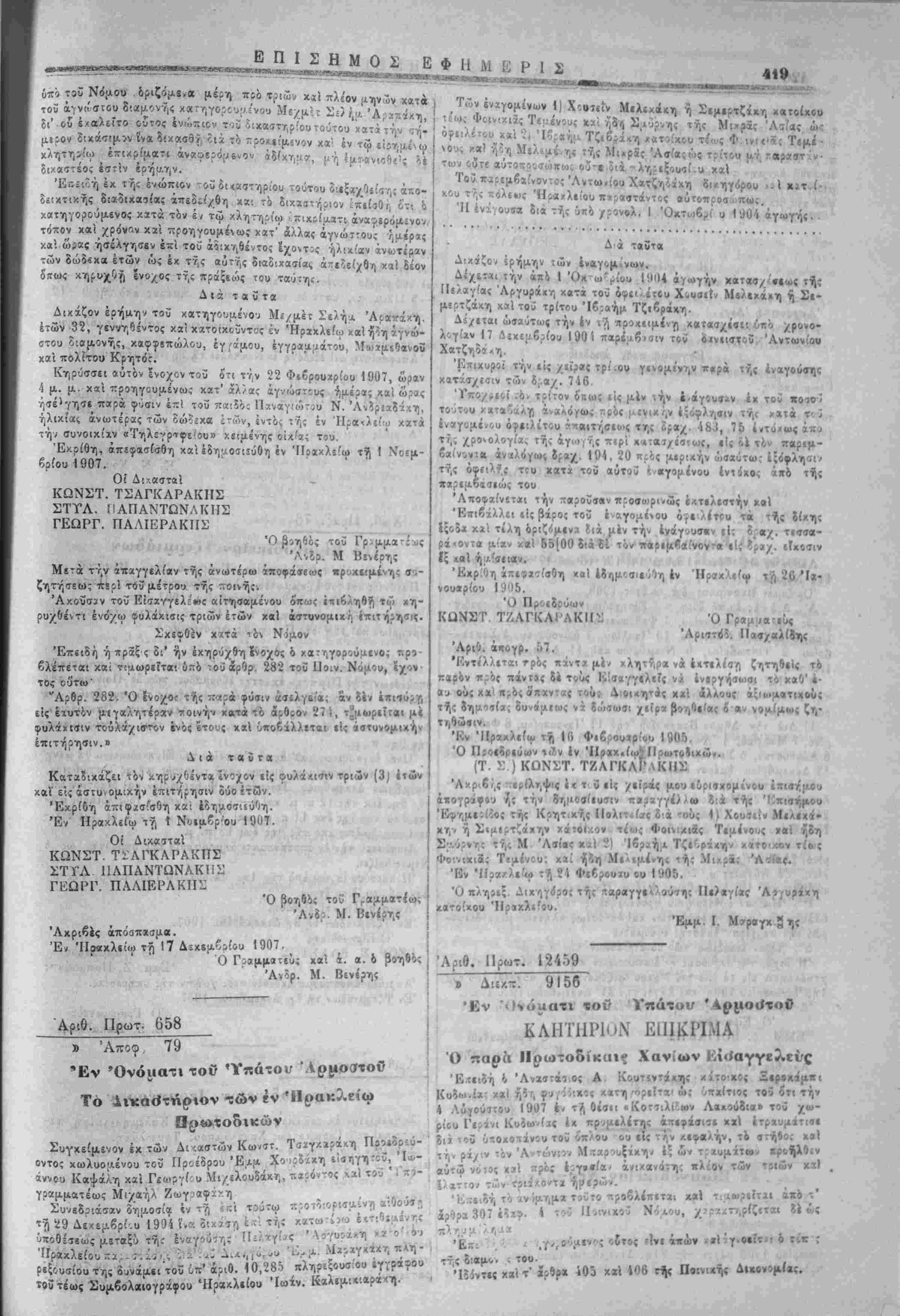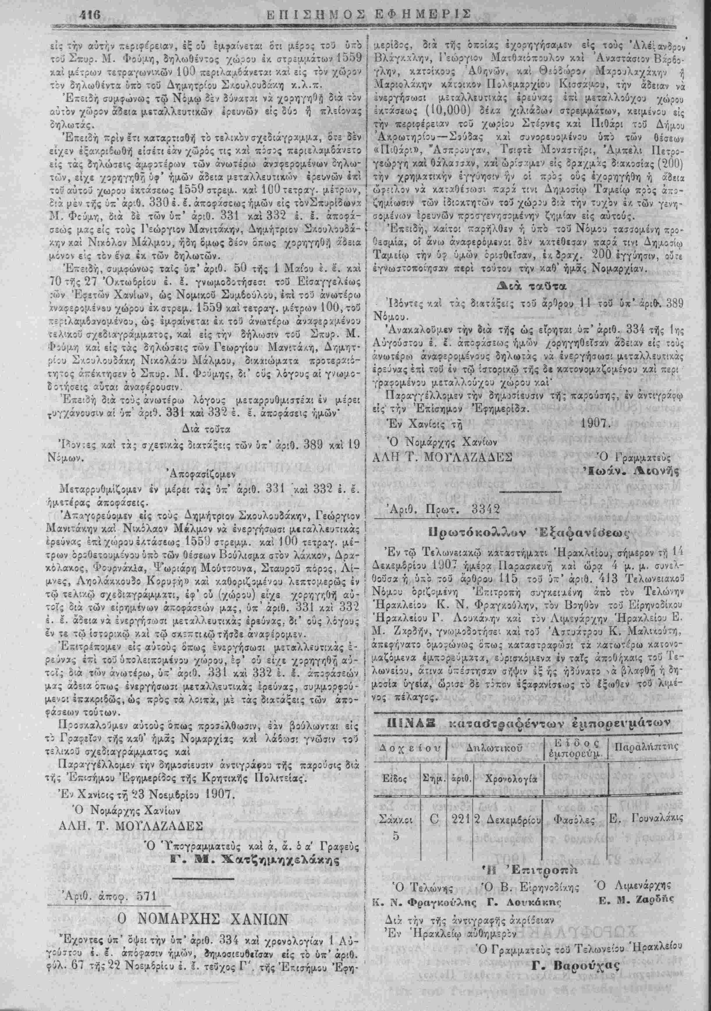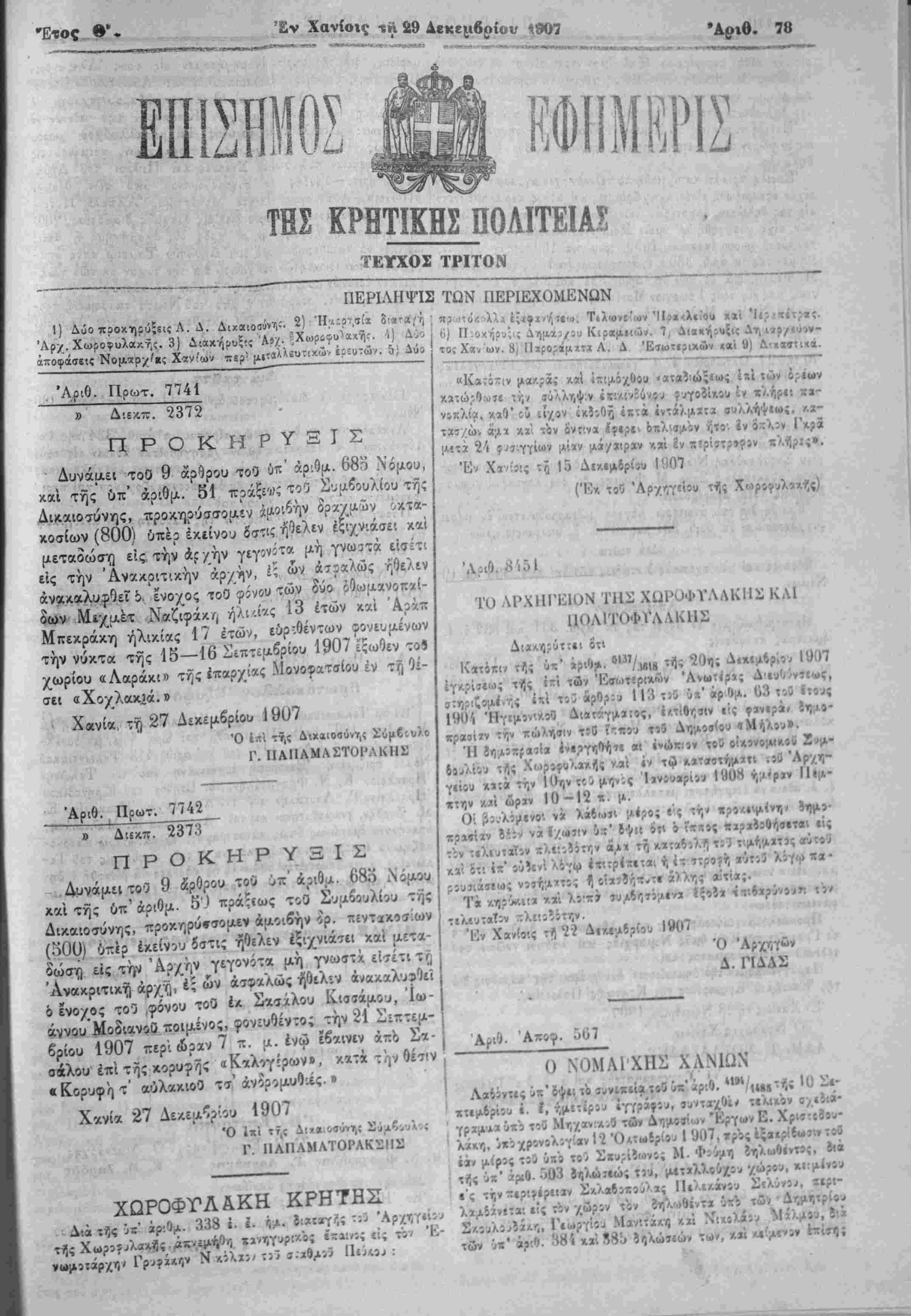 ίο<ς τί) 22 Δβχεμβρίου 1907 Ό Άρχτ,γών Λ. ΠΔΑΣ Ο ΝΟΜΑΙ'ΧΗΣ ΧΑΝΙΩΝ • > .... ,