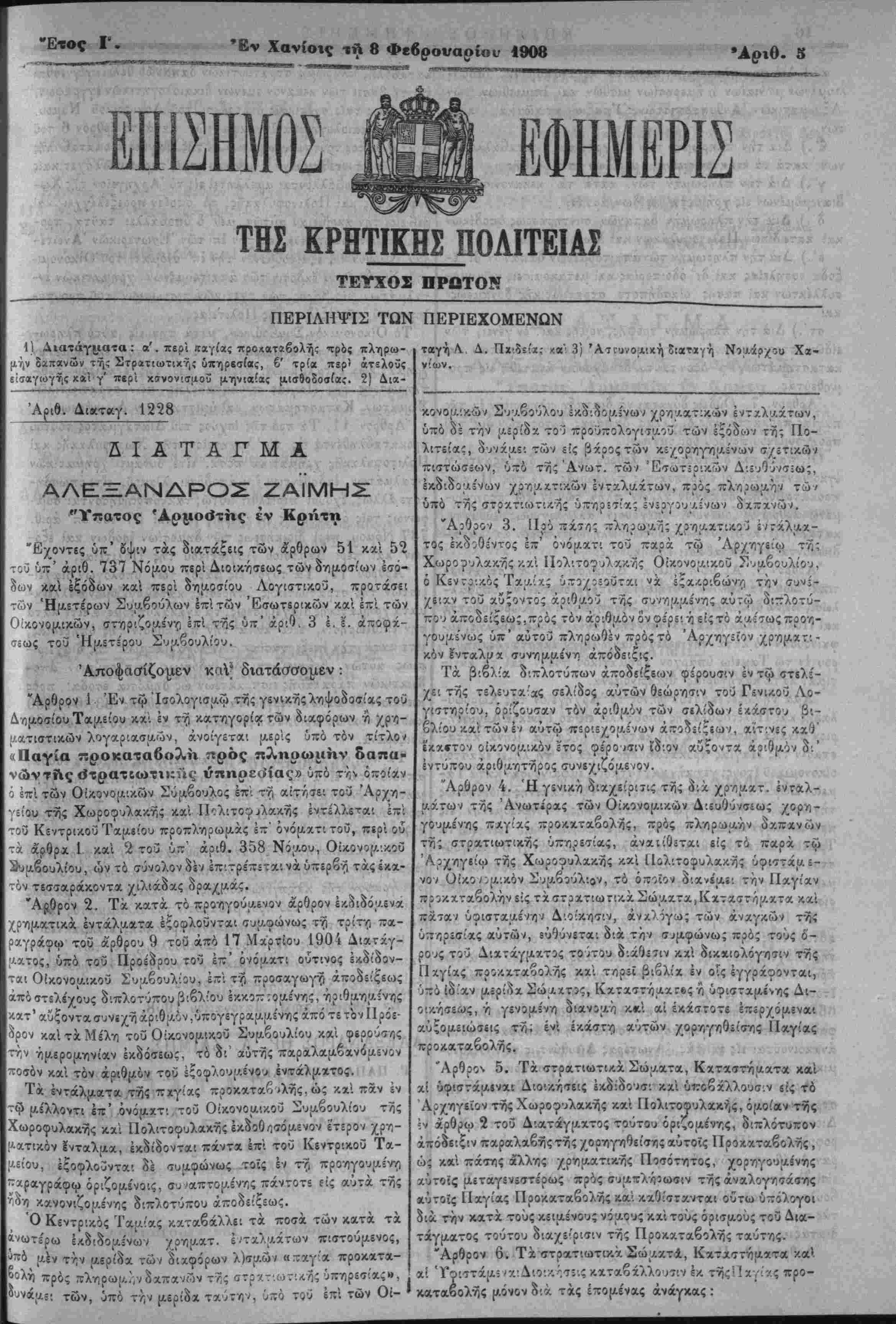 Έν Χανίοις τΛ 8 Φεβρουάριον 1908