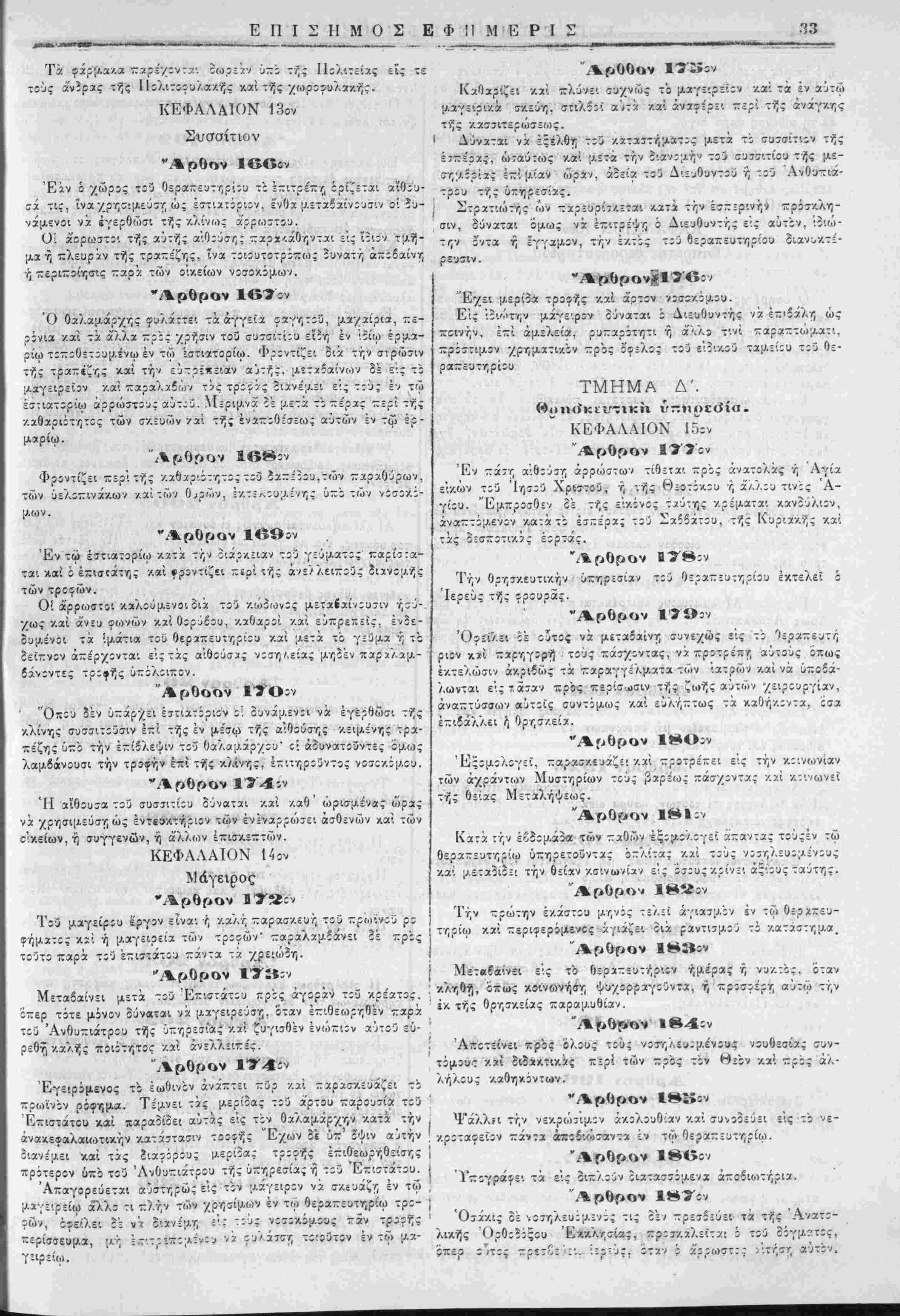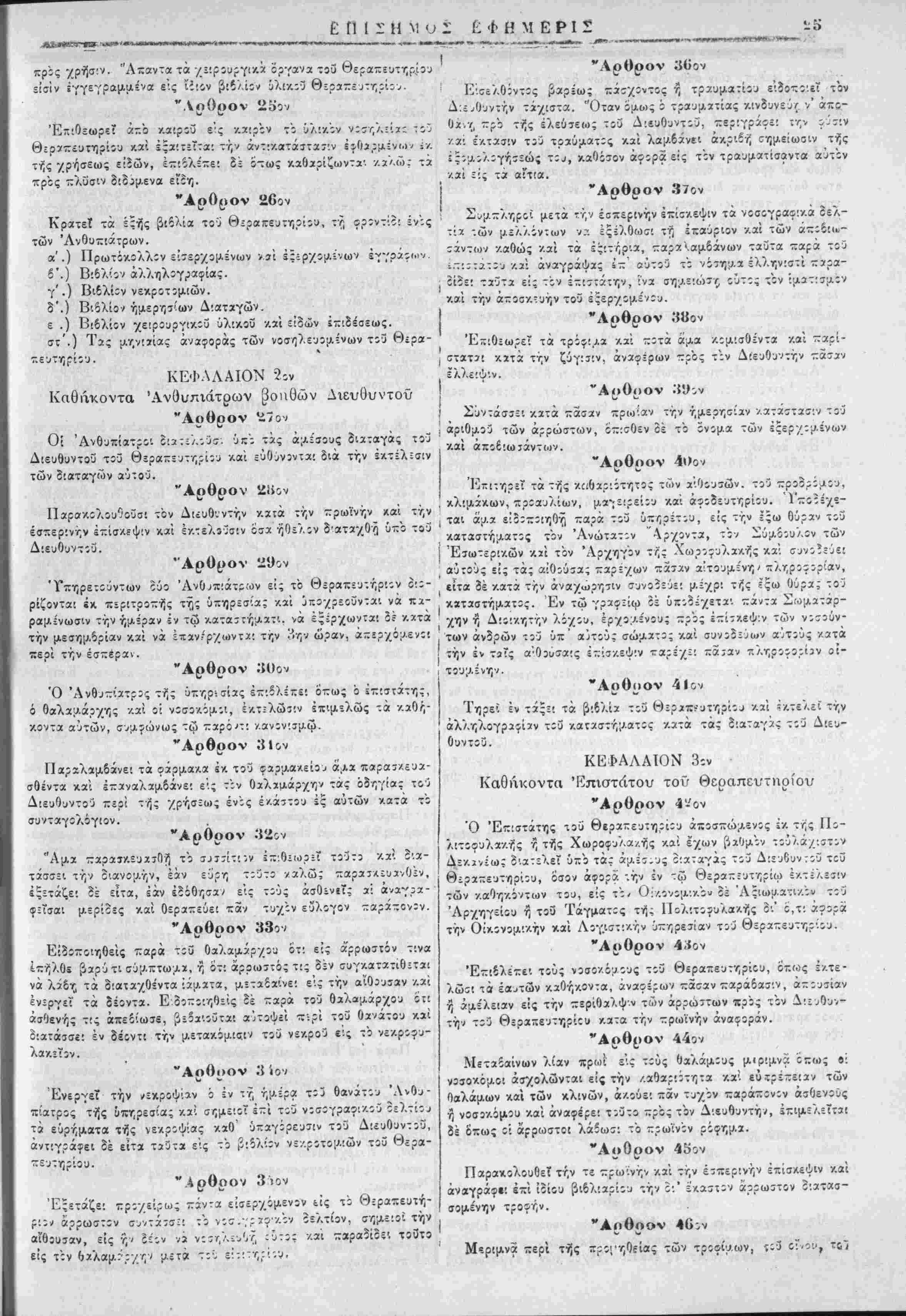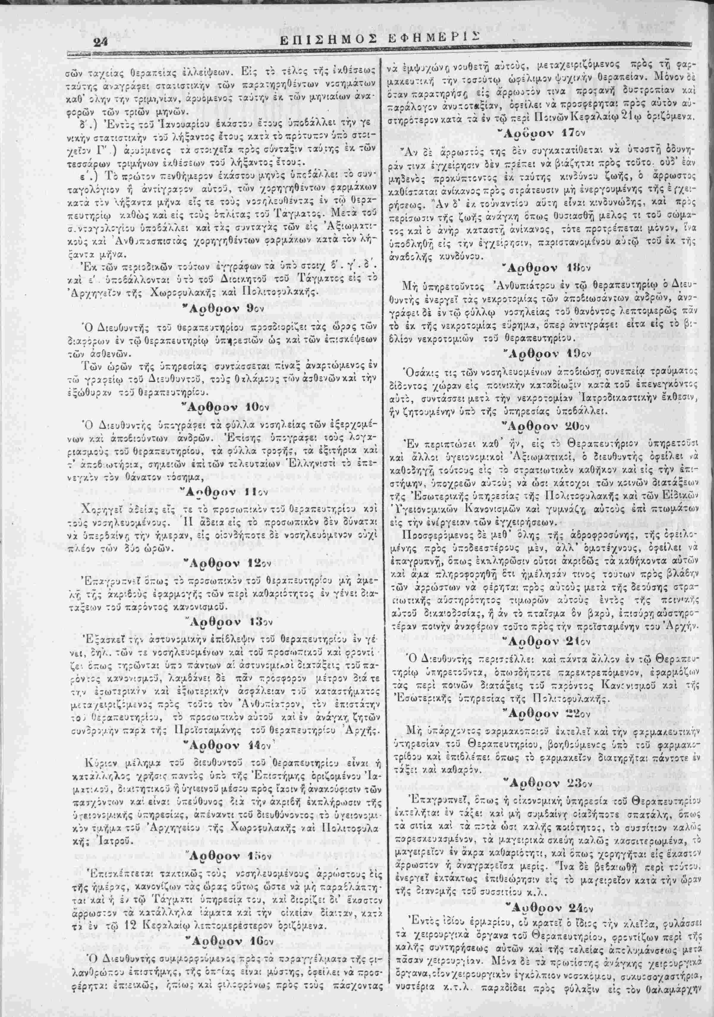 Ό Διευθυντής τοΰ θεραπευτηρίου προι'σταται «πάσης τής έν
