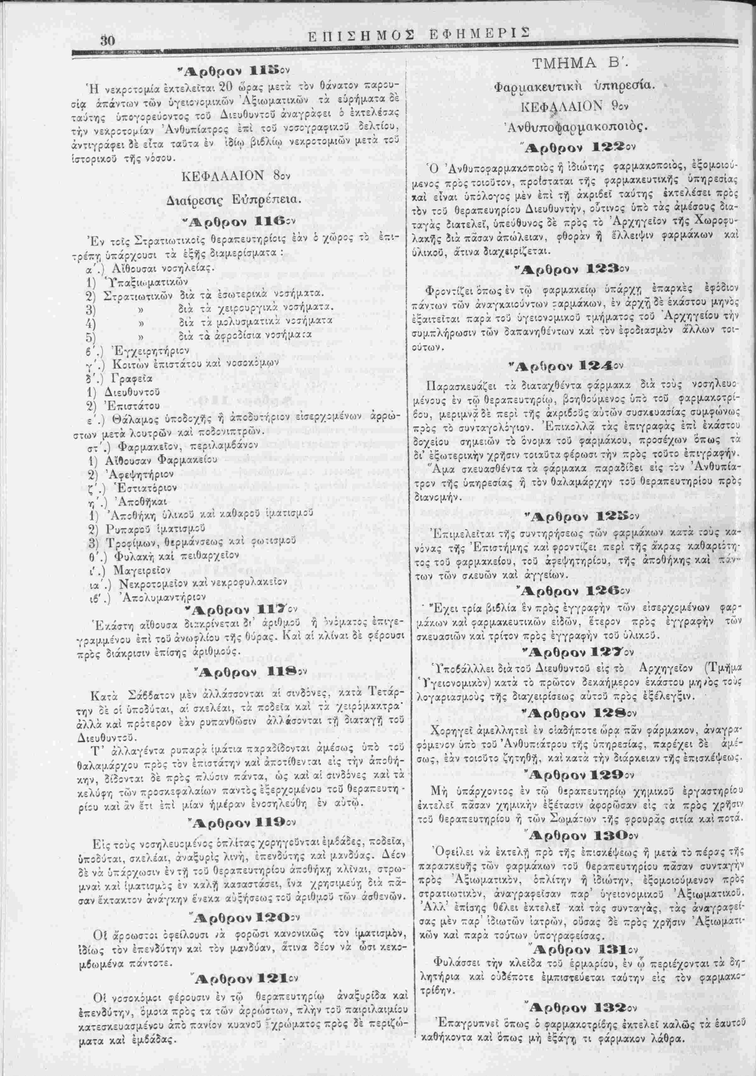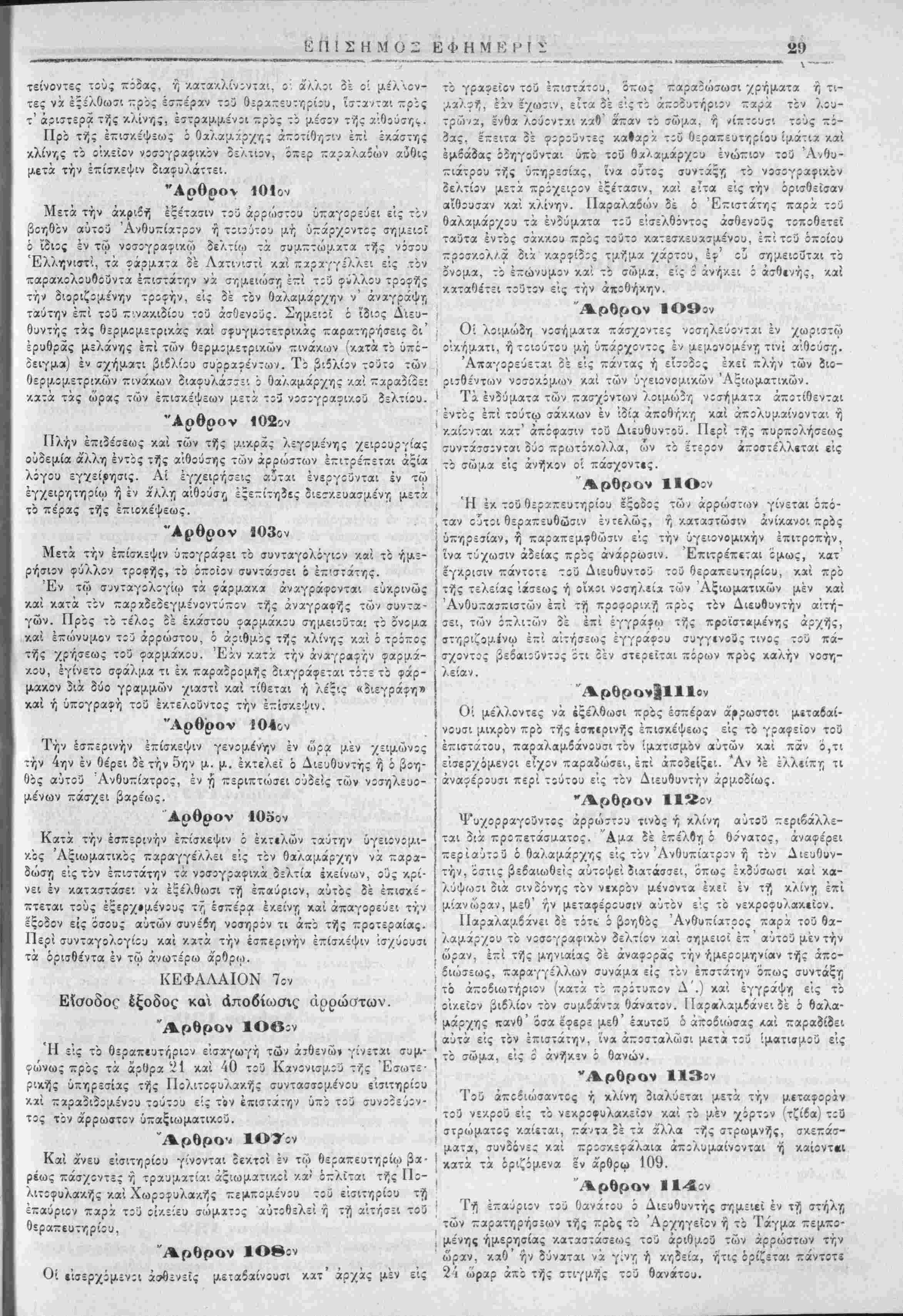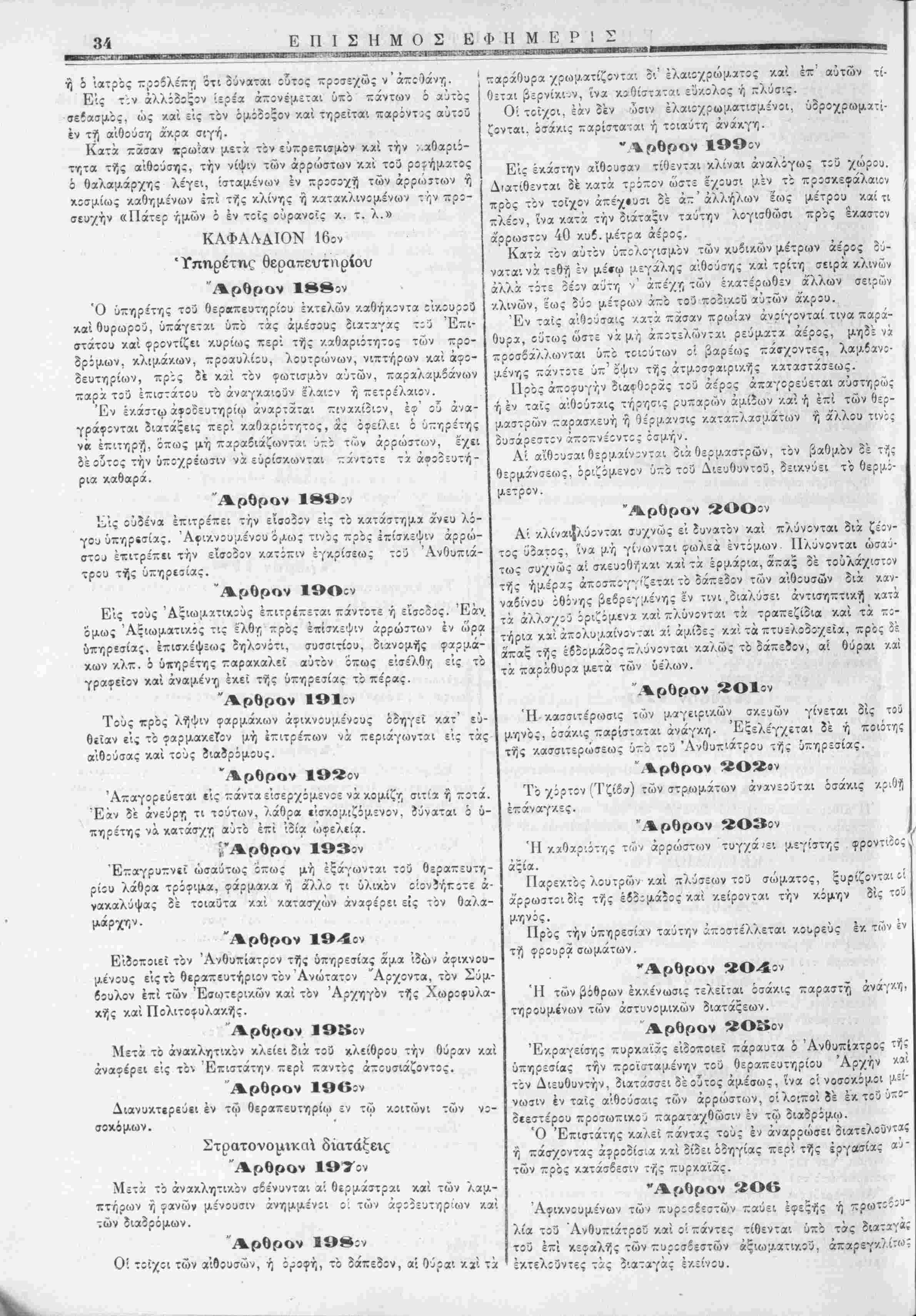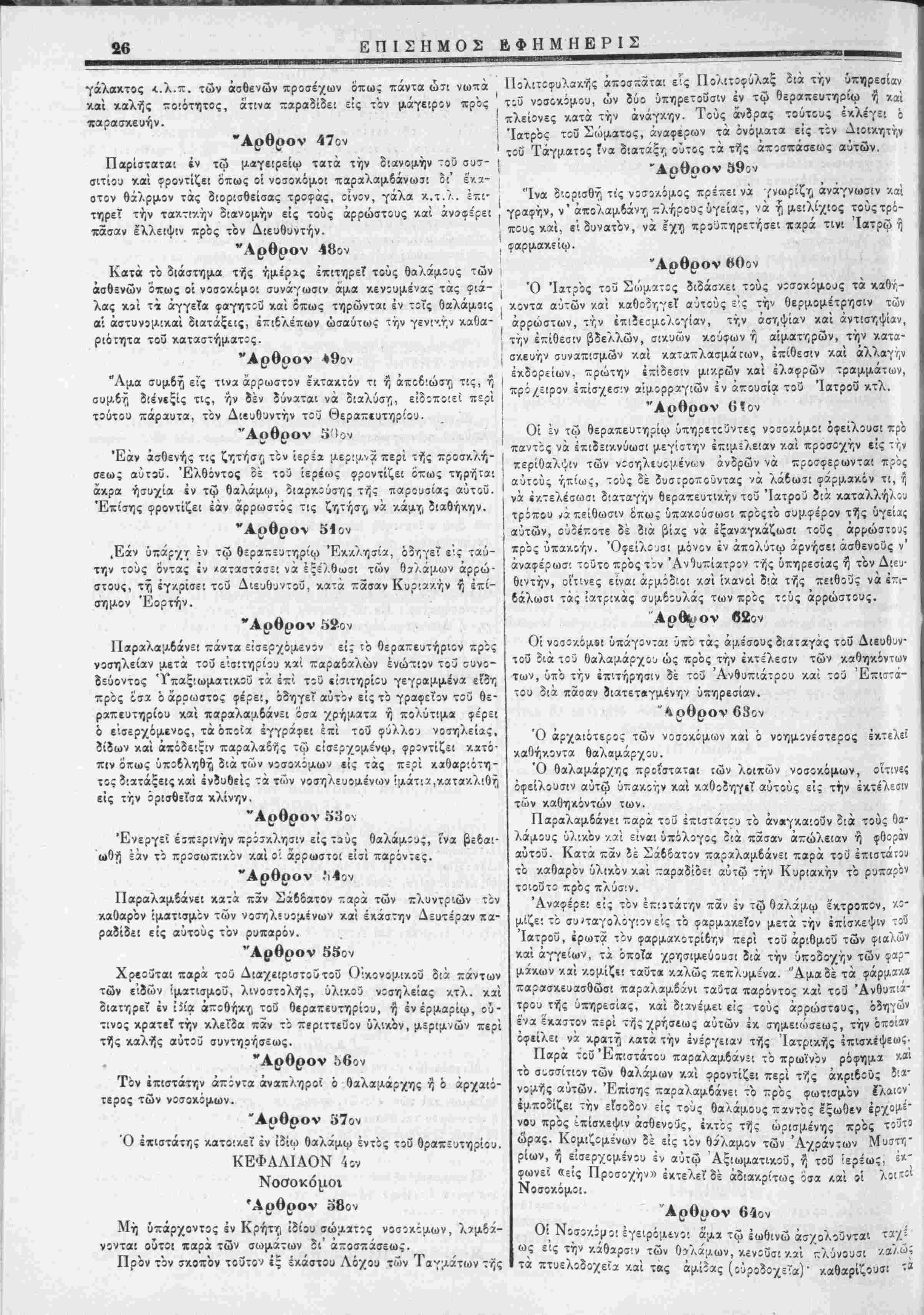 Τα θεραπευτήρια διατελοΰσιν υπό τάς άμέσους διαταγάς τοΰ