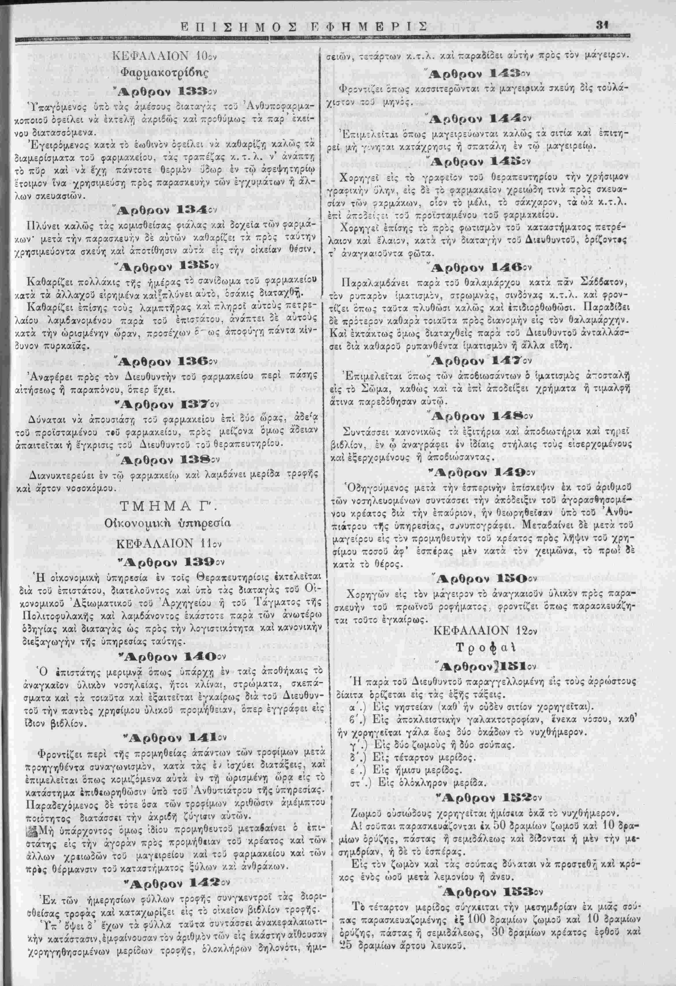 θεραπευτηρίου καί ή φαρμακευτική διά τοΰ φαρμακοποιοΰ καί των