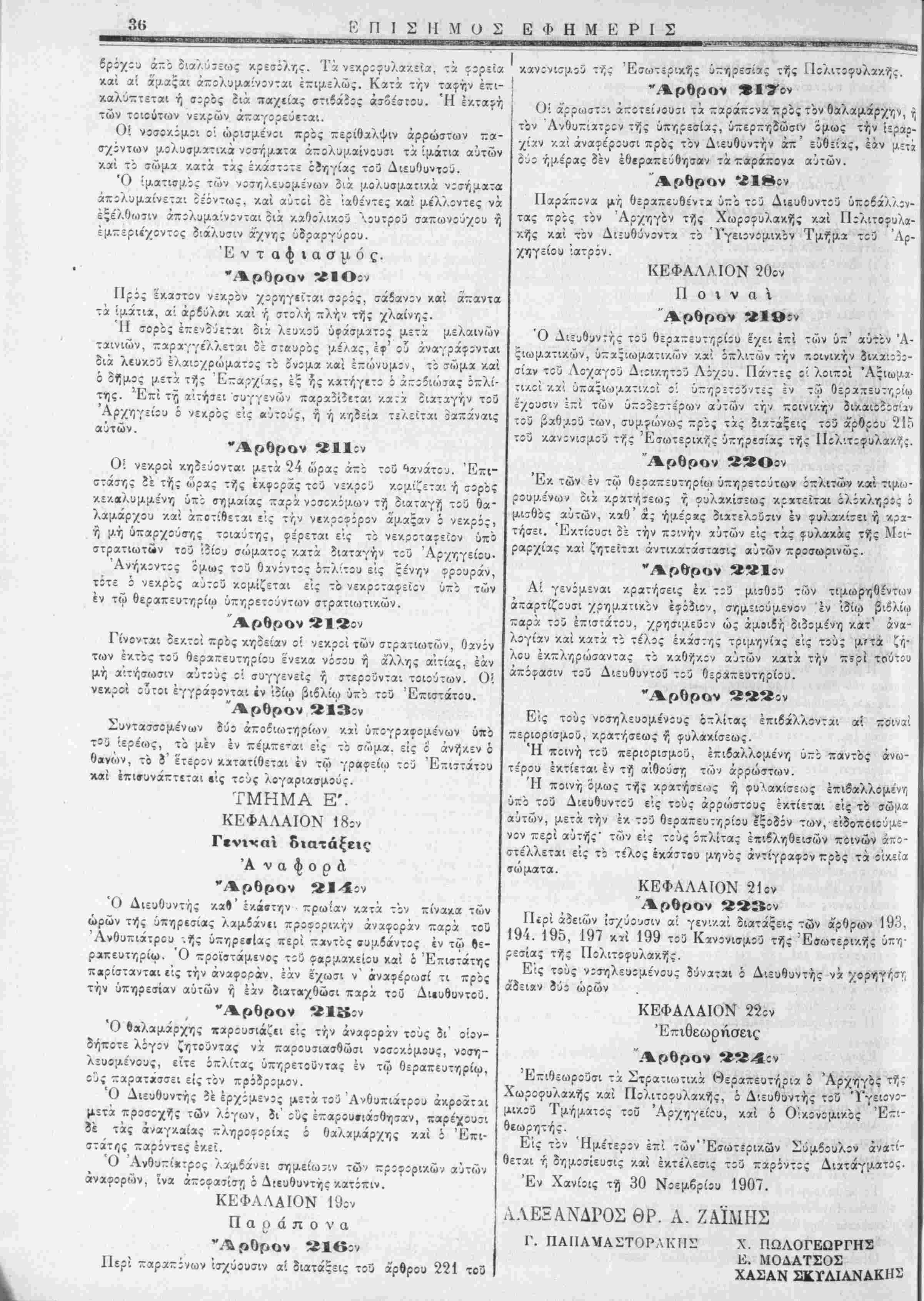 Καί οί μέν Ίατρ'.λή καί Άστυνομ!/.ή ύπηρεσία ίνεργεΐται