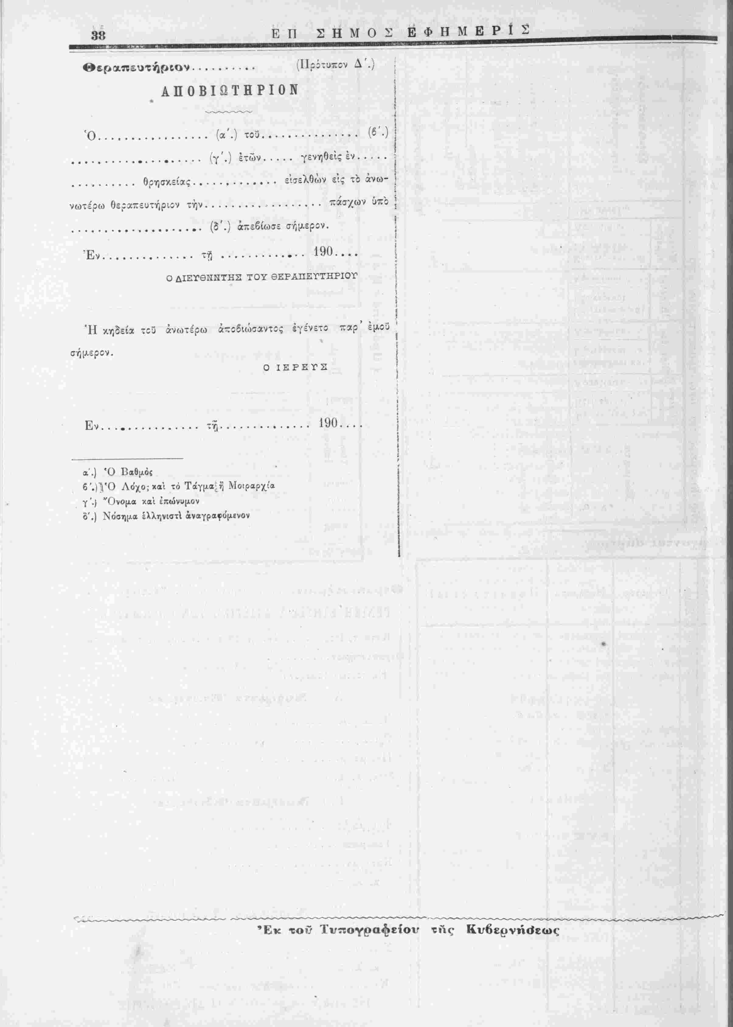 Θεραπευτήριον......... (Πρότυπον Δ'.)