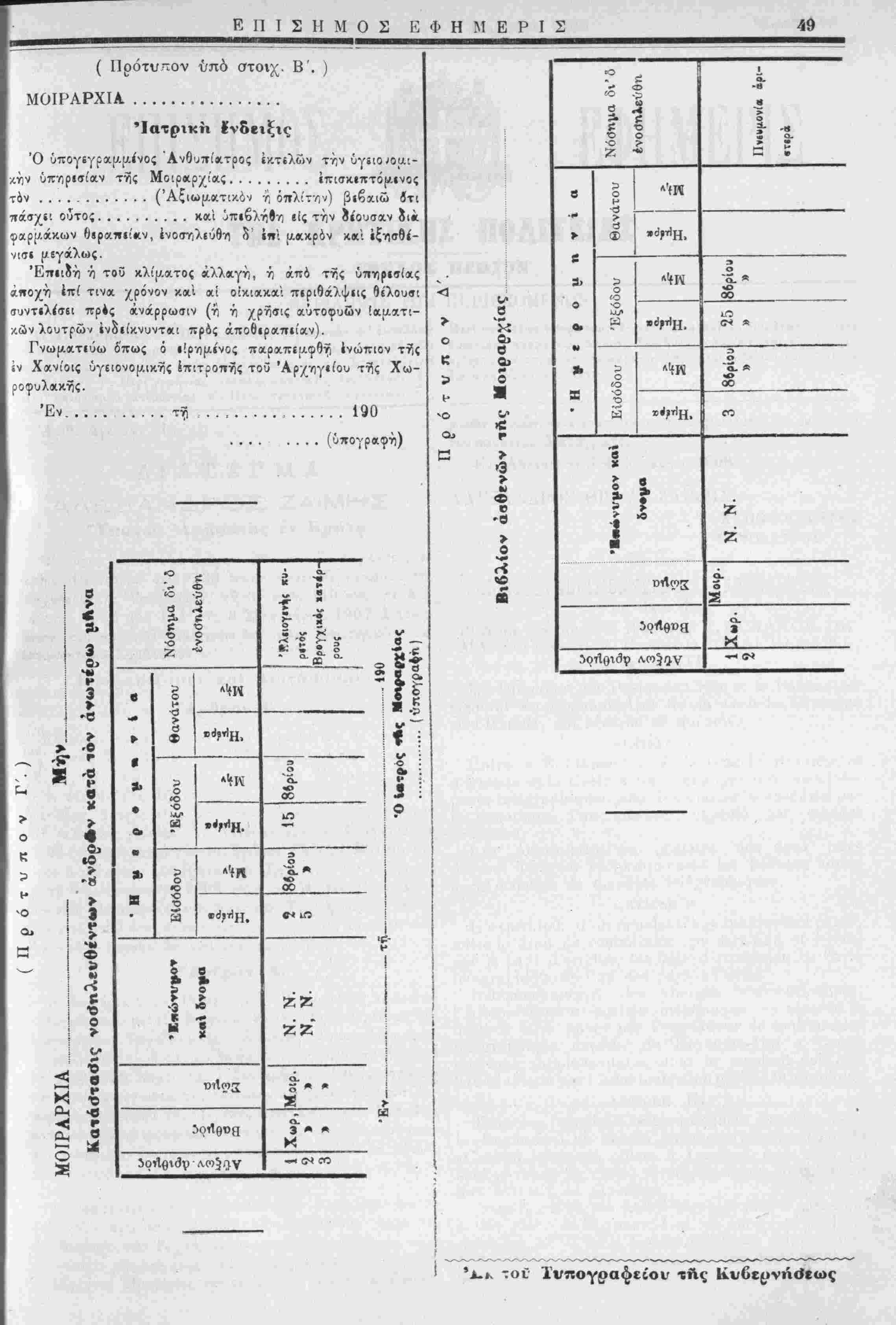 Χωροφυλακή; διιυθύνοντα το ύγειονοι/.ικόν τμήμα ιατρόν.