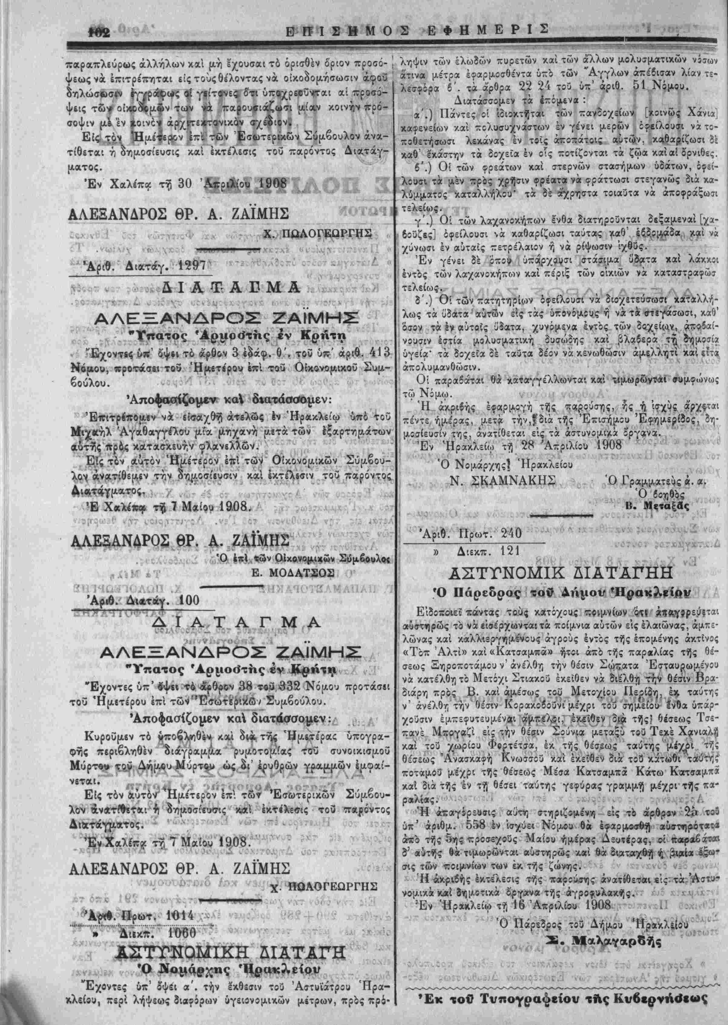Έν Ηρακλείω τή 16 Απριλίου 1908