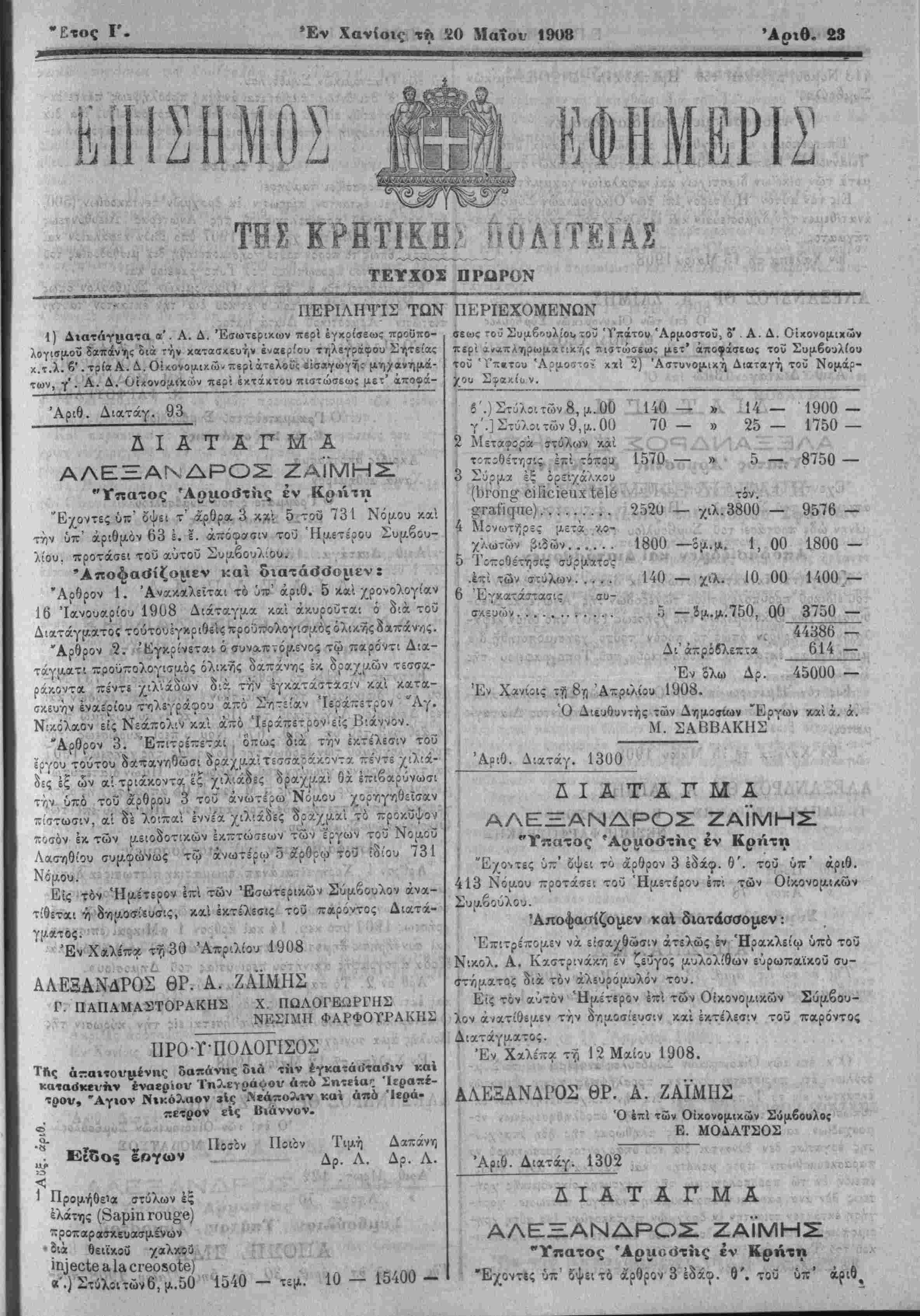 Έν Χανίοις τί) 20 Μαΐον 1908