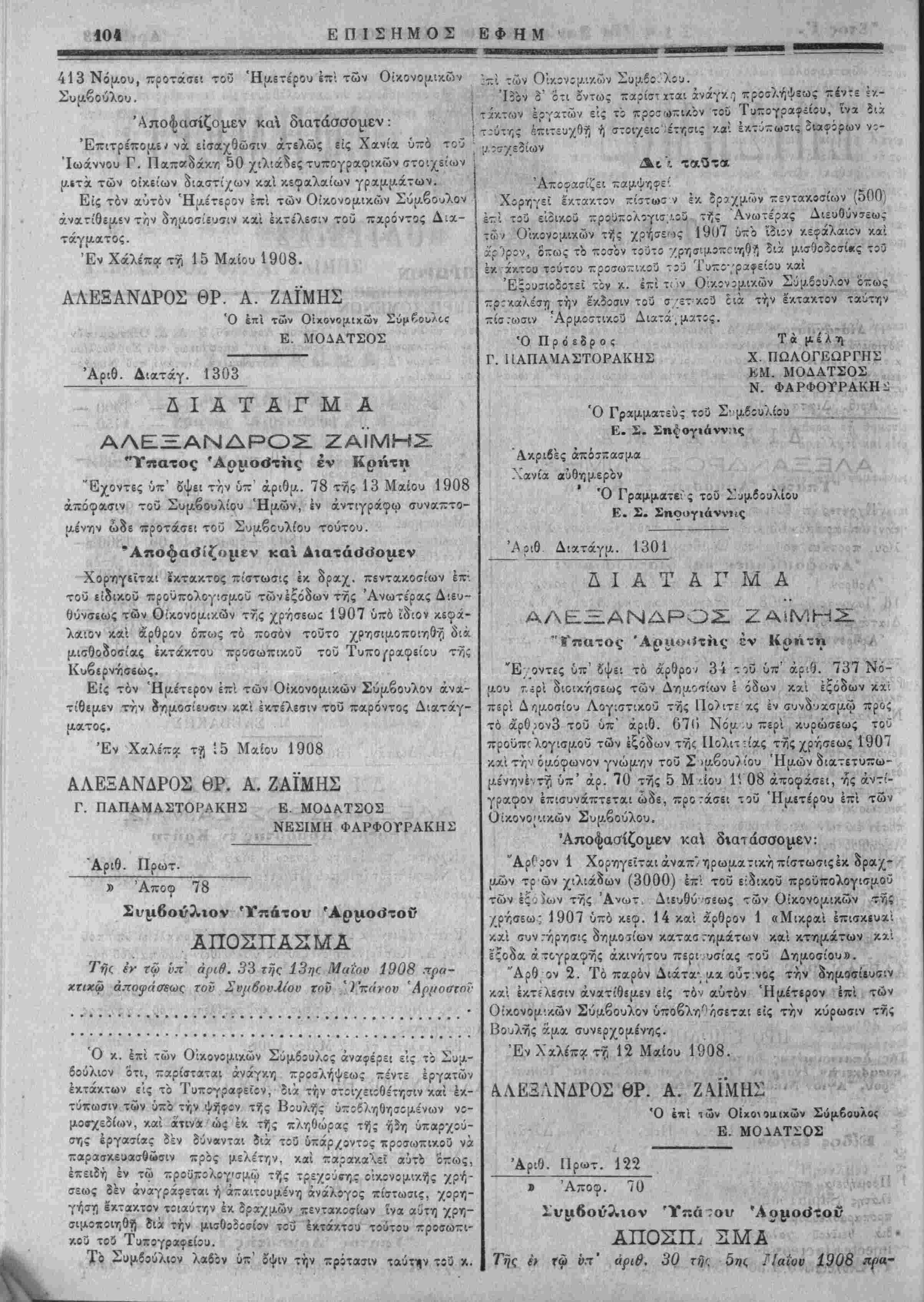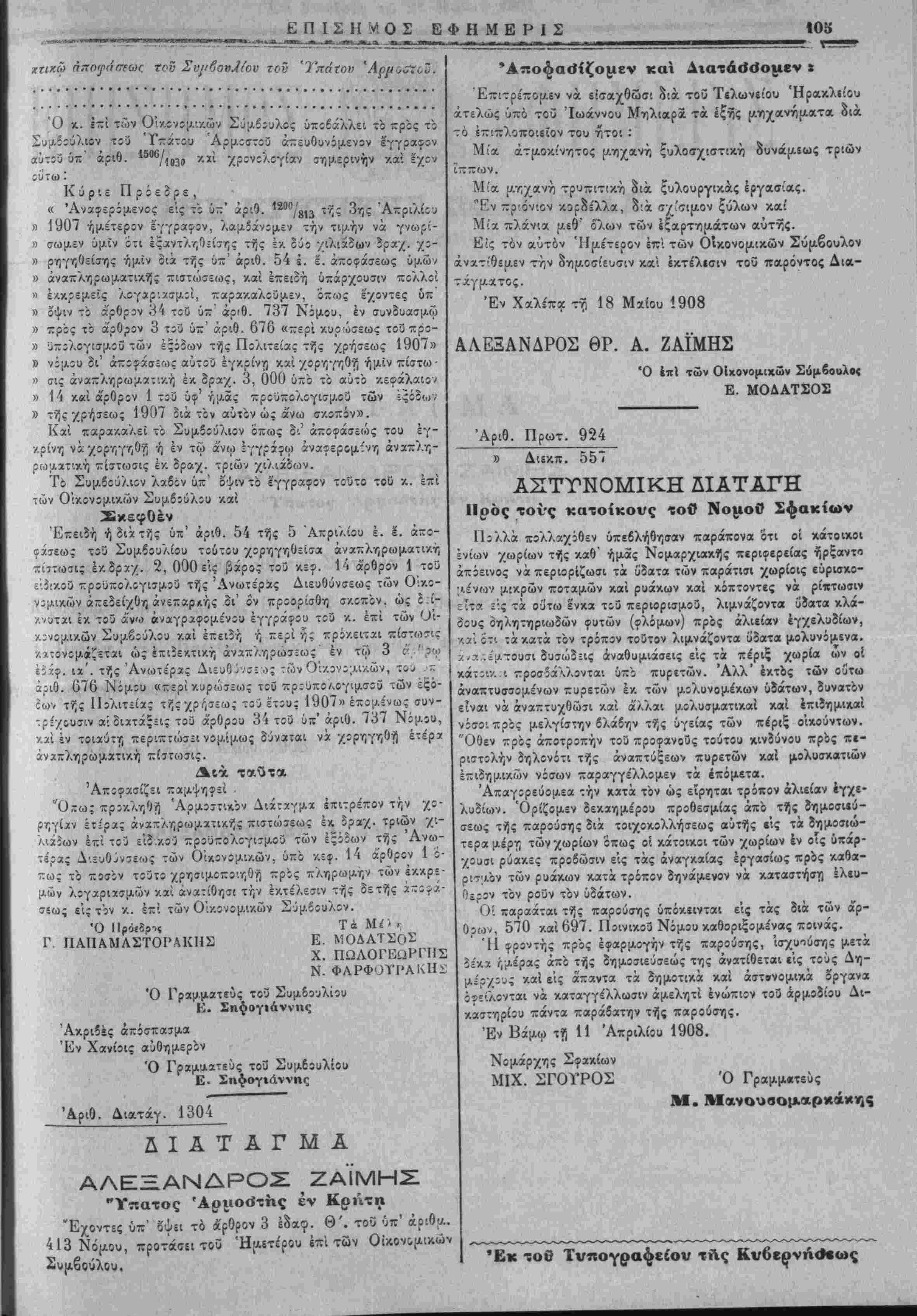 Έν Χανίοις τί) 8η Απριλίου 1908.
