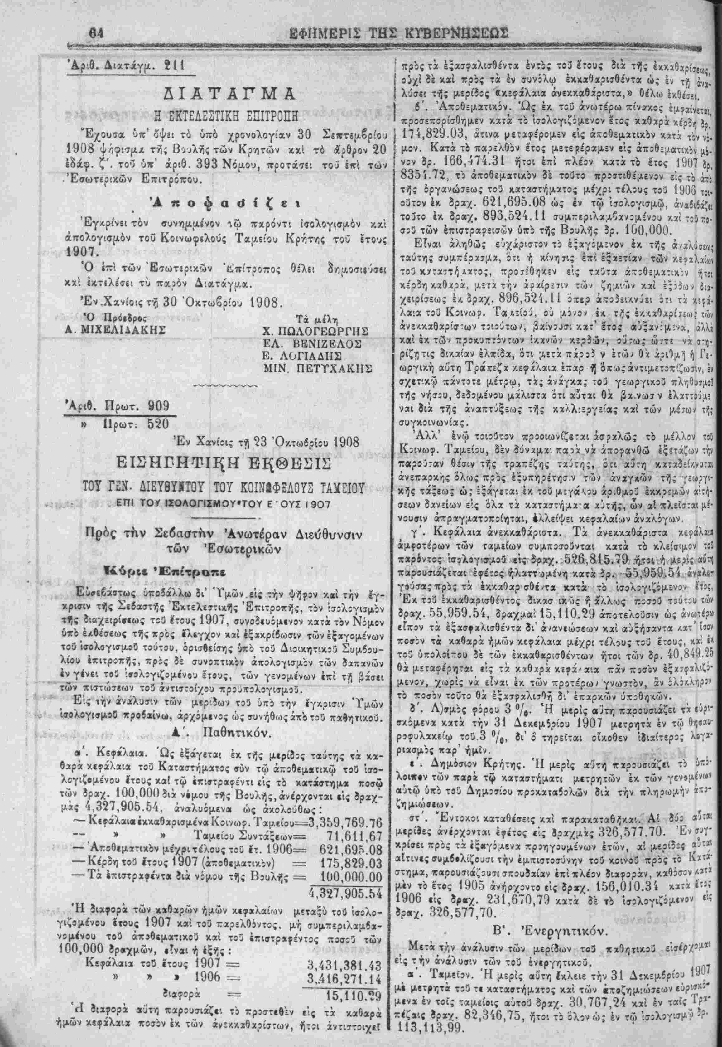 13 Ν ο οο, -τ^οτχι ι «3 έ-—ι τώ; Ο«νο>,ν7>ν Έ~ι- 1908 Ψ^φ ηχχ τ'η!; ΒοΛ^ς τών Κ^ητών κχ'ι το άγθρ. 7