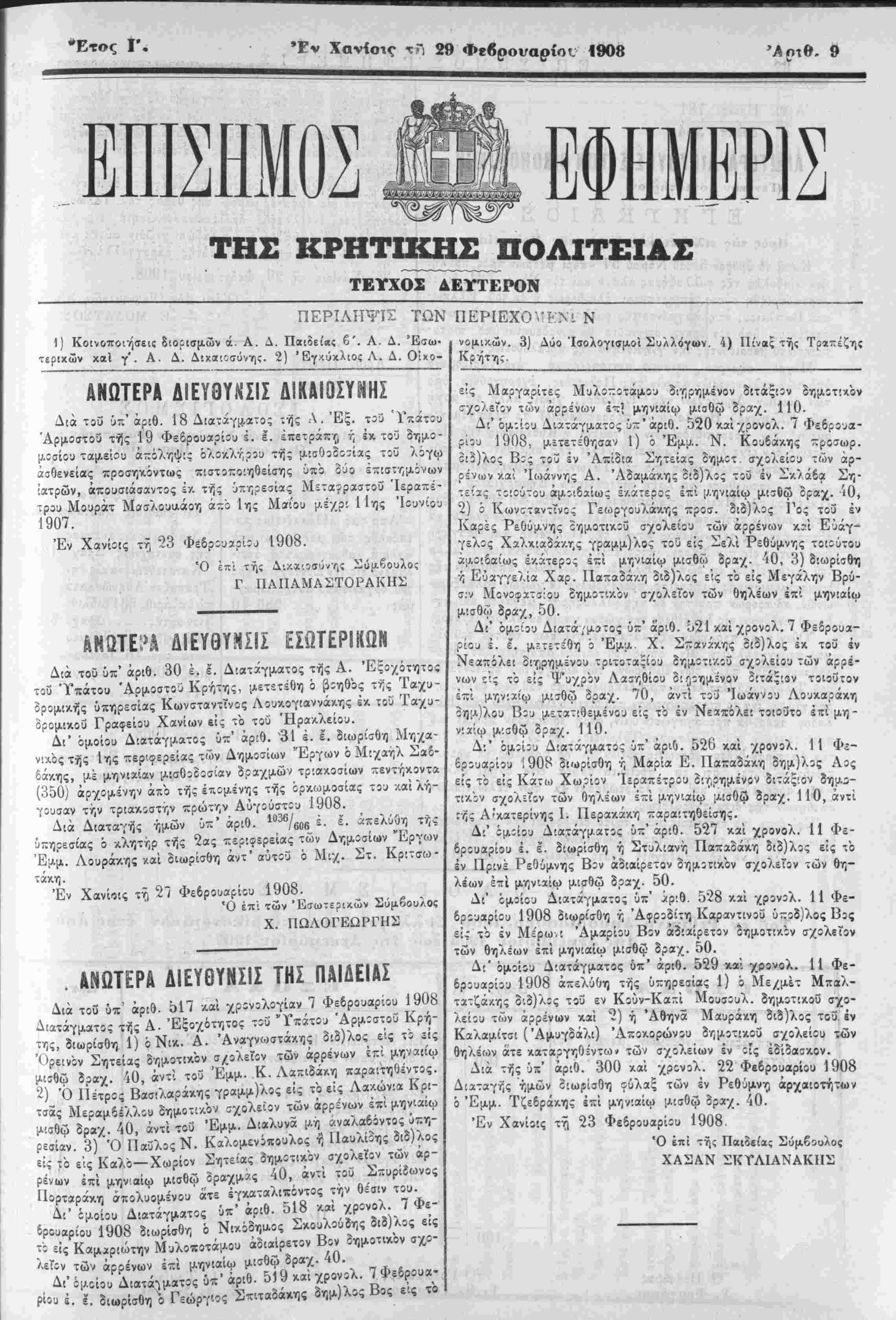 Έν Χανίοις 'ϊ 29 Φεόρουάρίου 1908.