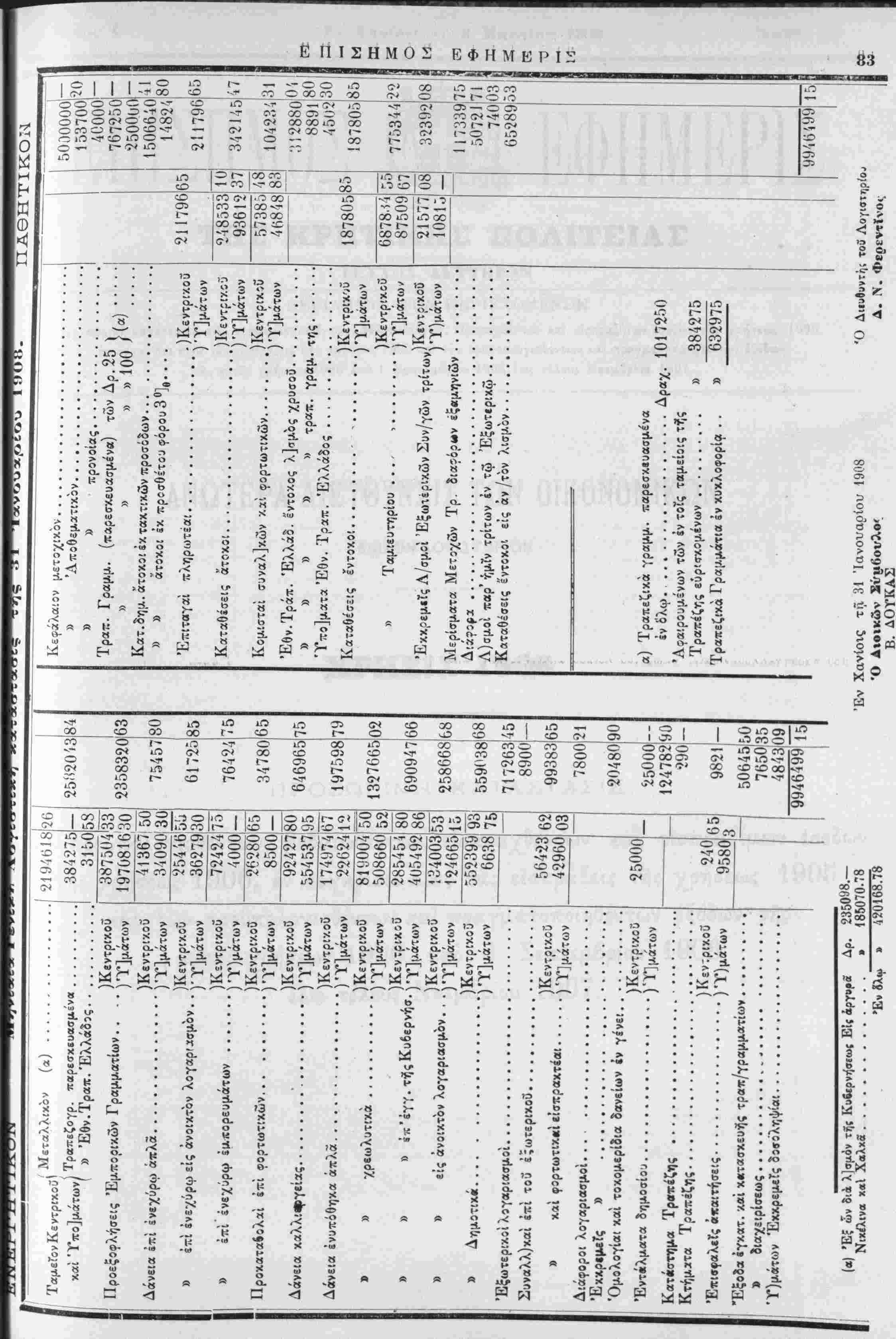 τοϋ α^:οϋ εί'ο:υς ίν. των έν Ελλάδι τελωνειακών άπβθηχων τής