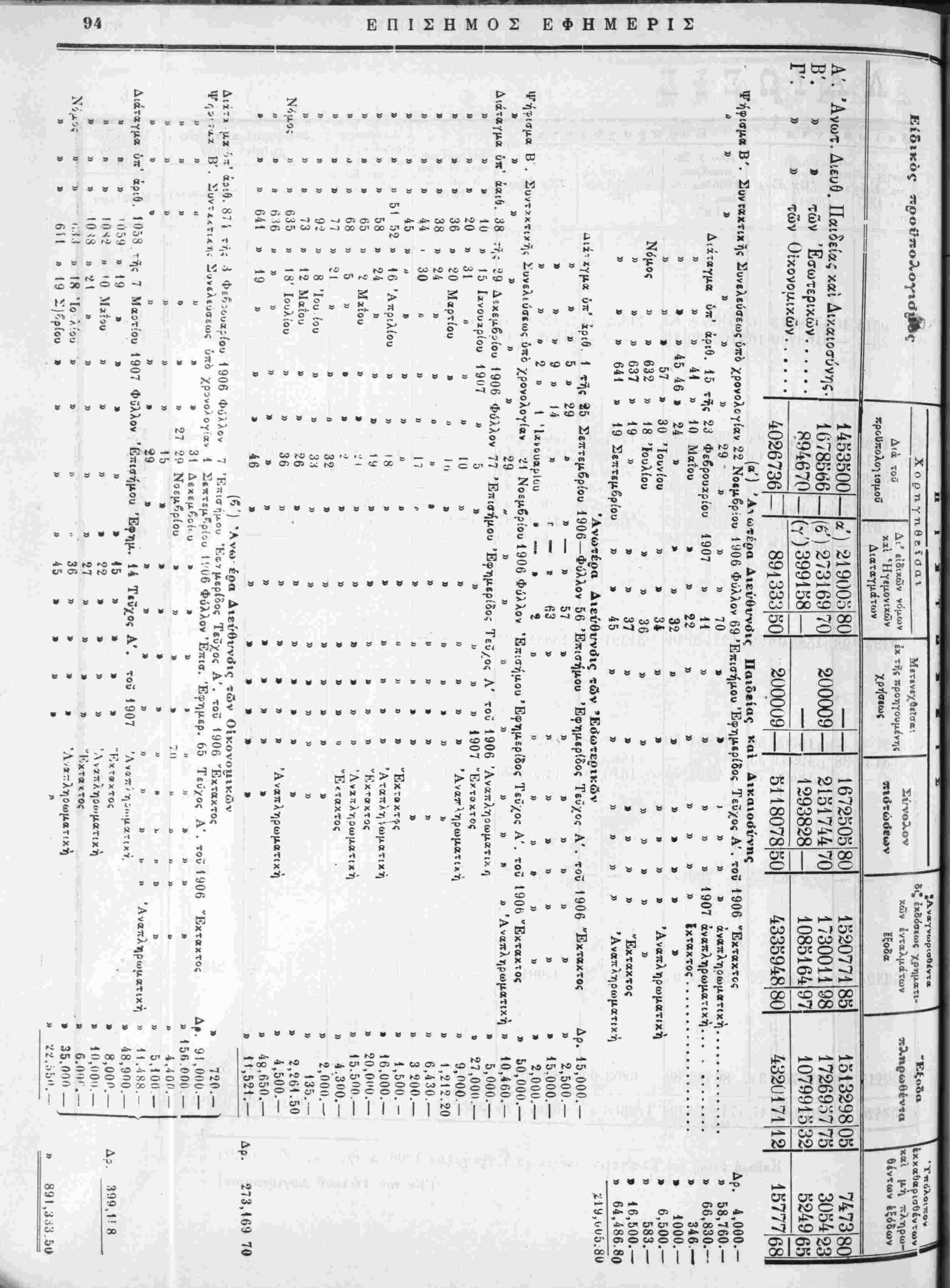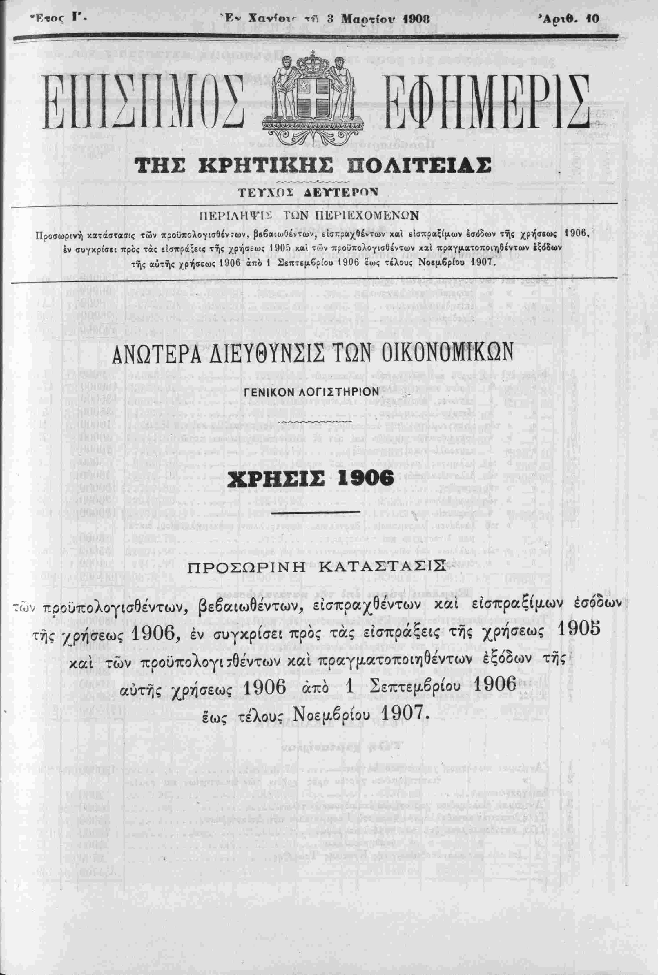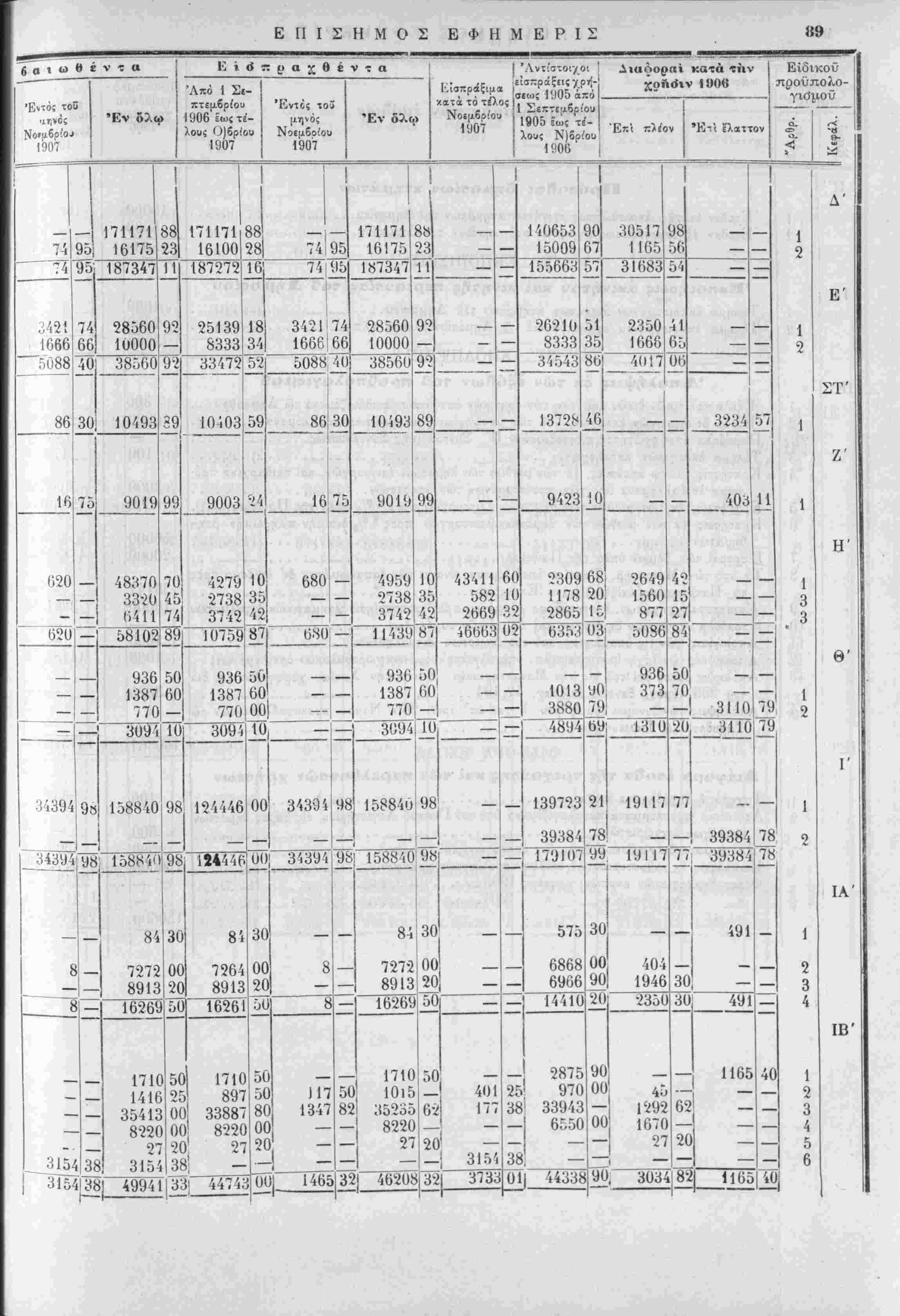 τής αυτής χρήσεως 1906 άπό 1 Σεπτεμβρίου 1906 εως τέλους Νοβμβρίου 1907.