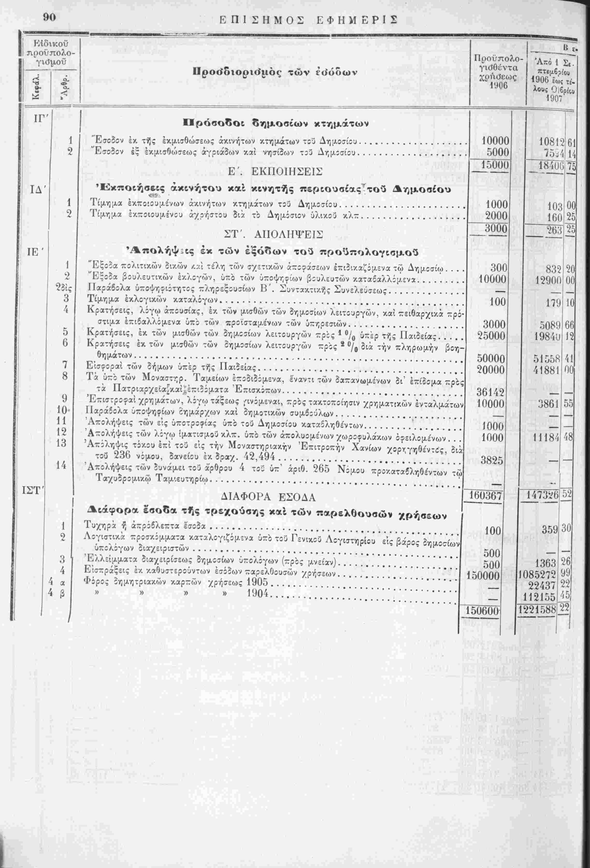 και των προϋπολογι-θεντο^ν και πραγματοποιηθέντων έξόδων τής