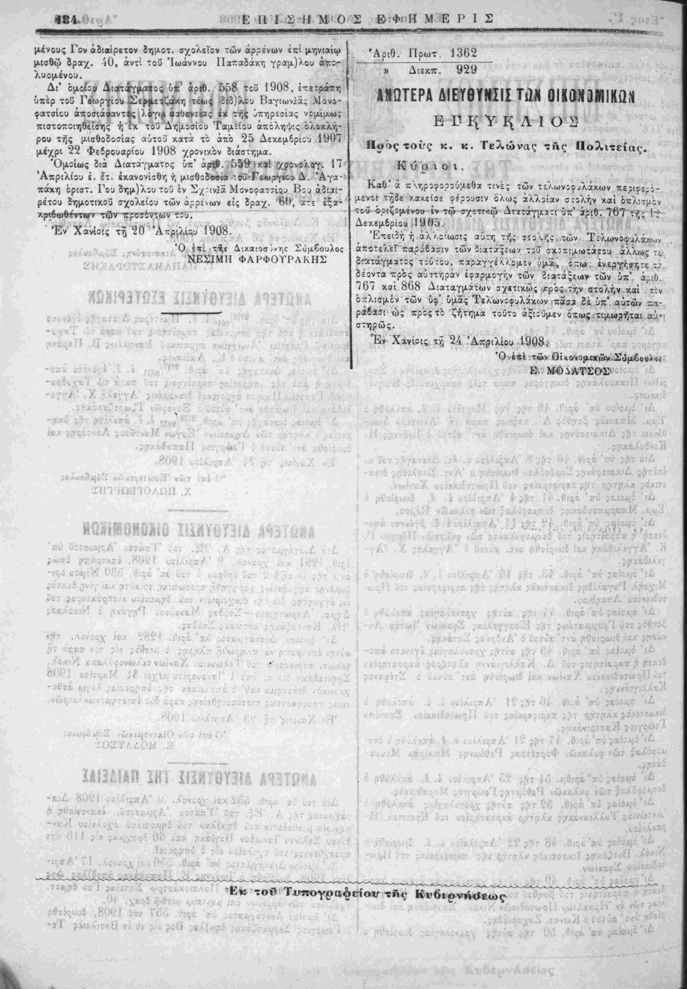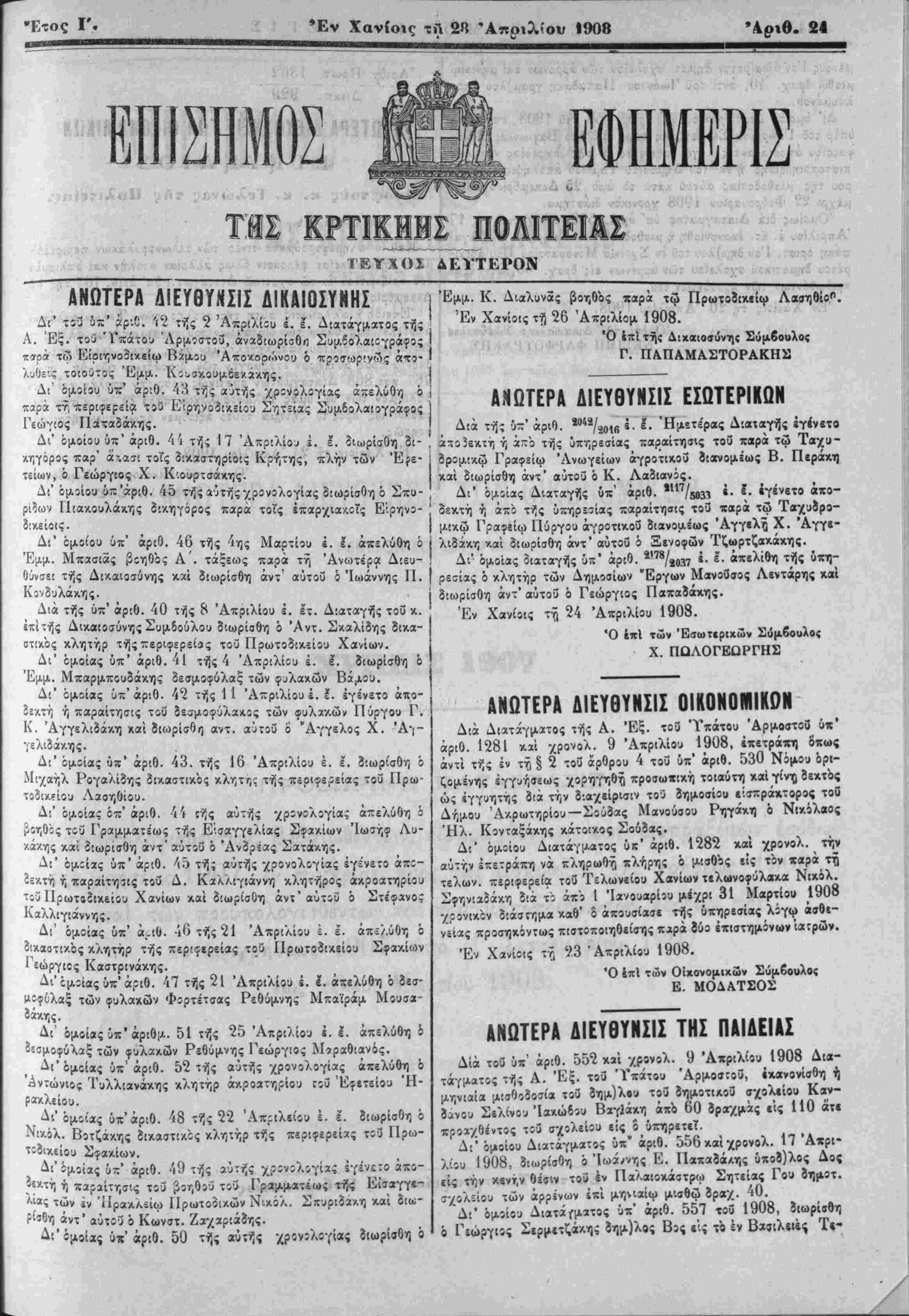 Έν Χανίοις τ.^ 24 Απριλίου 1908.