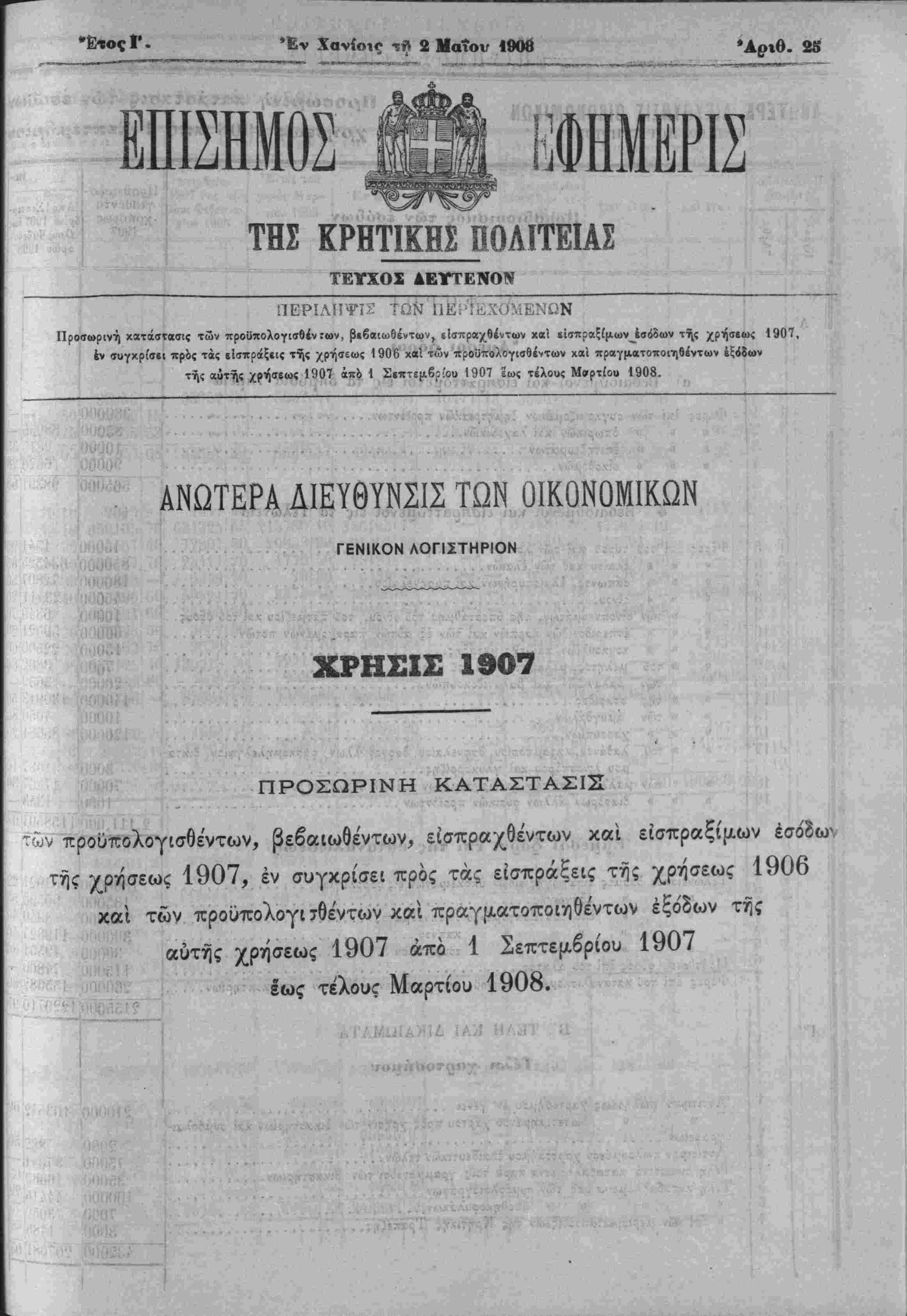 "^ αυτής χρήσεως 1907 άπό 1 Σεπτεμβρίου 1907